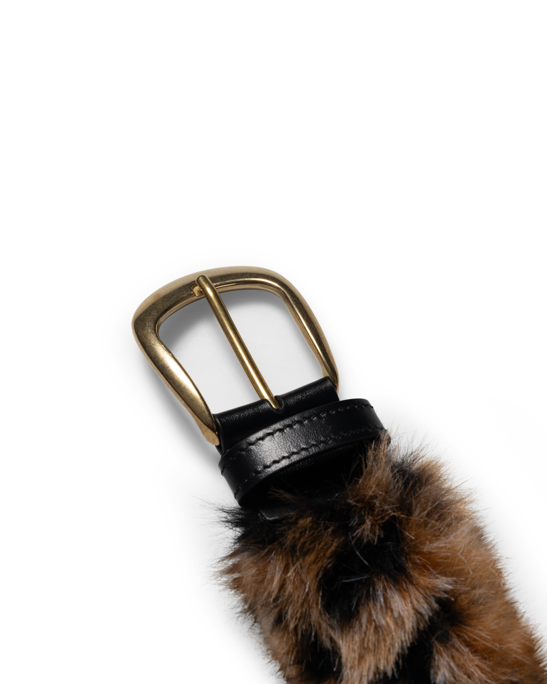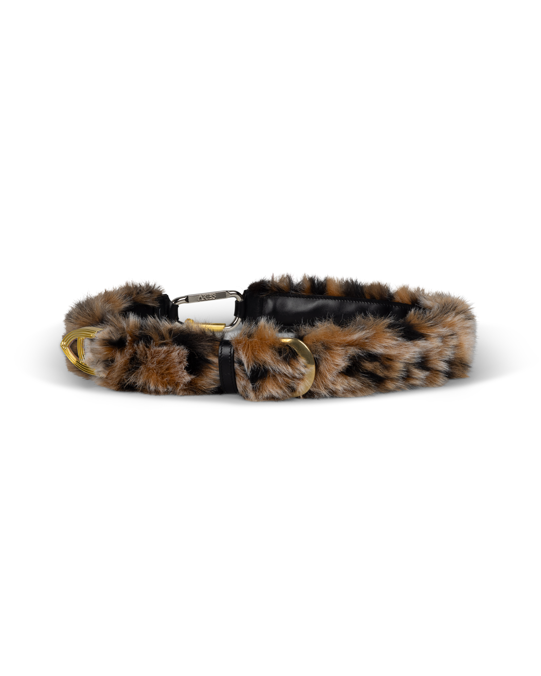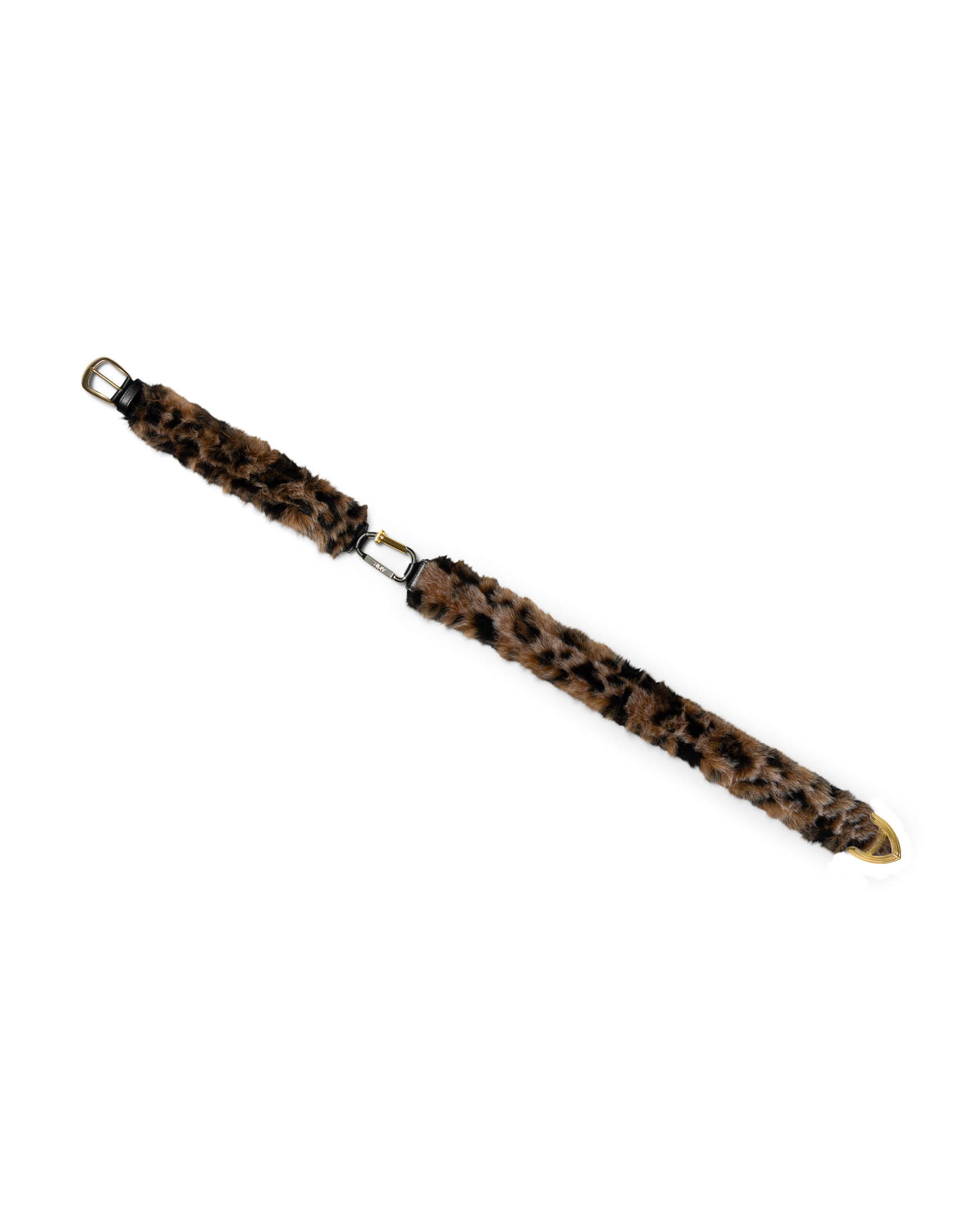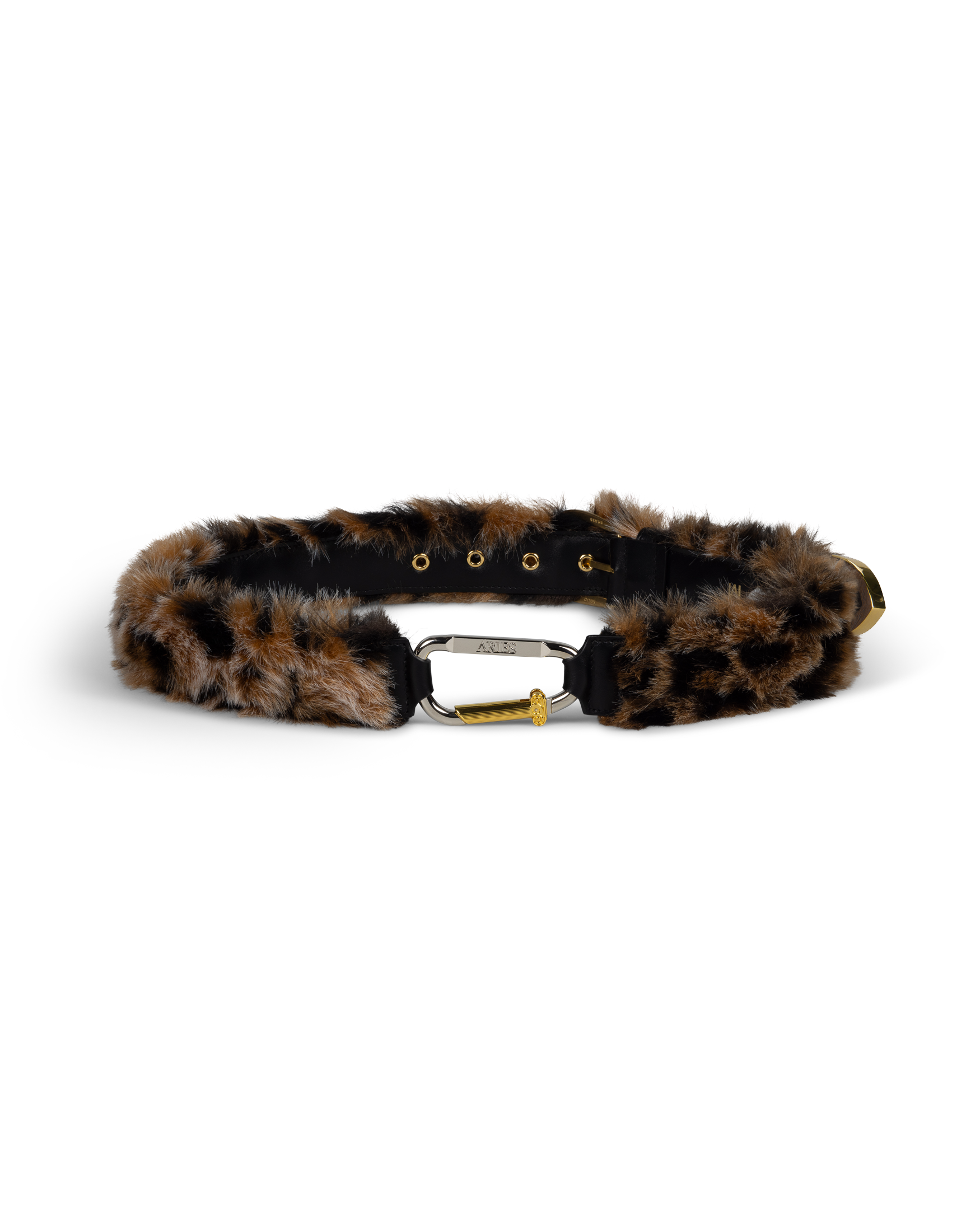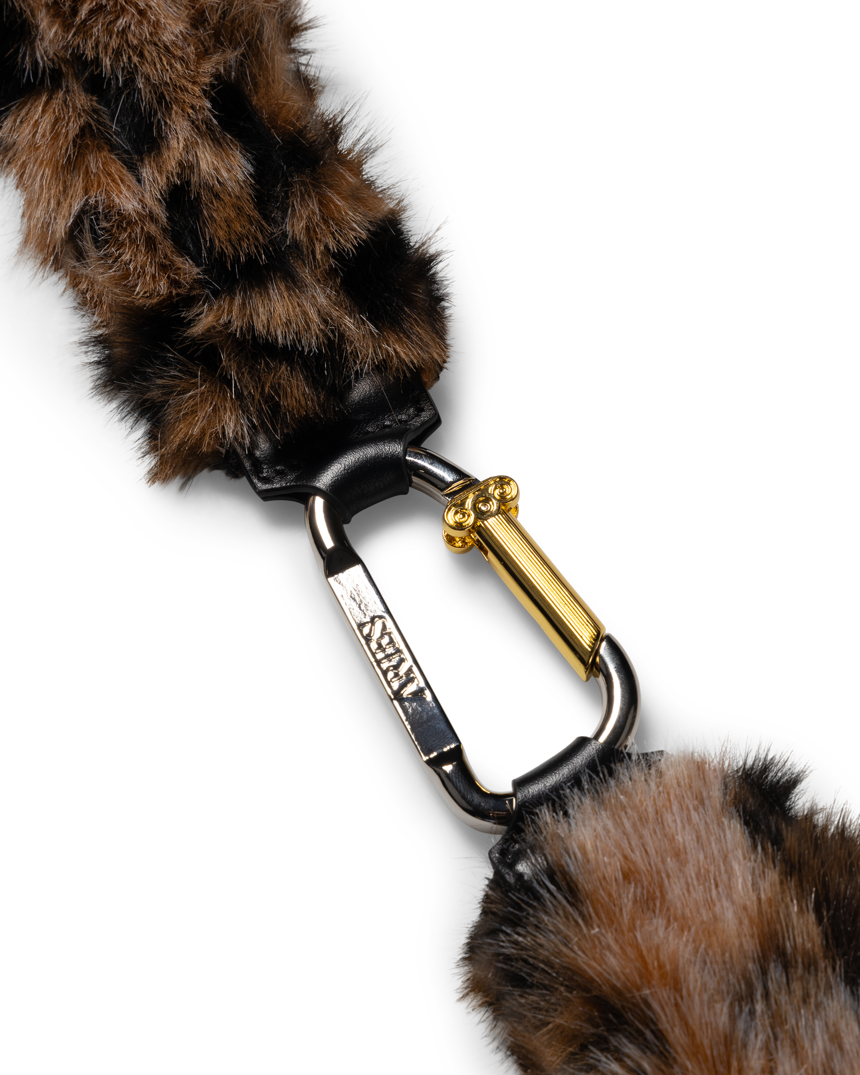 Faux leopard finish. Features the Aries metal column belt loop, Aries carabiner fastening, and aluminium hardware.