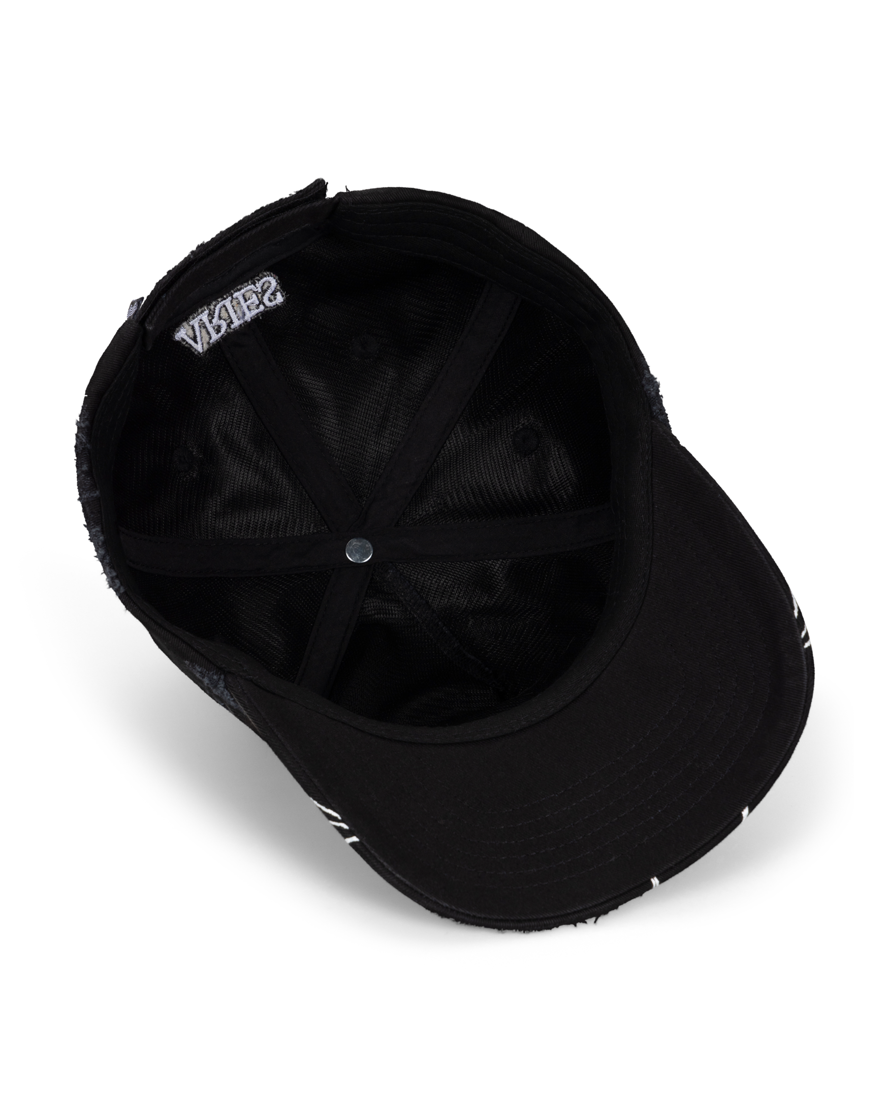 Sun bleached cotton cap with 'Overlord' graphic screen print and stud Temple patch.