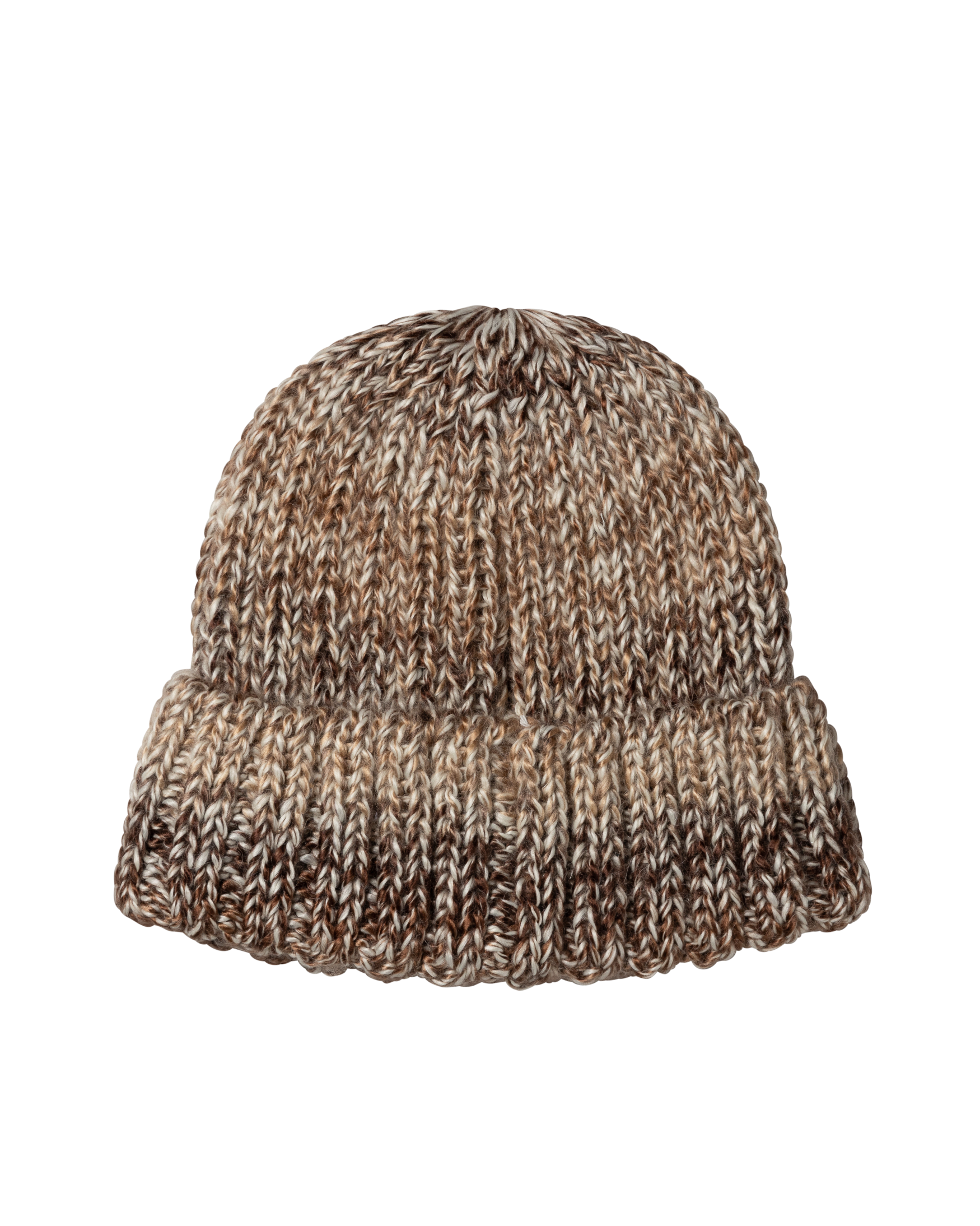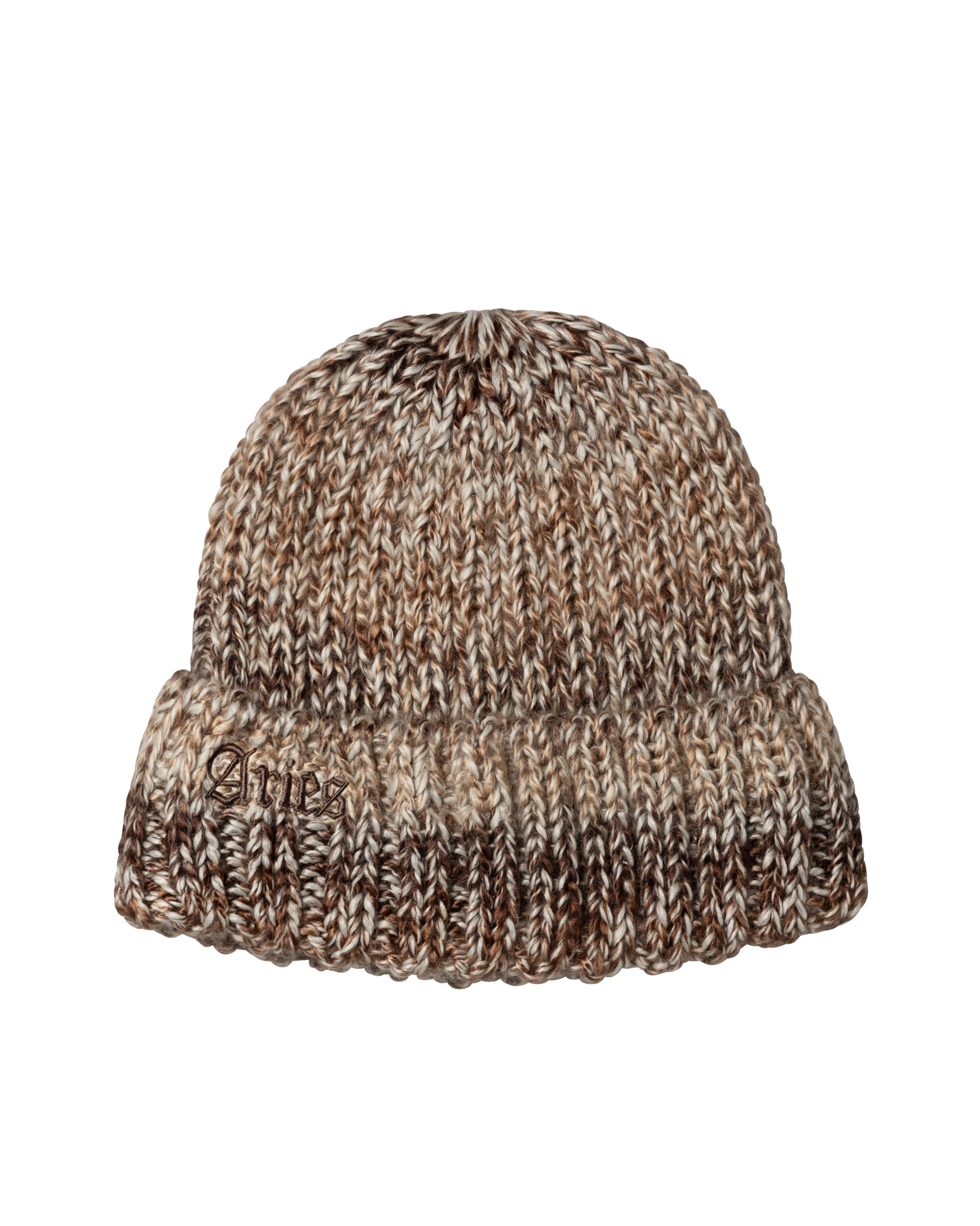 Space dye rib knit, fold back beanie with embroidered Gothic Aries logo.
