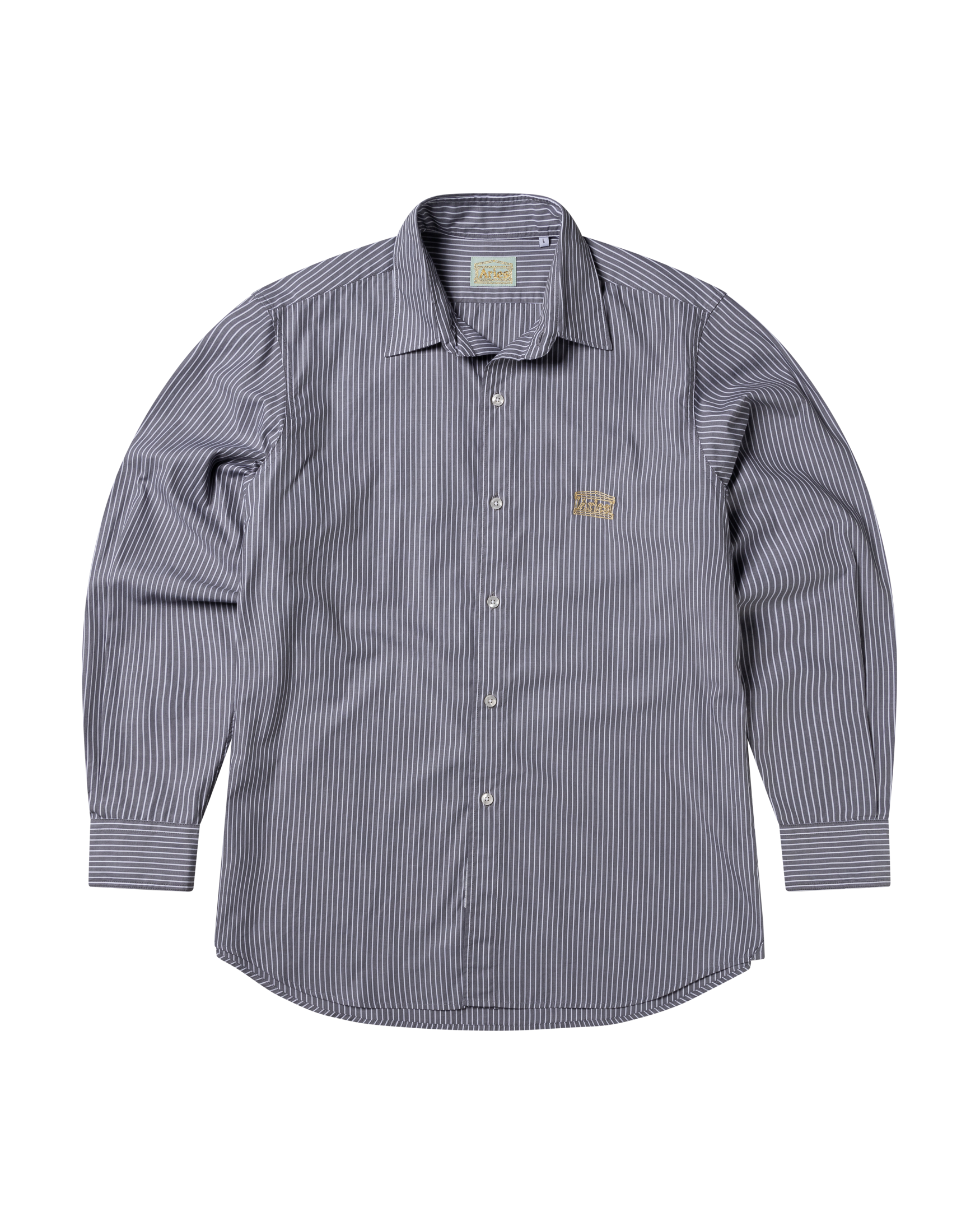 Classic stripe cotton shirt with an embroidered Aries temple logo on left chest. 100% cotton.