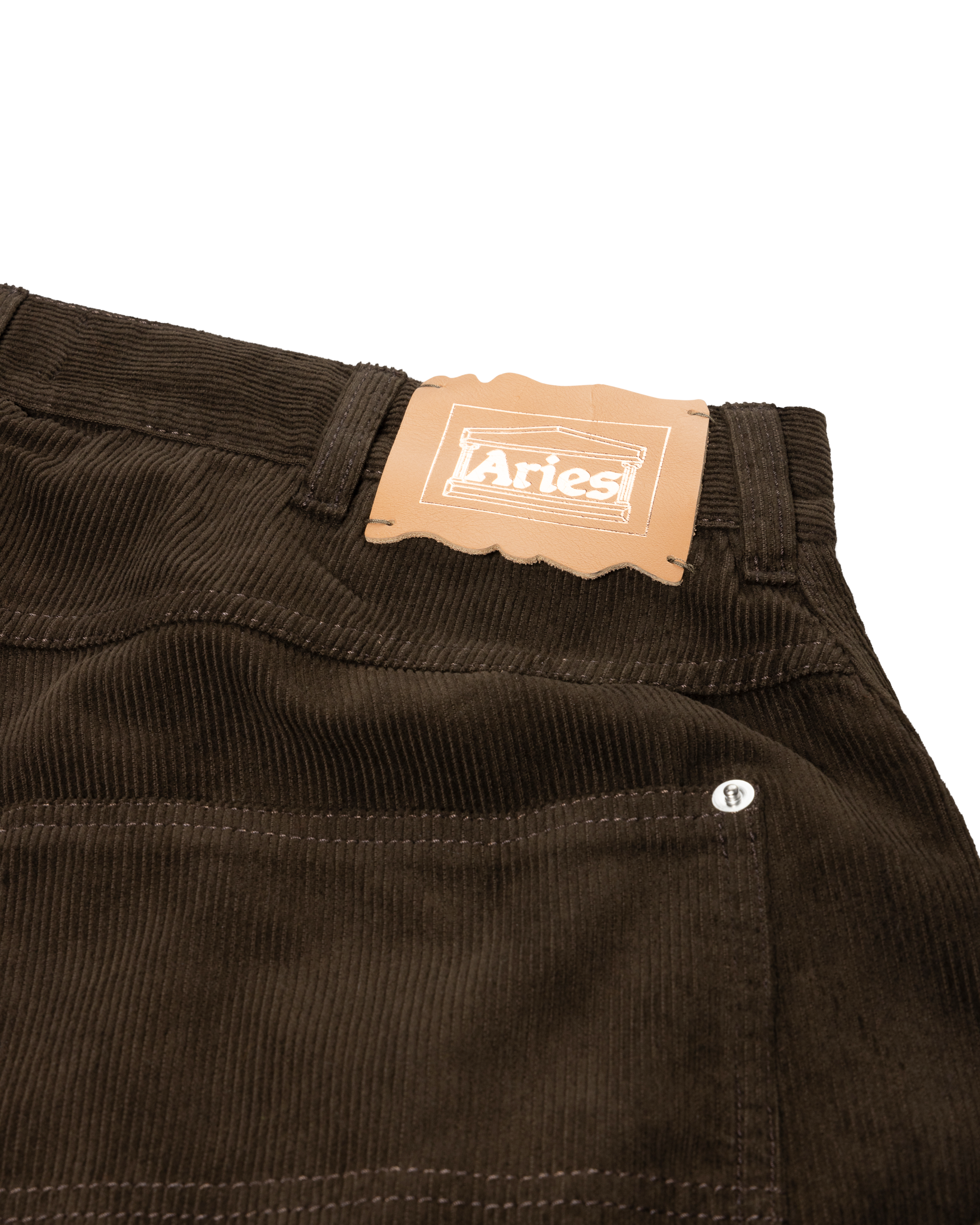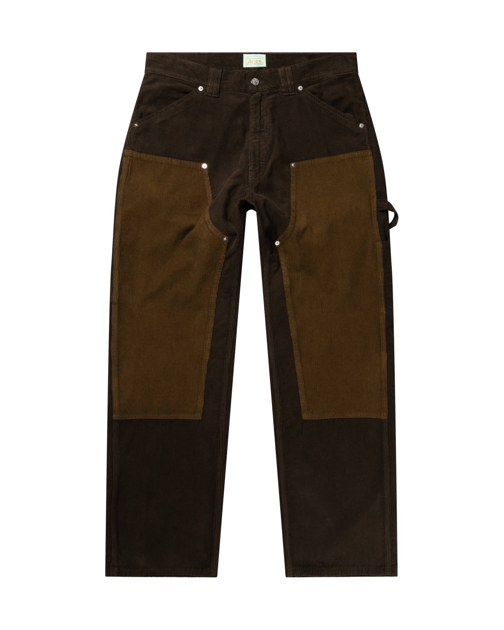 Unisex carpenter corduroy trousers with western details and contrast panels. Made from 100% cotton corduroy, colour blocked and overdyed, with rivet detailing.