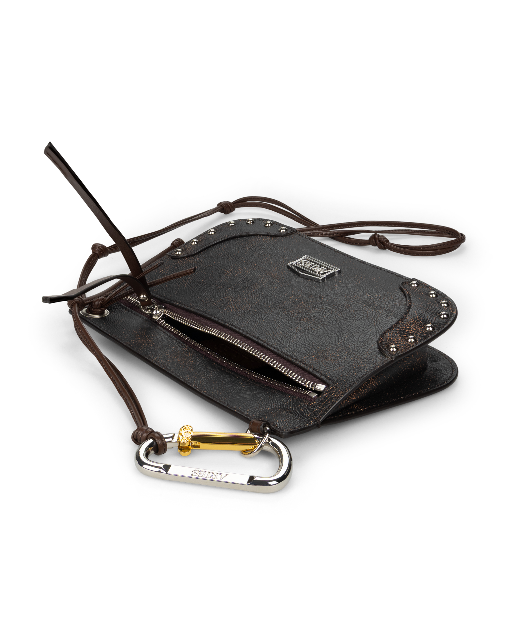 Vintage Leather Bobby Bag with Aries Column Carabiner and Aries Metal Temple logo.