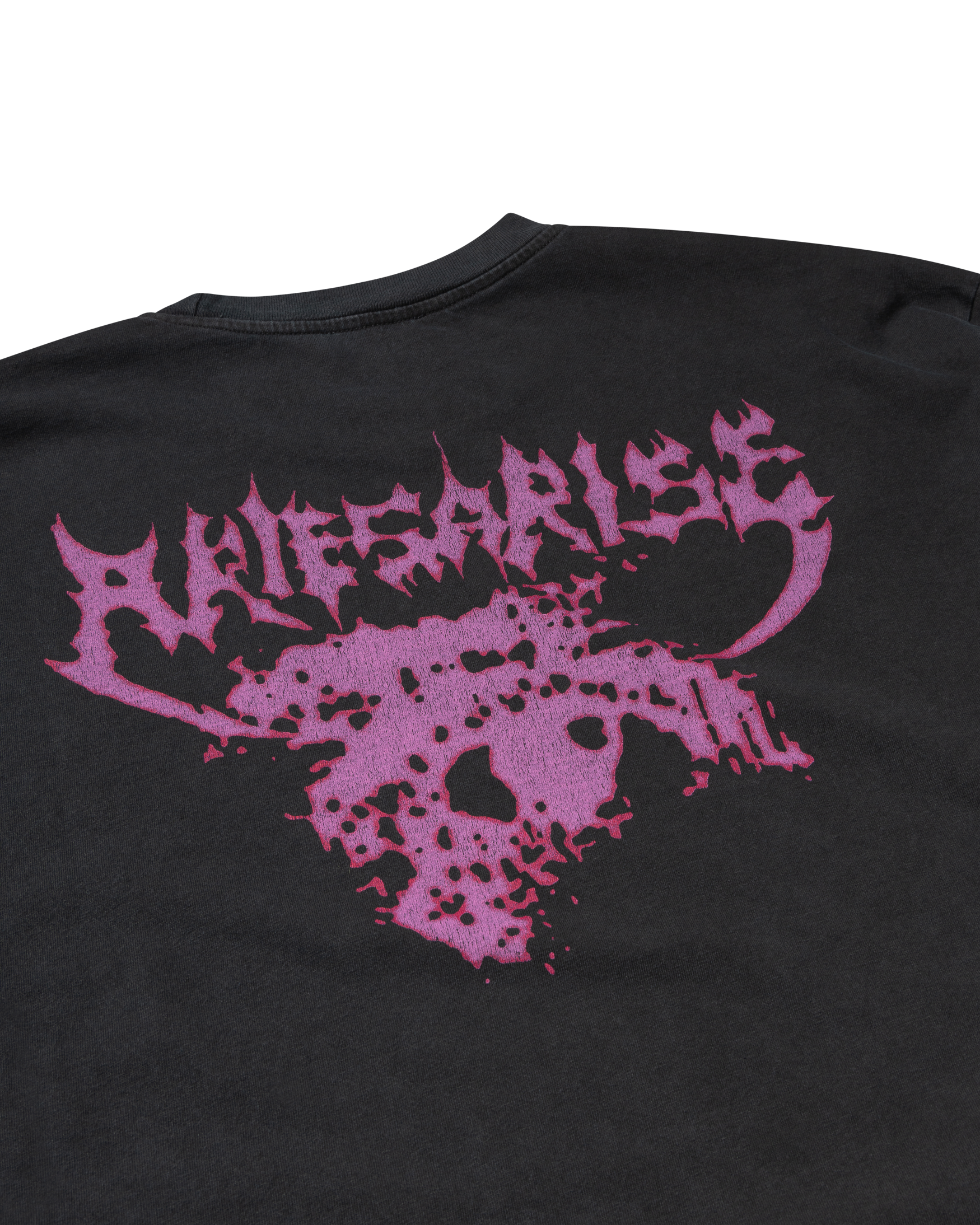 Unisex long sleeve heavy-weight cotton t-shirt with Ancient Temple screen print on the chest. Finished with a stone wash treatment for a washed out, faded effect.