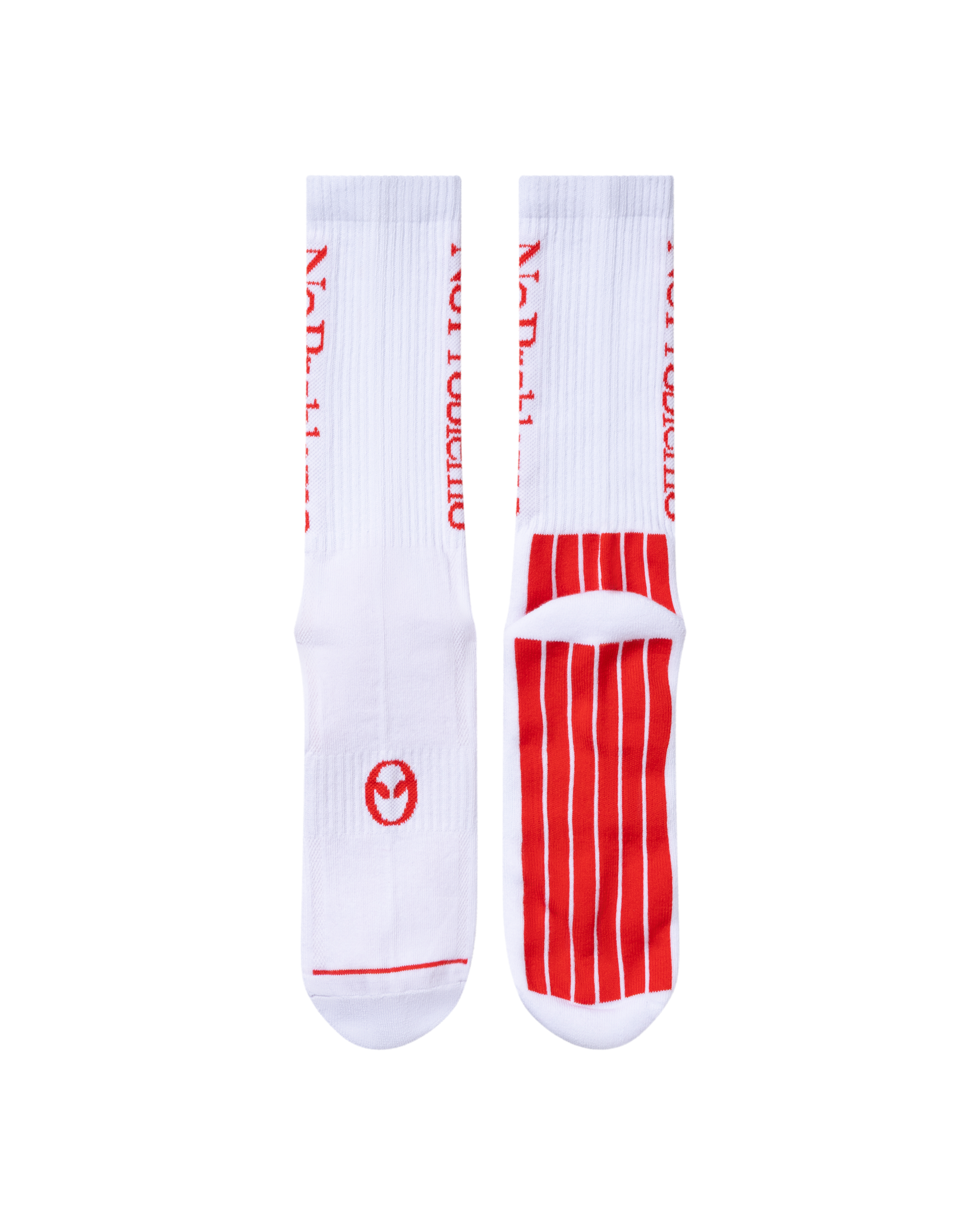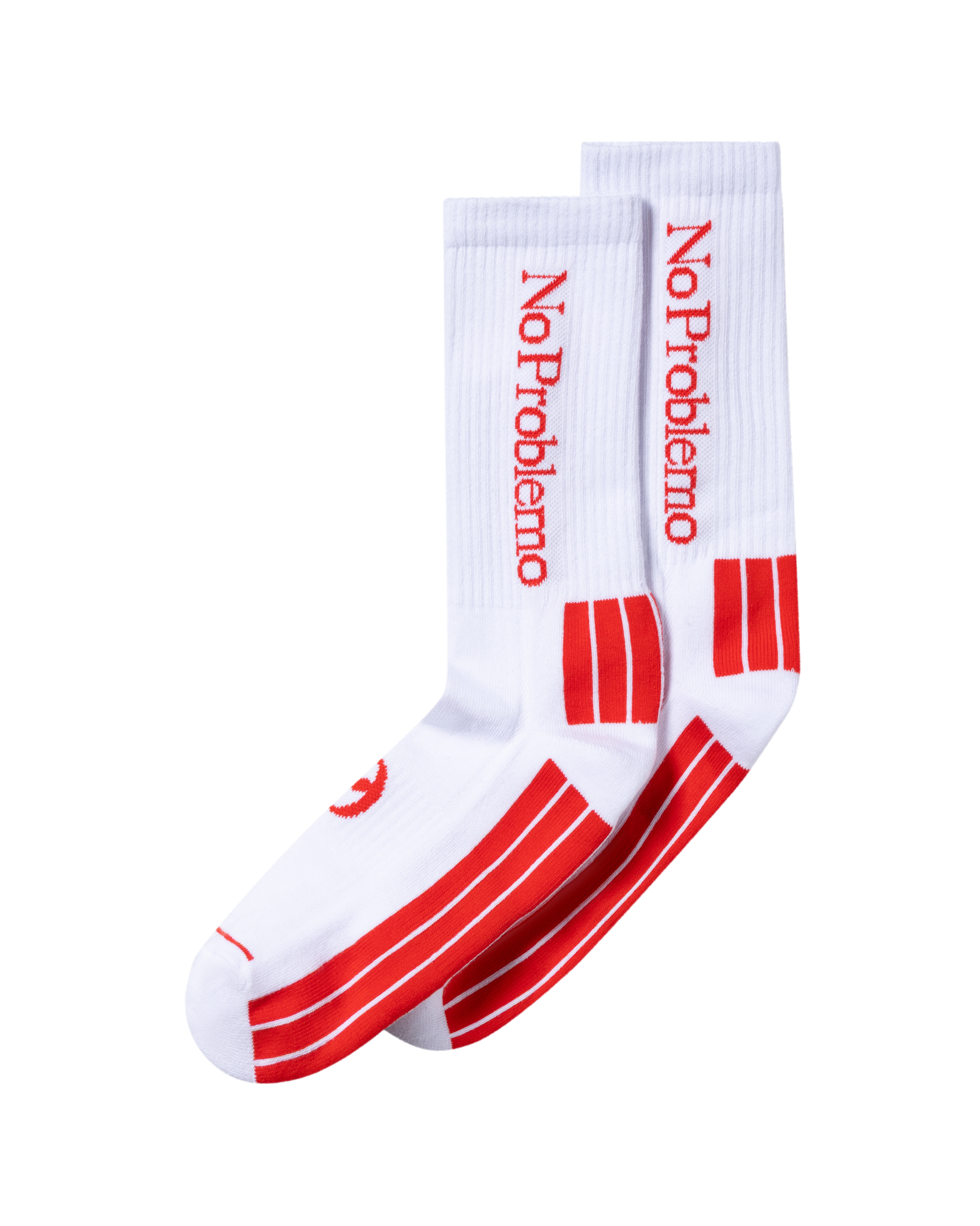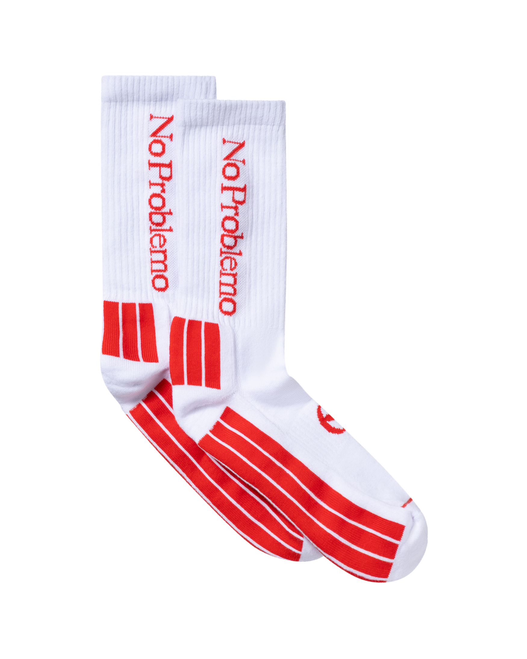 Jacquard socks in a sports-blend mix yarn featuring No problemo graphic.