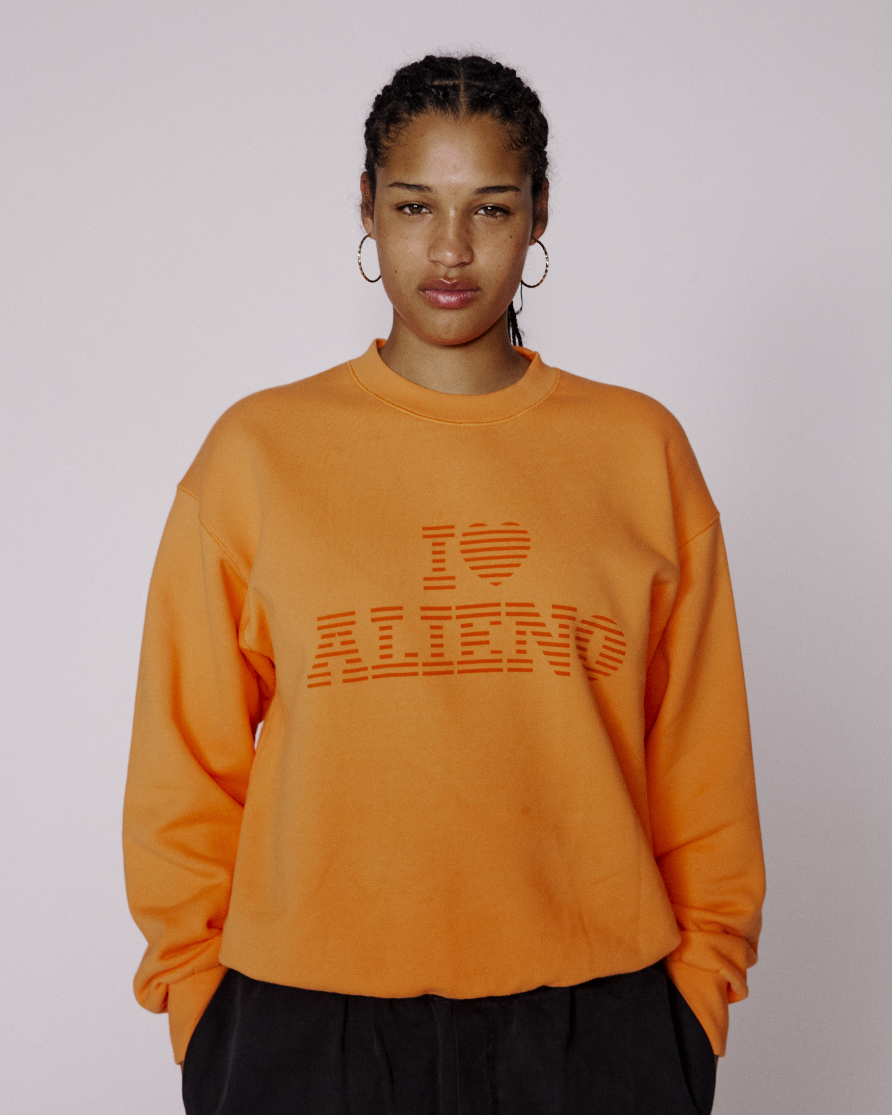 featuring classic 'i heart alieno' graphic screen-printed on the front.