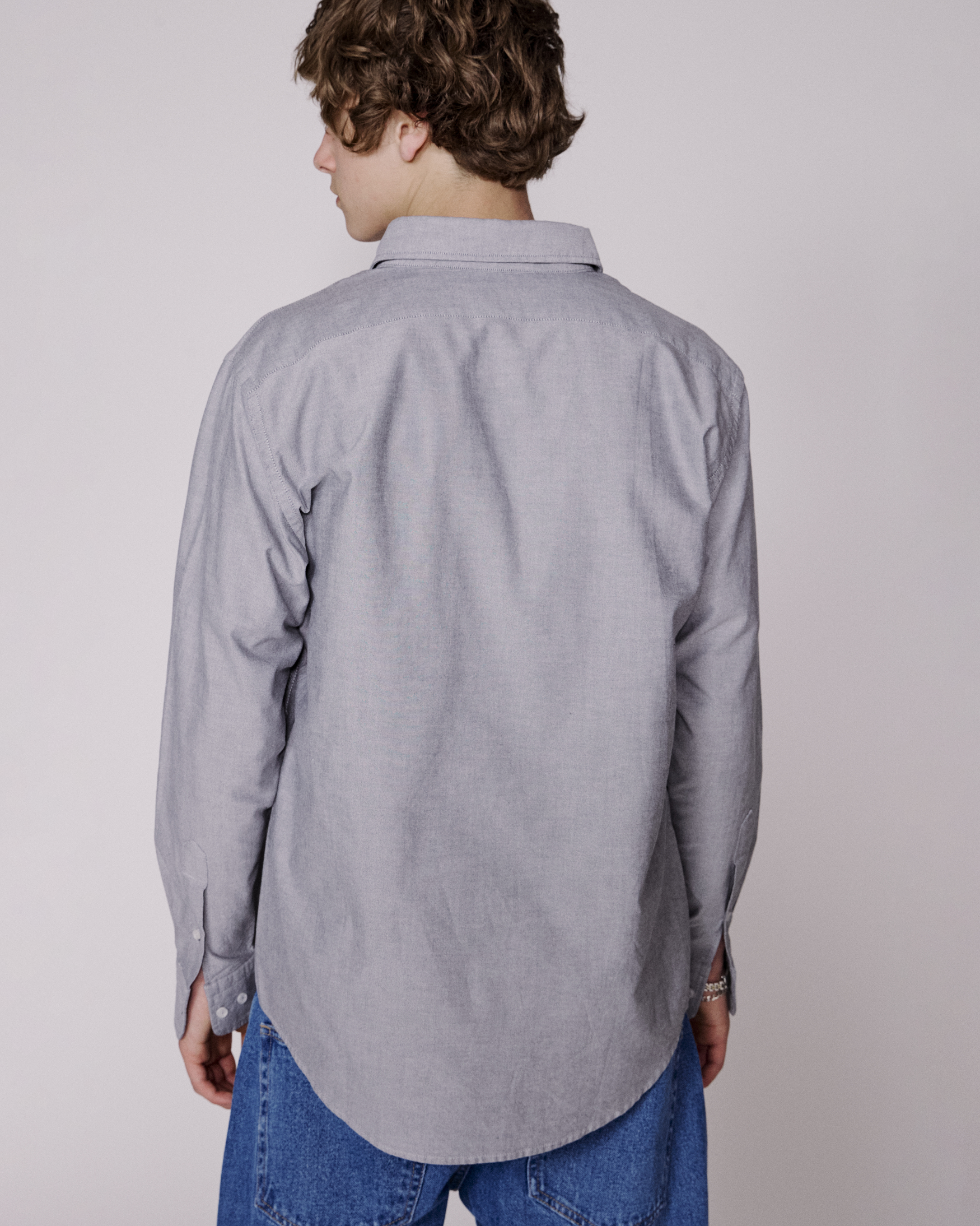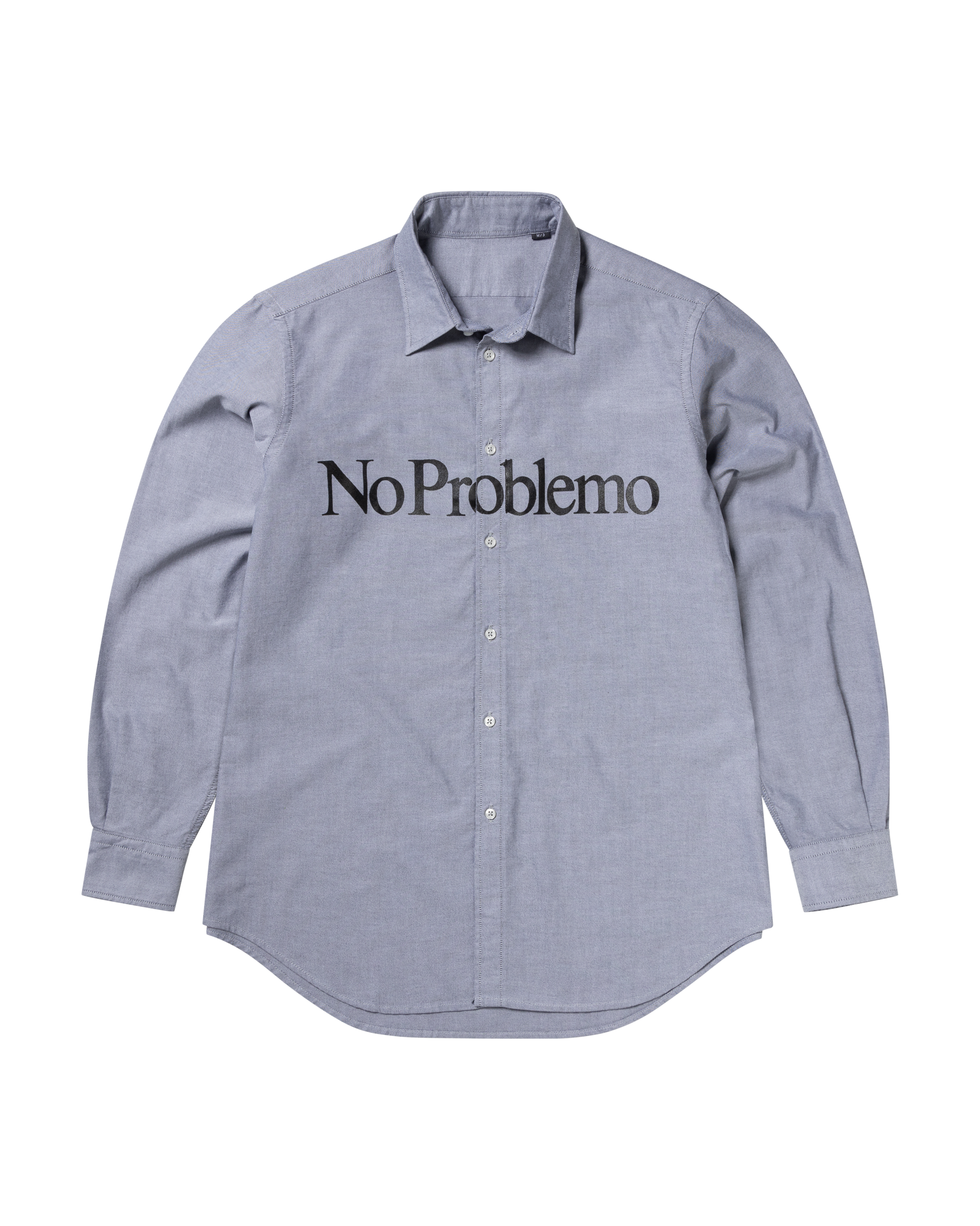 classic long-sleeved oxford shirt with double chest pocket featuring a no problemo logo embroidery on the pocket.