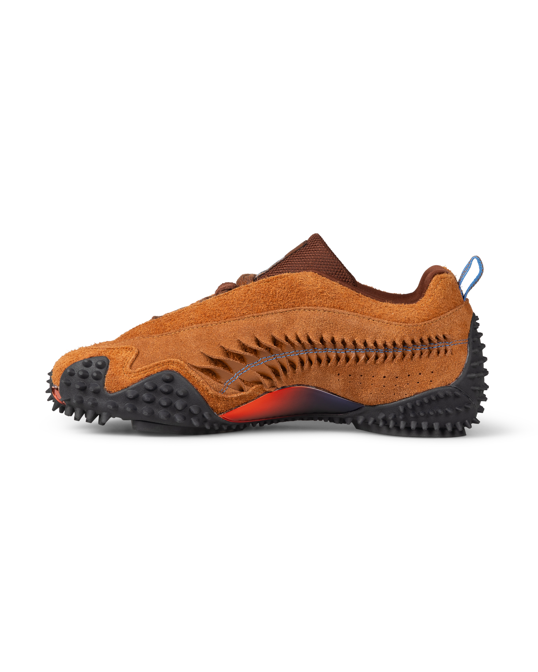 Crafted in suede with a leather-backed twisted Formstrip and silver foil detailing. The mesh lining and lycra tongue provide a flexible, lightweight feel, while the rubber outsole stays true to the iconic Mostro design.