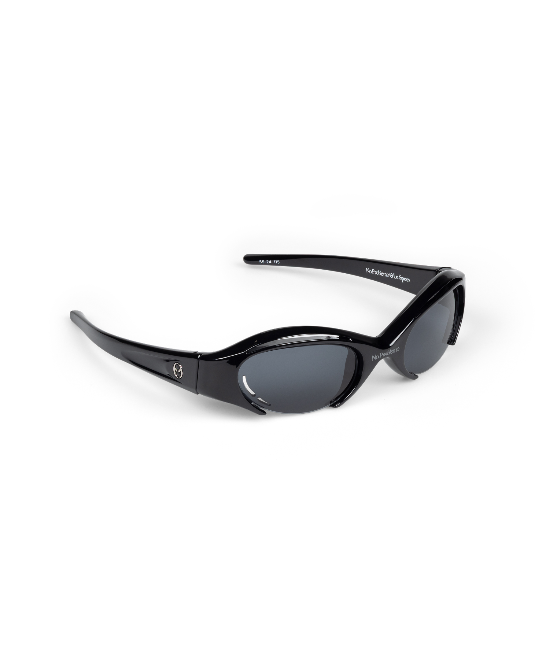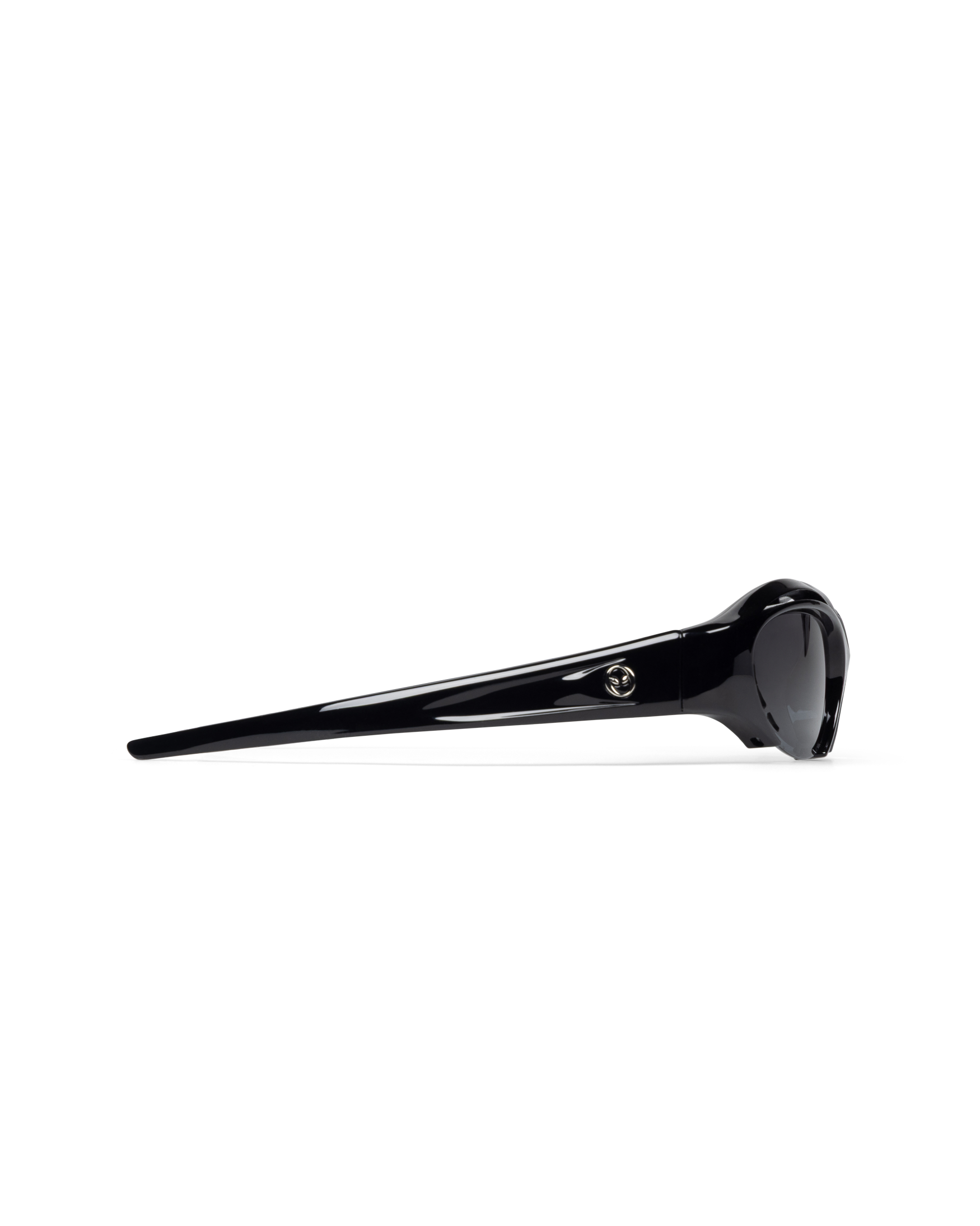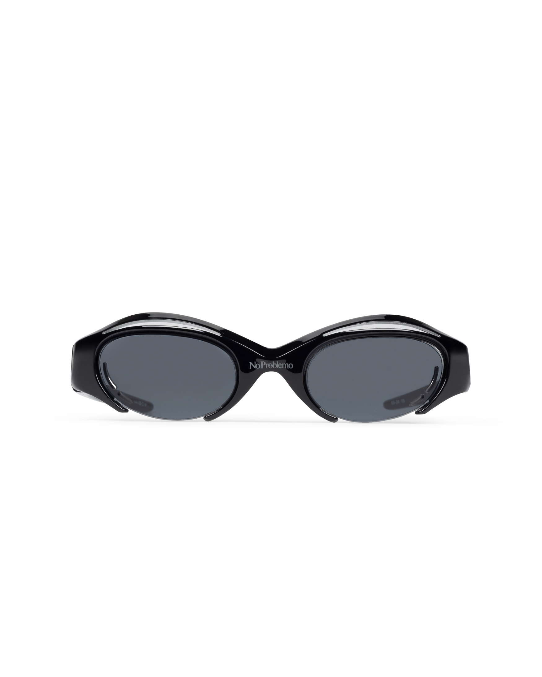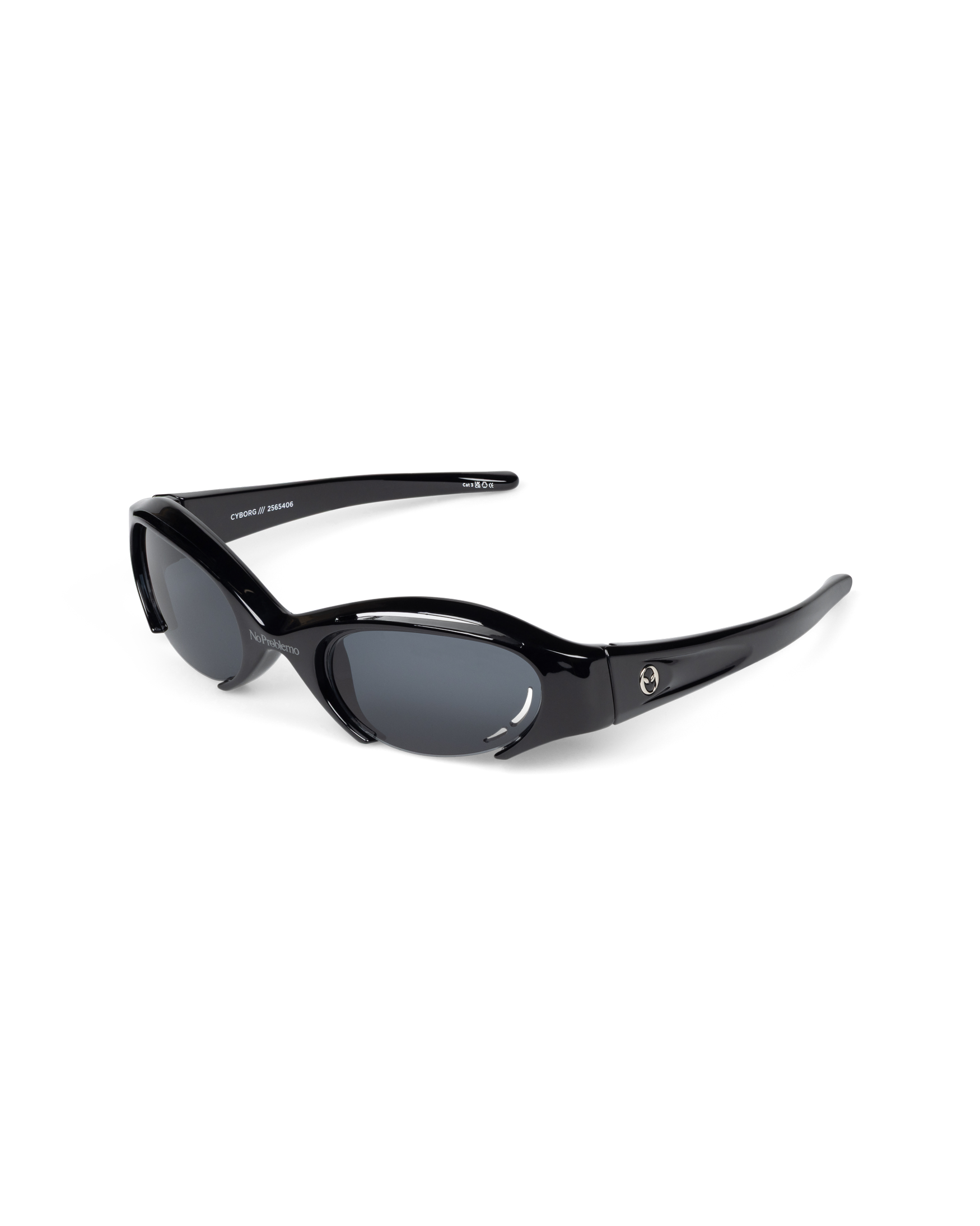 designed with a bold and dynamic silhouette, the cyborg mid-size oval sunglasses are a contemporary take on street style. featuring intricately crafted moulded tapered temples and a distinctive cut-out frame design, this style showcases a signature no problemo alien face metal decal on the temple and is finished with white logo print to centre font of frame.