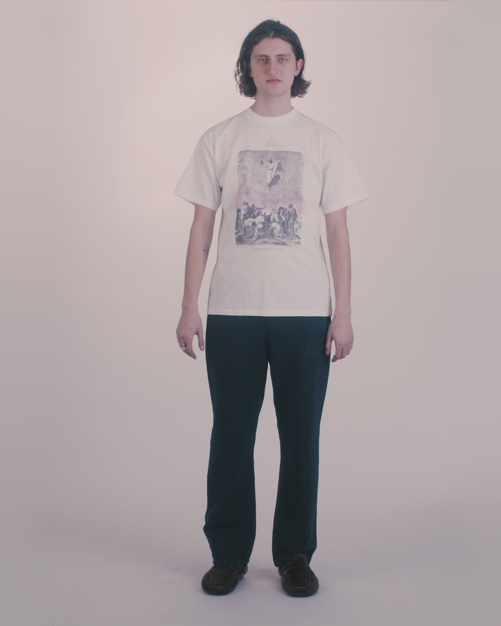 short sleeve t-shirt with seasonal 'Beam Me Up Daddy' graphic on the front, with a stone wash treatment for a washed out, faded effect.
