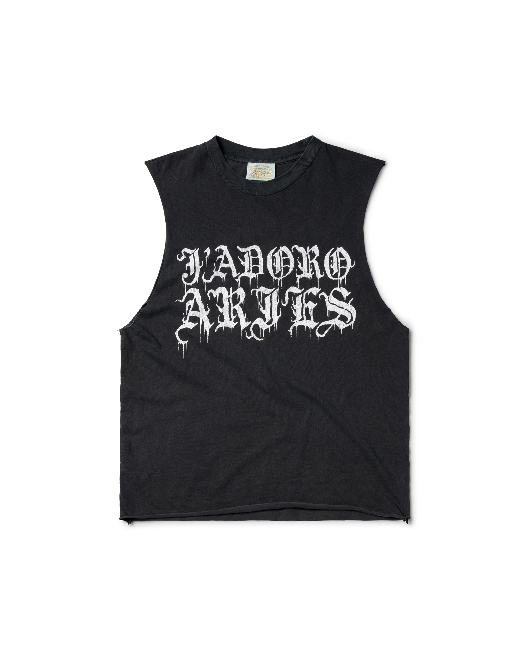 Unisex muscle vest with gothic j'adoro graphic screen-printed on the front with a stone wash treatment for a washed out, faded effect.