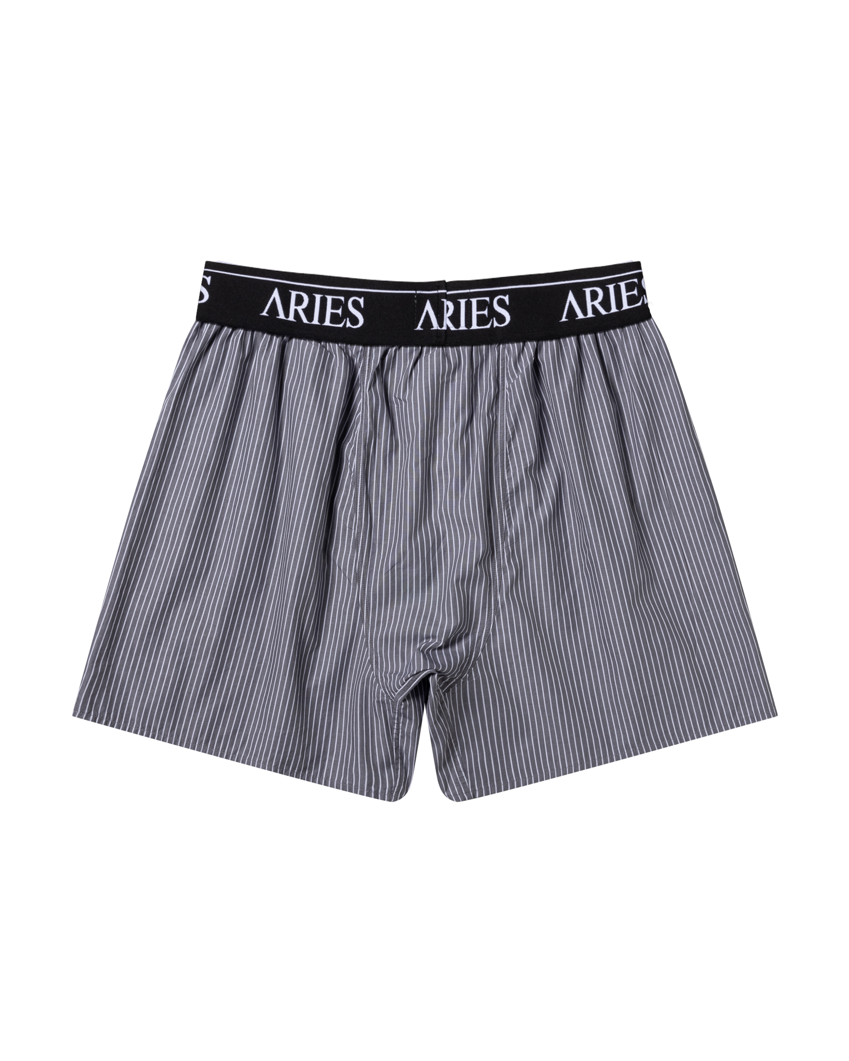 Classic poplin stripe boxer shorts with Aries logo elastic and embroidered Aries Temple. 100% cotton. Made in Portugal