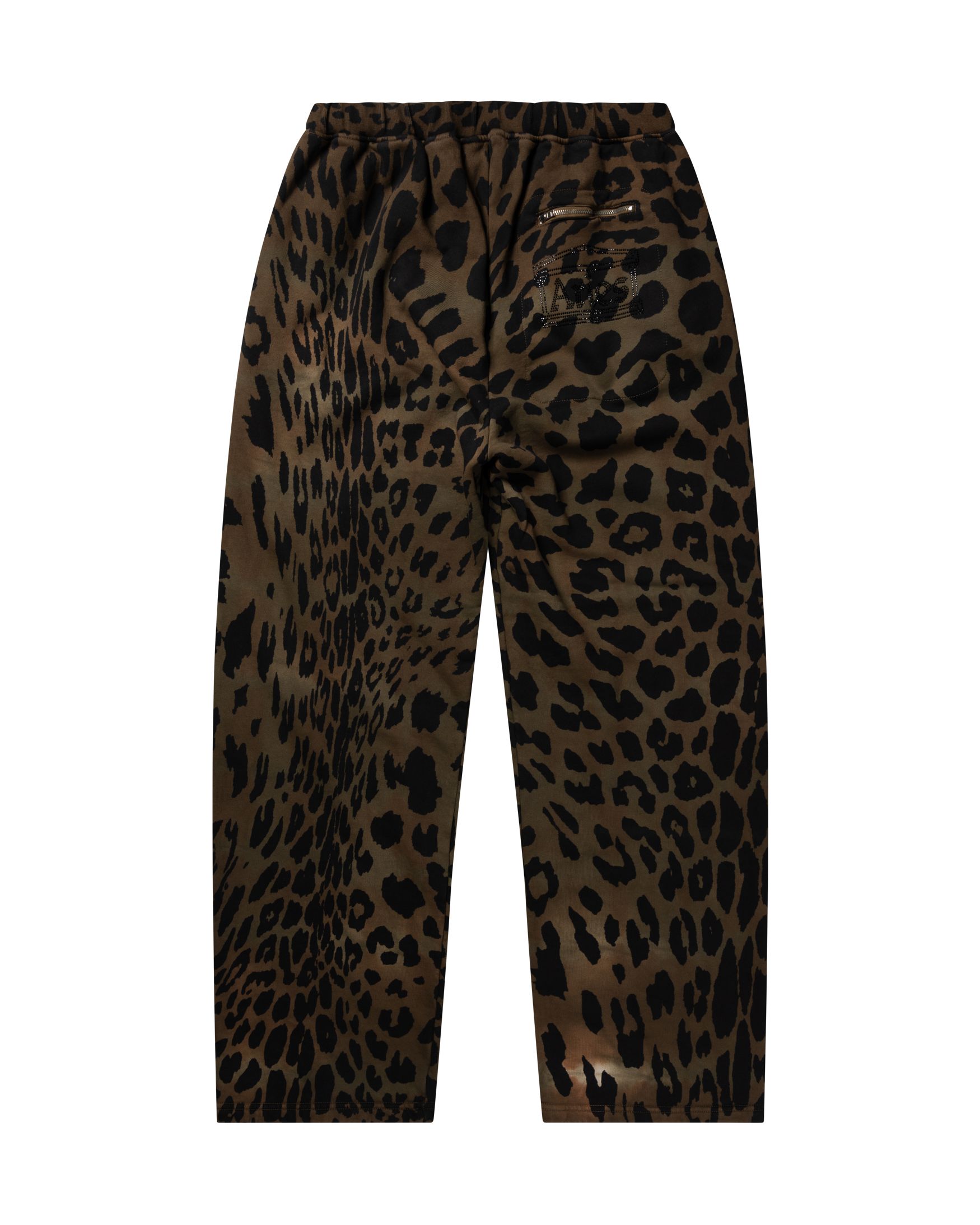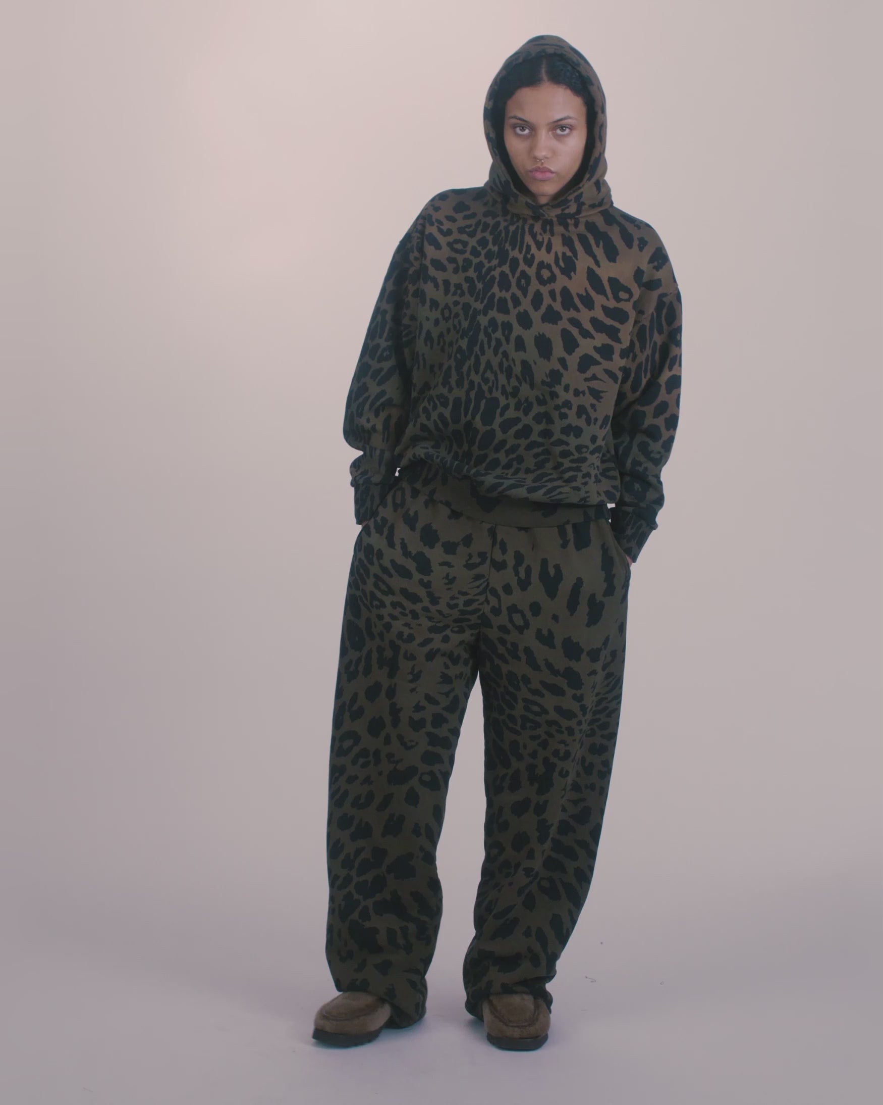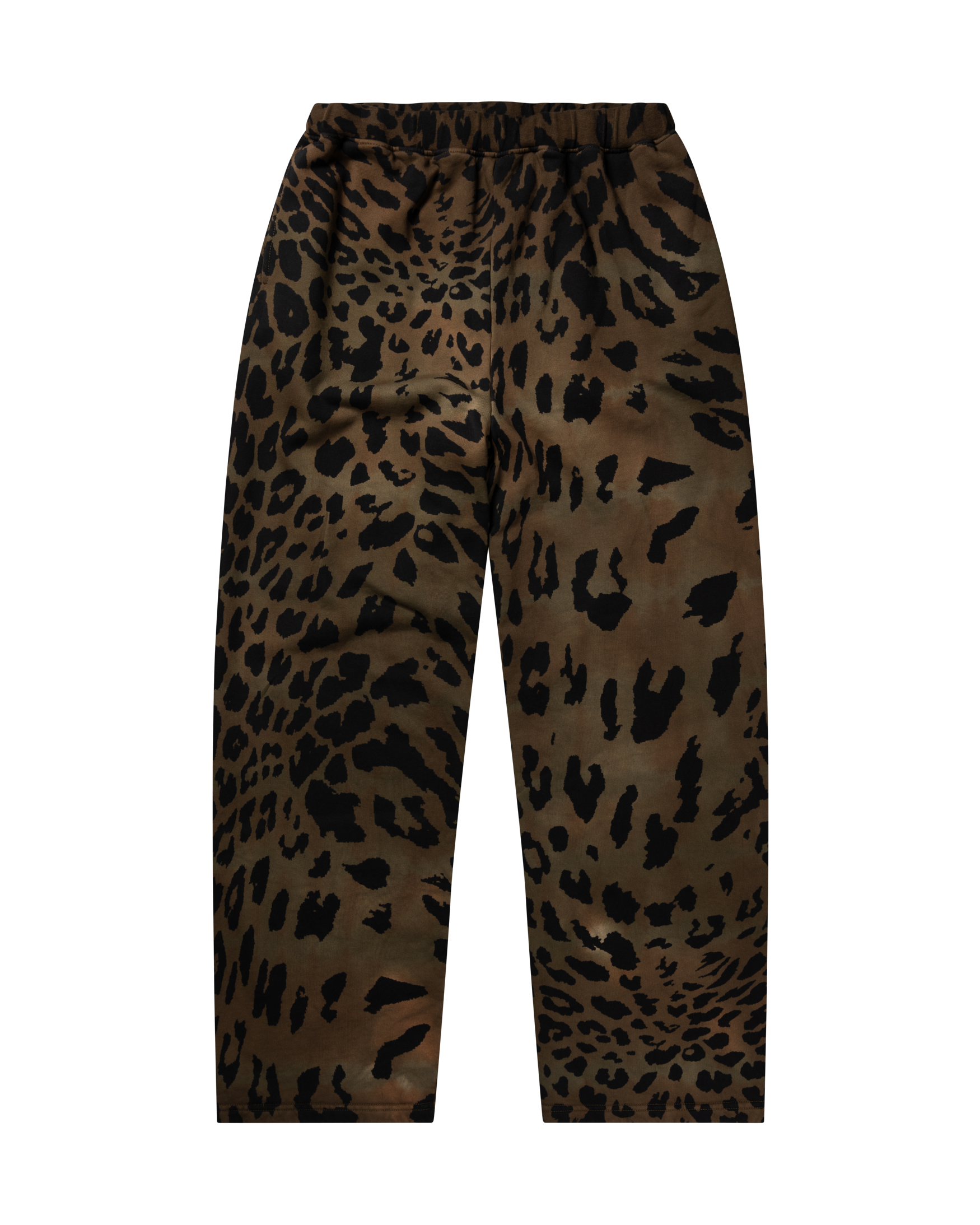 Unisex straight-leg sweatpant, made in brushed-back cotton jersey fleece, with back zip pocket. Allover printed in seasonal leopard graphic and finished with a tie-dye effect and diamante Temple on the back pocket. 100% cotton.