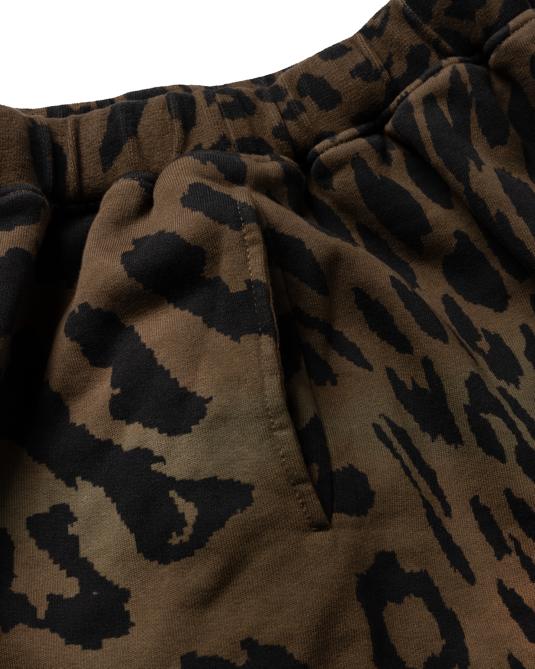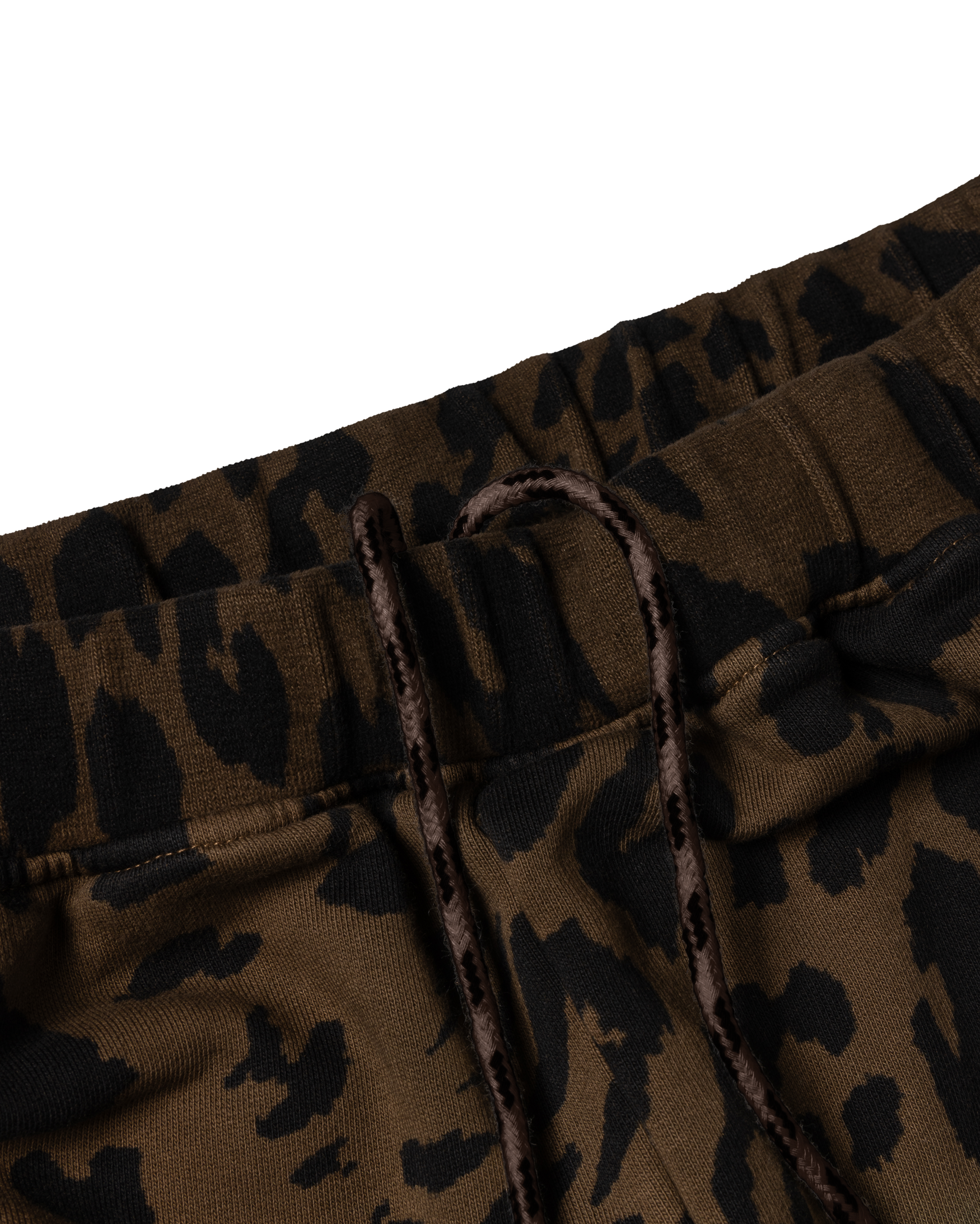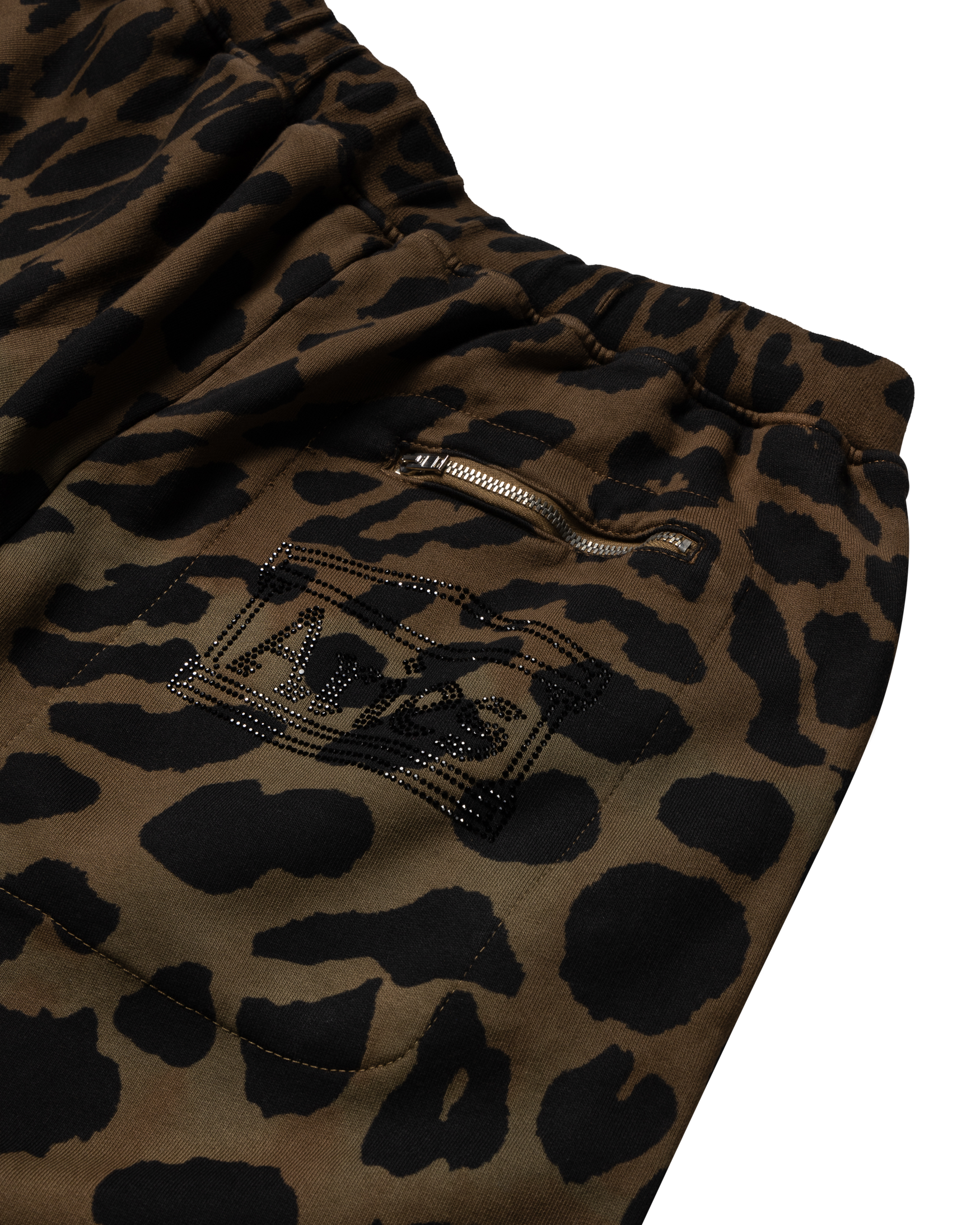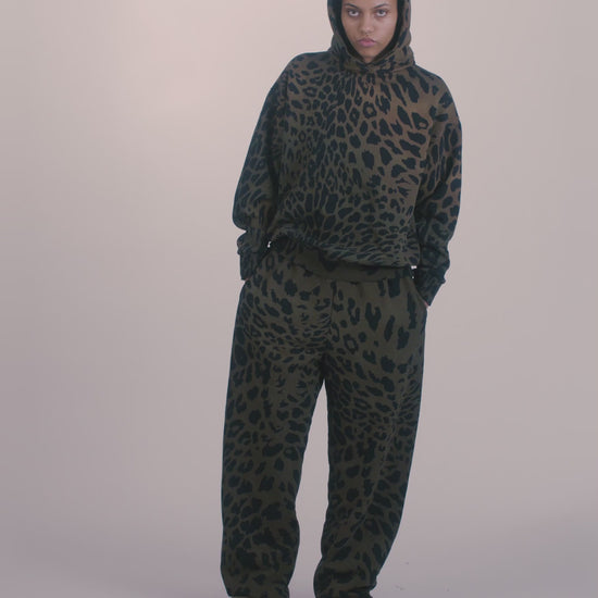 Unisex straight-leg sweatpant, made in brushed-back cotton jersey fleece, with back zip pocket. Allover printed in seasonal leopard graphic and finished with a tie-dye effect and diamante Temple on the back pocket. 100% cotton.