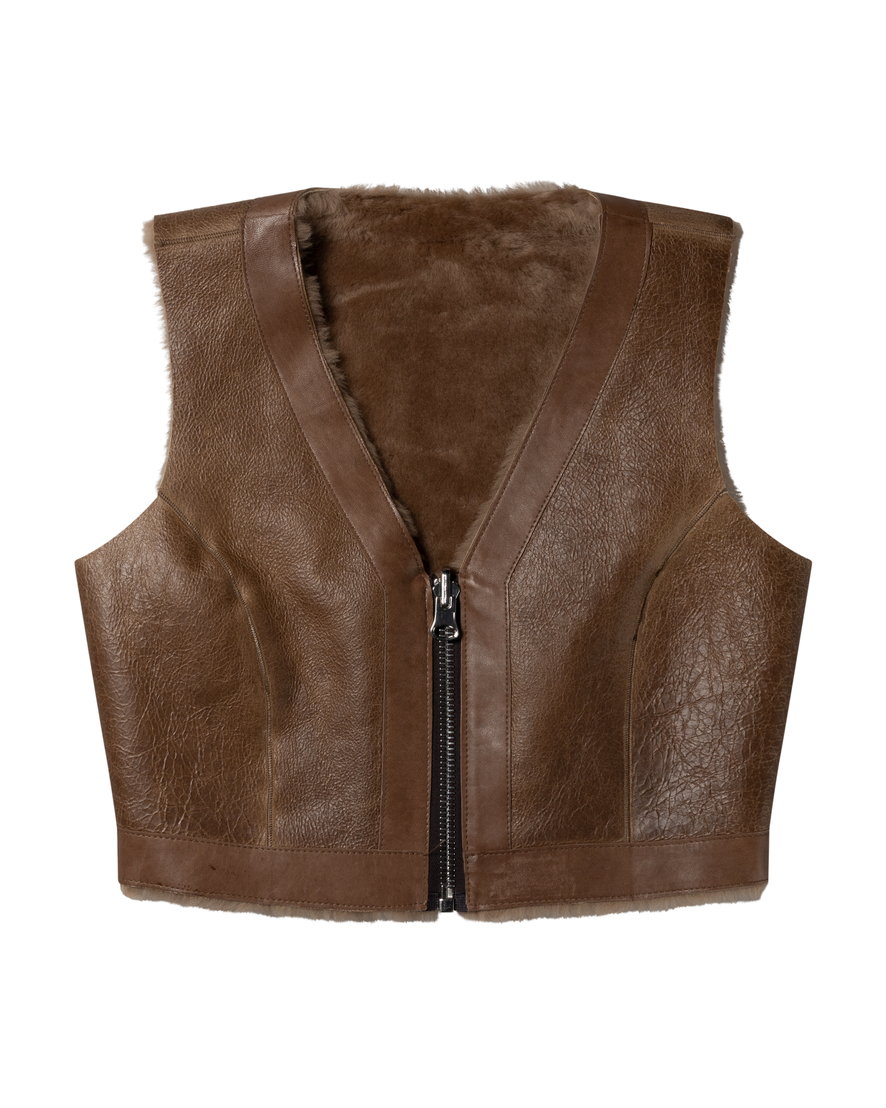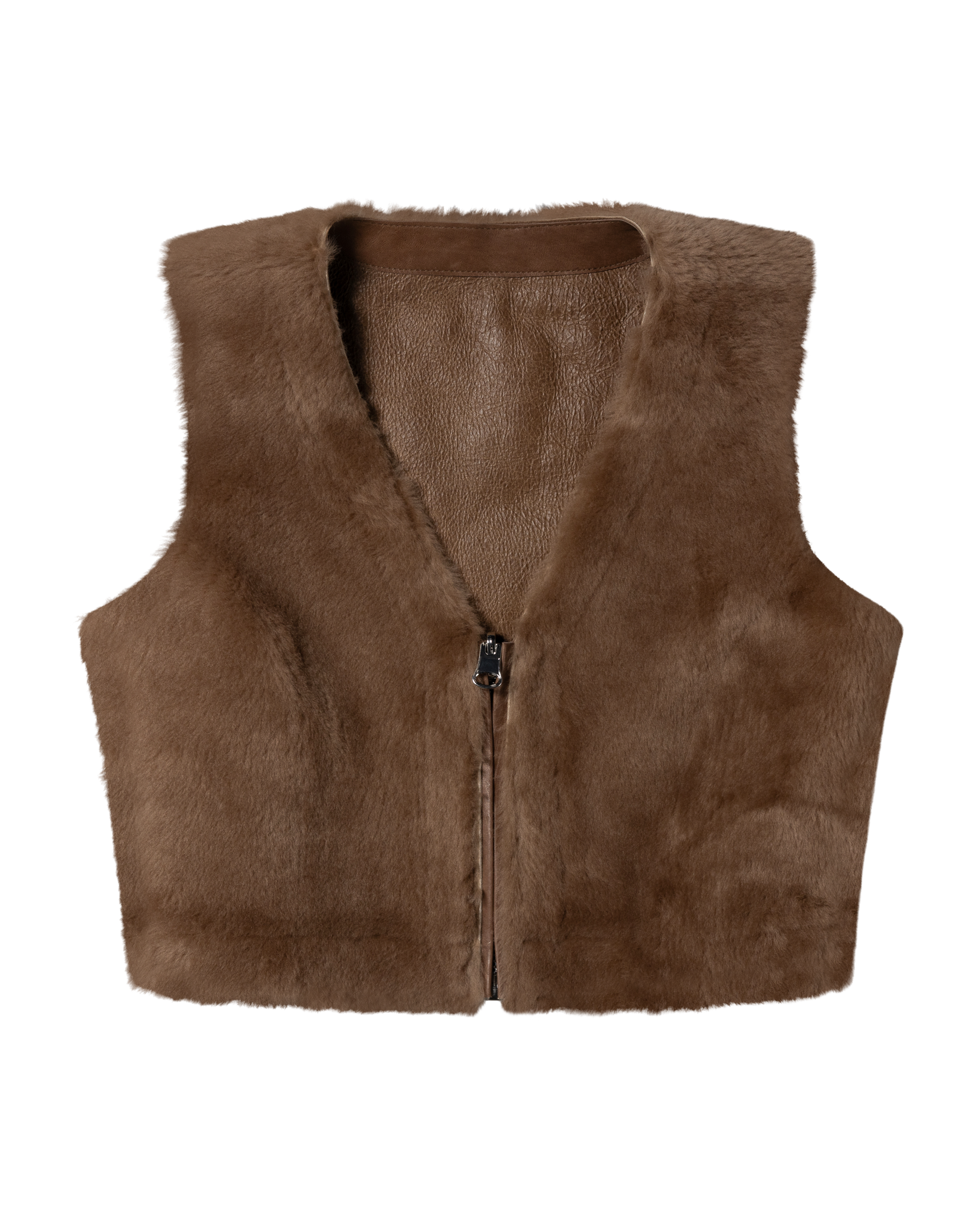 Reversible sheepskin waistcoat with panel detailing in soft sheepskin leather.