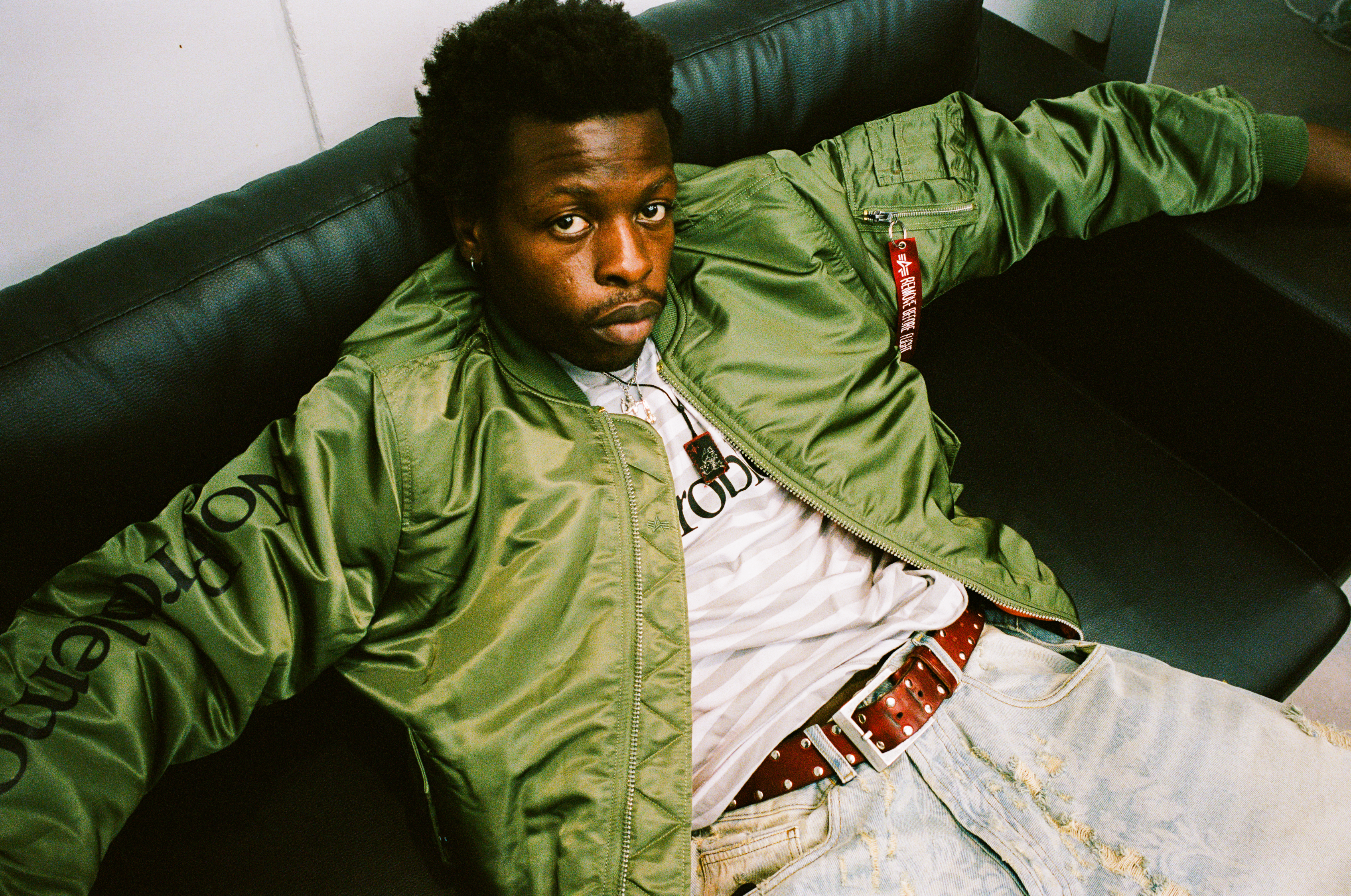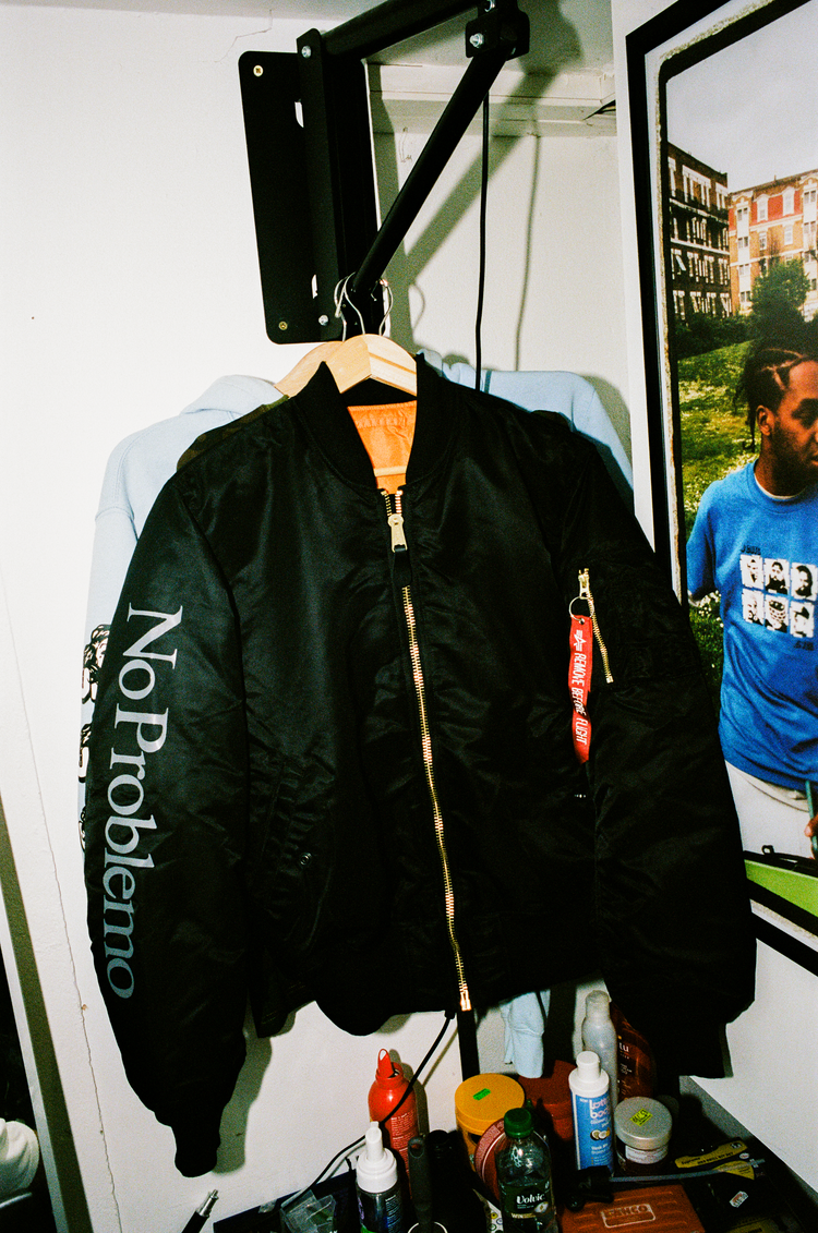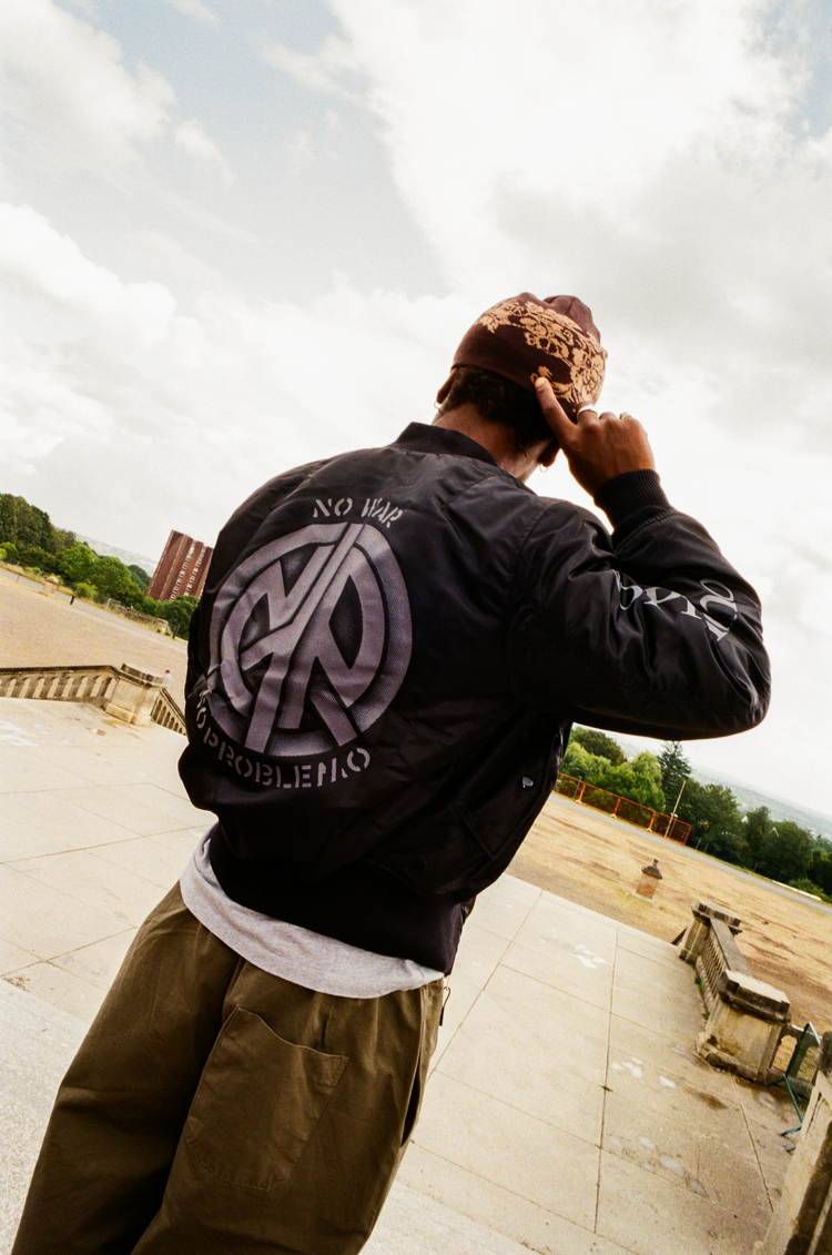 The Alpha Industries x No Problemo MA-1 lands in classic sage green and black, standing at the intersection of military uniform and coded streetwear. The collab is built on Alpha’s original MA-1 silhouette – flight-tested, field-ready – and filtered through No Problemo’s irreverent lens.