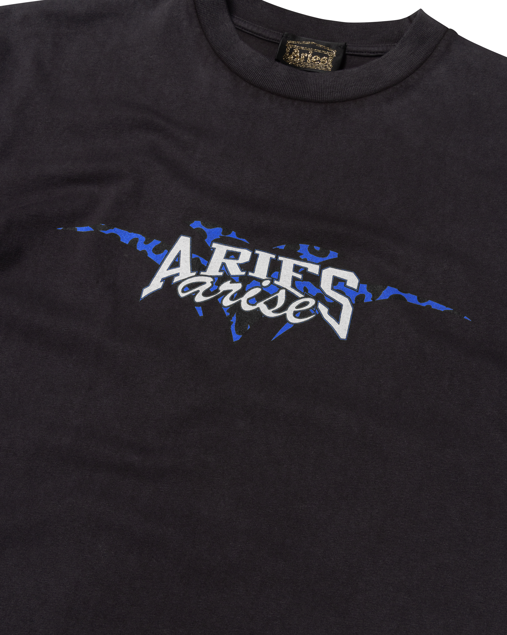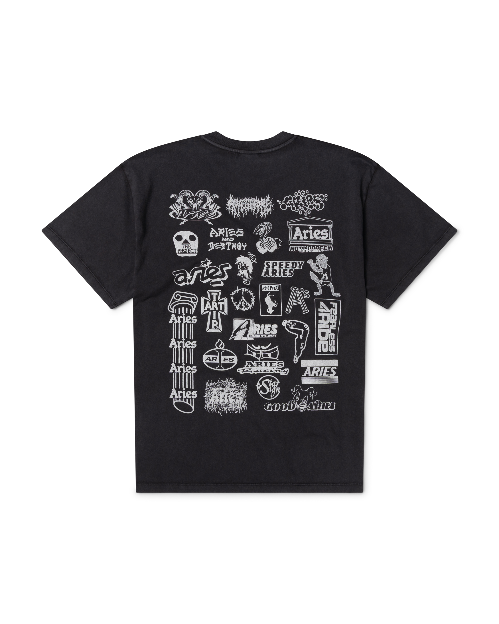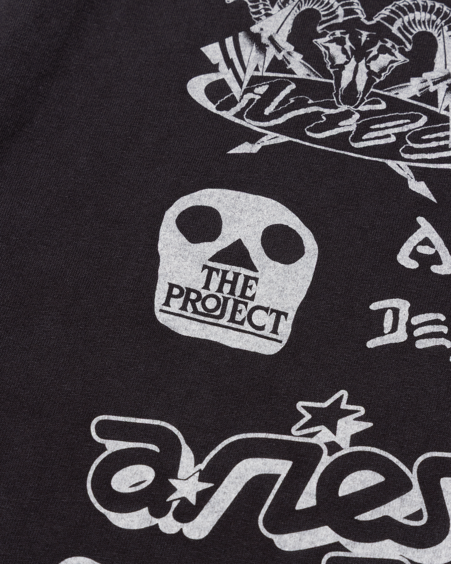 unisex short sleeve t-shirt from the aries end. exclusive capsule, made from 100% cotton in a mid-weight open-end jersey. detailed with ‘aries moto-dodgem’ graphics screenprinted front and back, and finished with a stone wash for a soft, faded look. available in white and black.