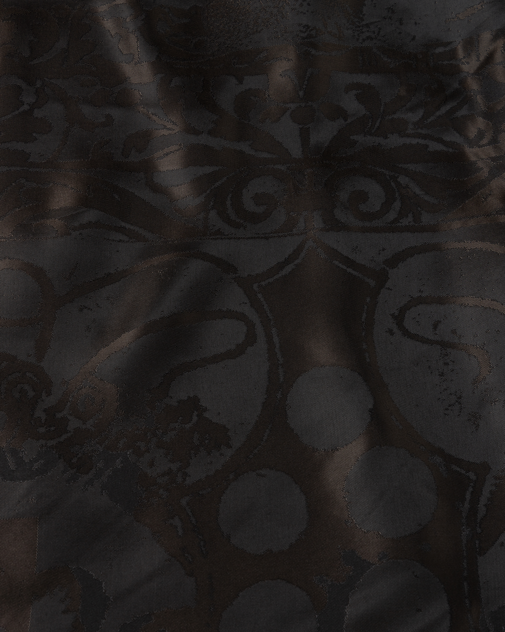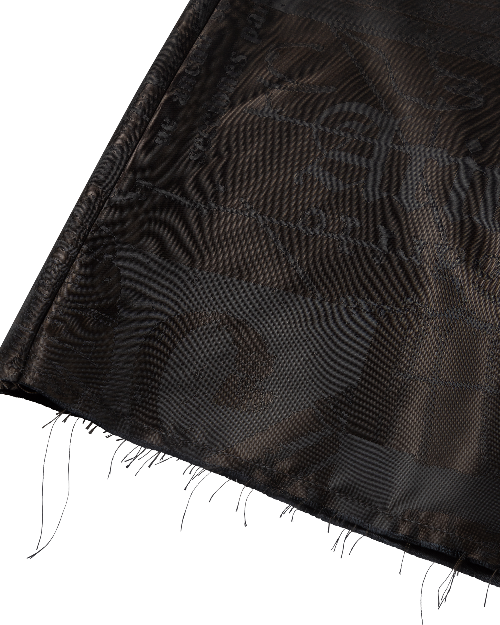 Mid length skirt with a tie side cut out detail in a luxe silky fabric featuring an all over custom Aries Jacquard.