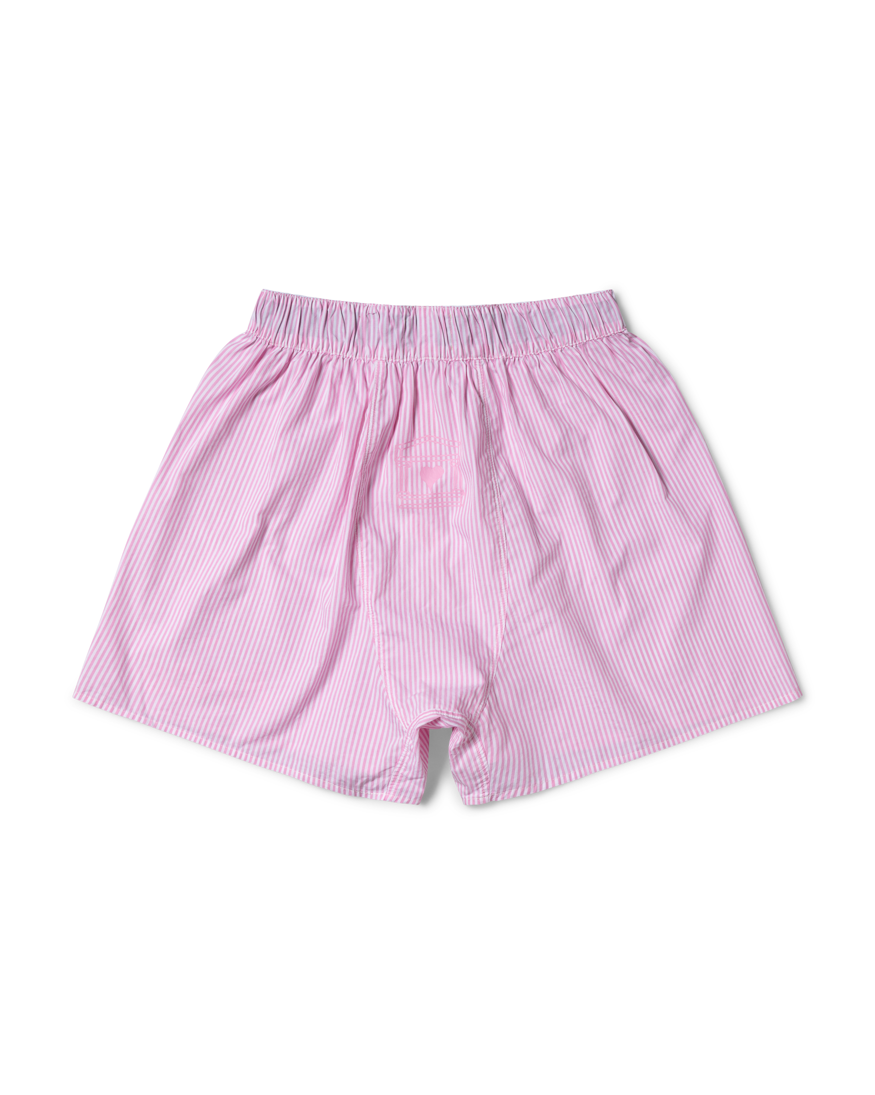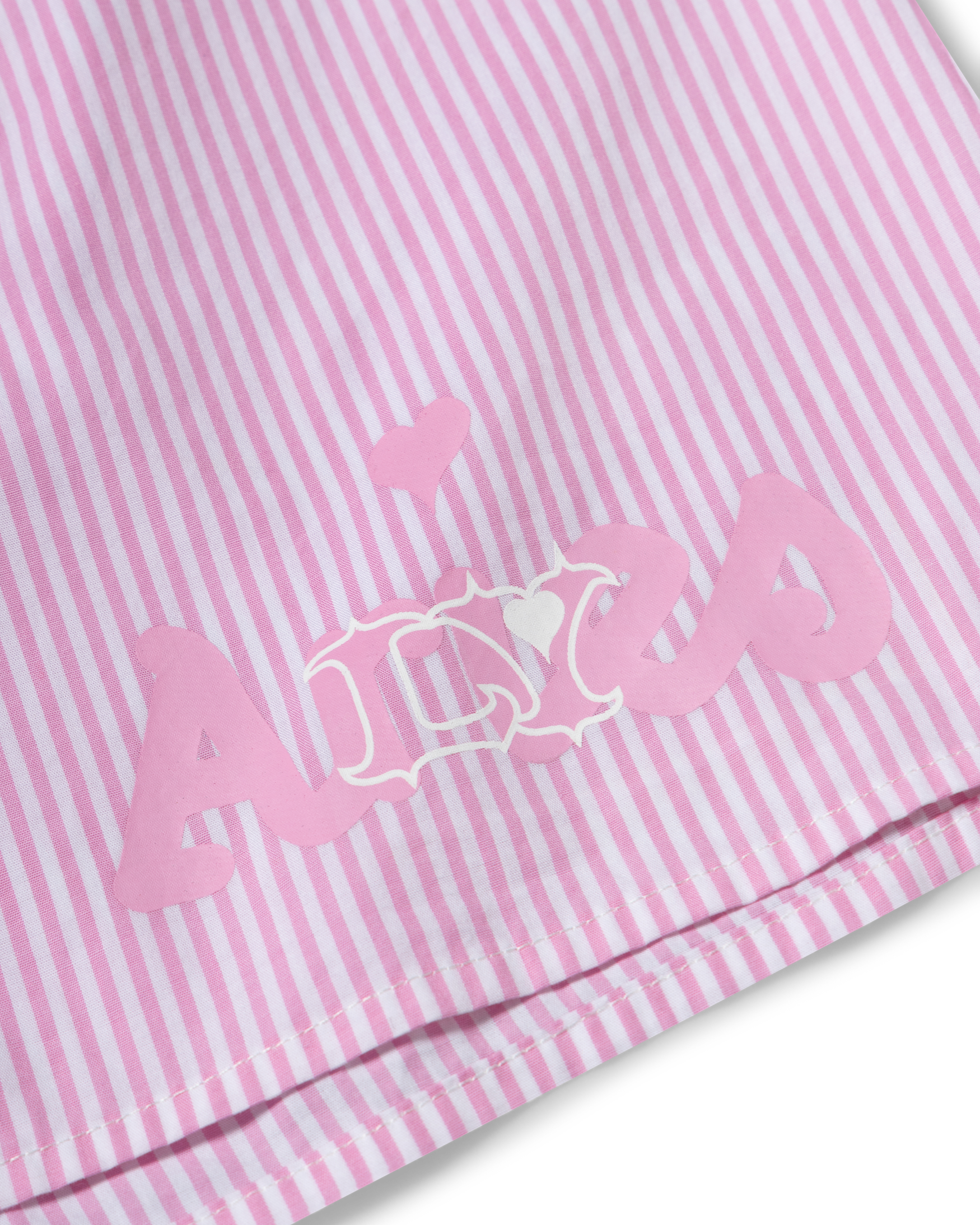 classic stripe oxford boxer shorts with Aries logo in oxford cotton with a screen-printed Aries x Lola Young graphic on the side of both legs.