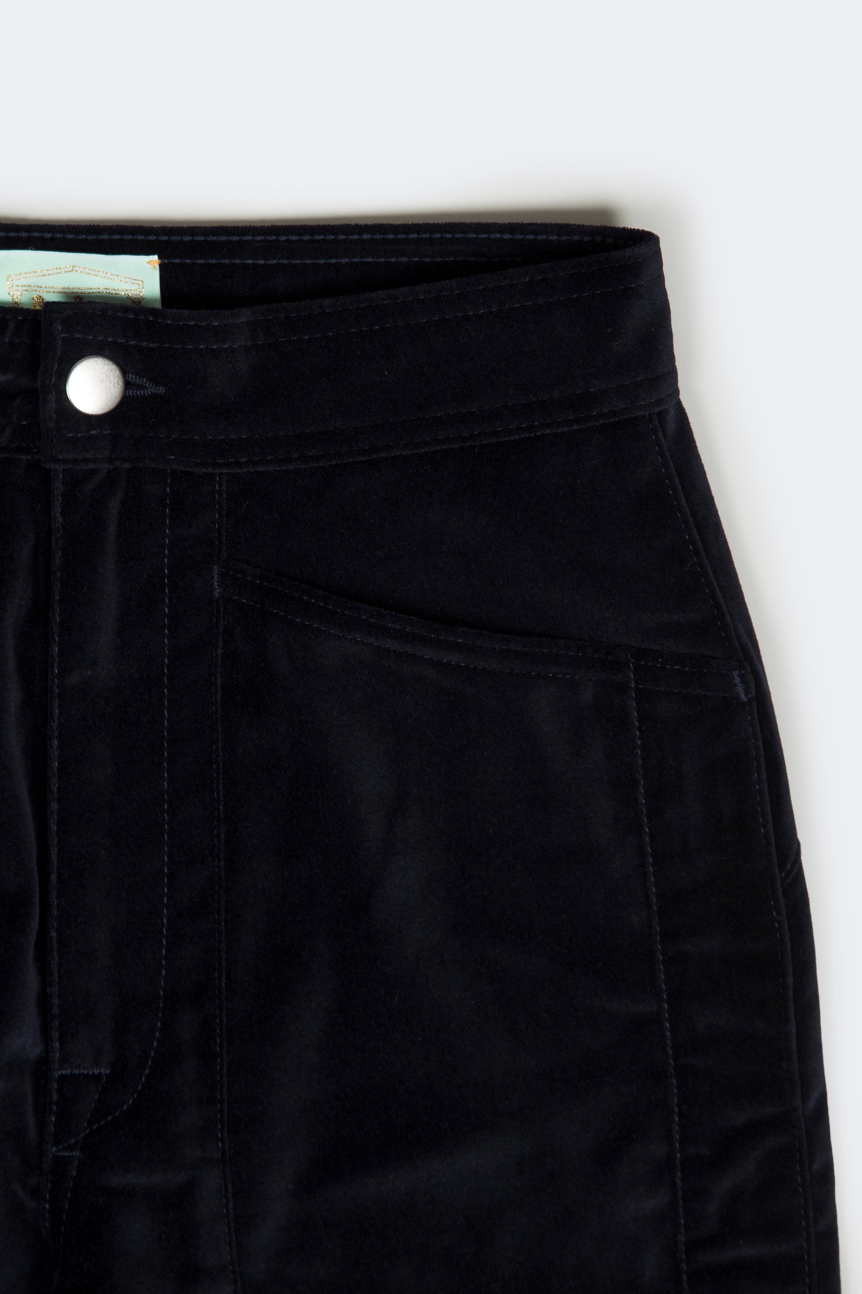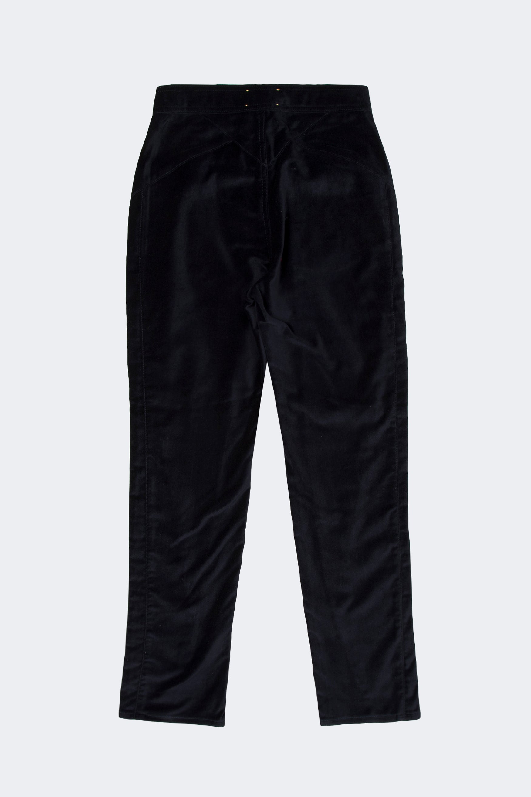 Panelled 80s style cigarette trousers in a plush navy cotton velvet.