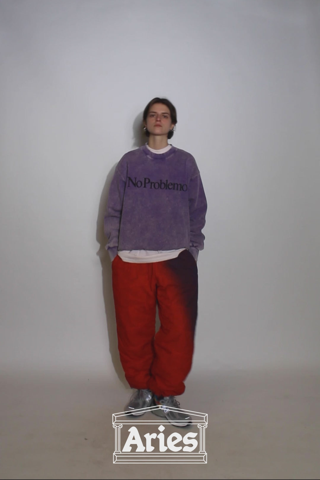 Unisex crew neck sweatshirt made from brushed-back jersey fleece. With a No Problemo screen-printed logo on the chest and finished with an acid wash treatment. 100% cotton. Made in Italy.