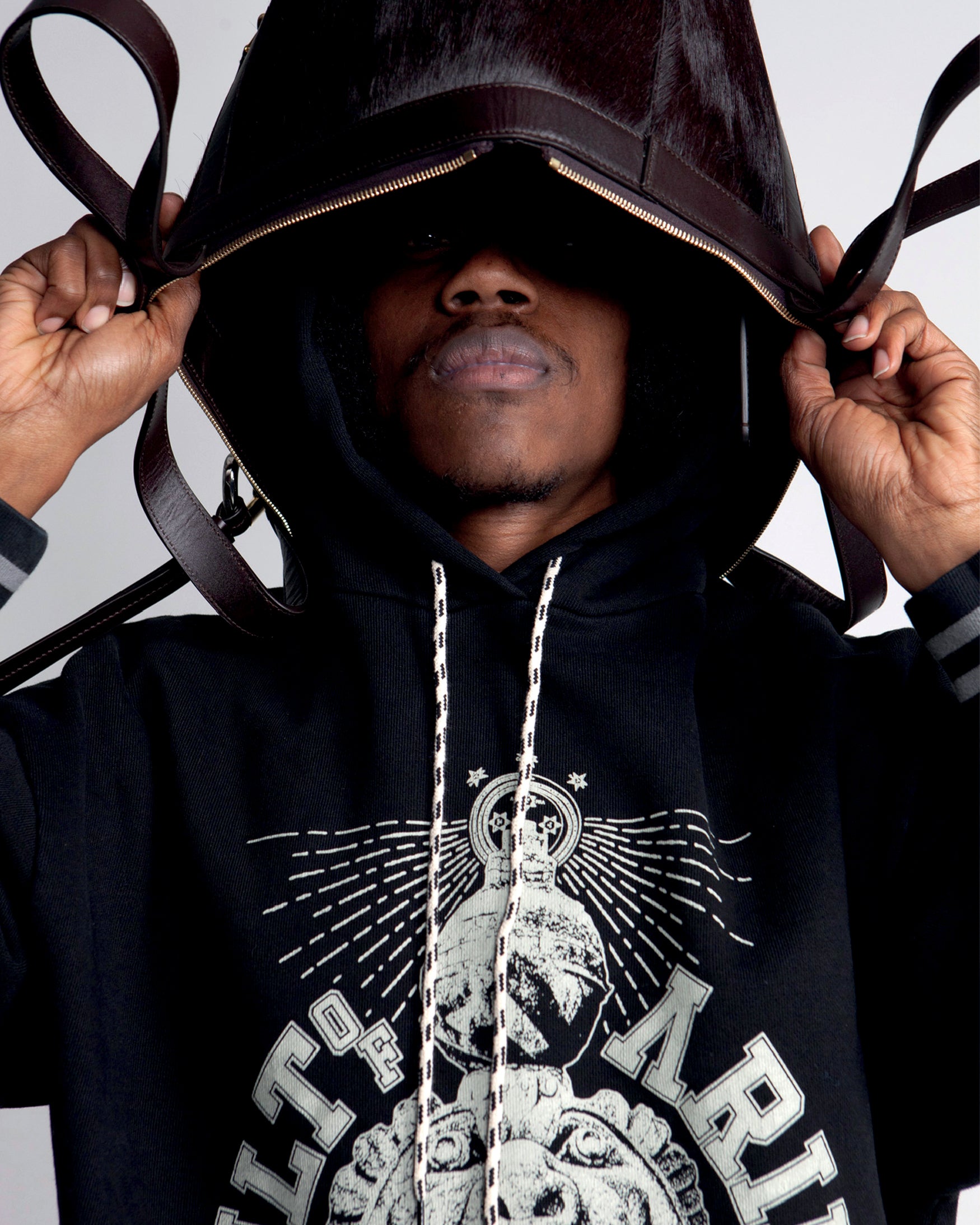 Unisex hooded sweatshirt made in heavy brushed-back cotton jersey fleece, with varsity stripe rib cuffs & hem. With Cult of Aries graphic screen printed on the front, finished with an aged look.