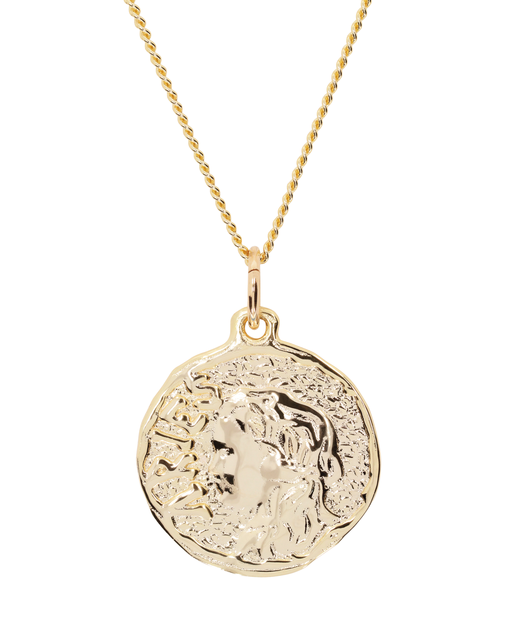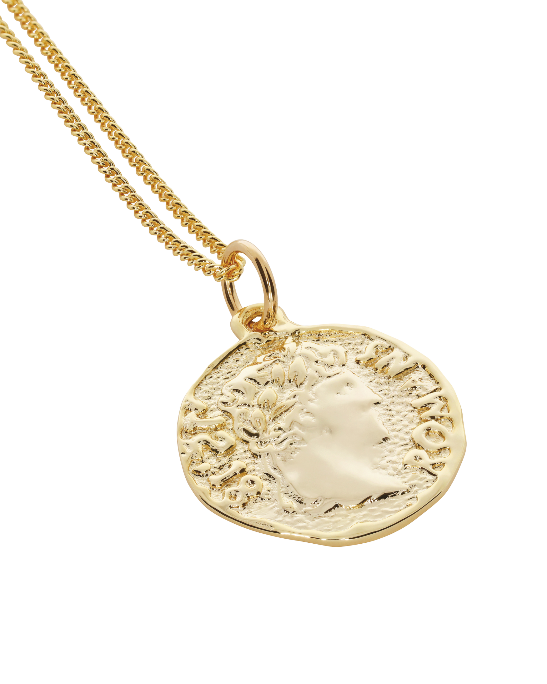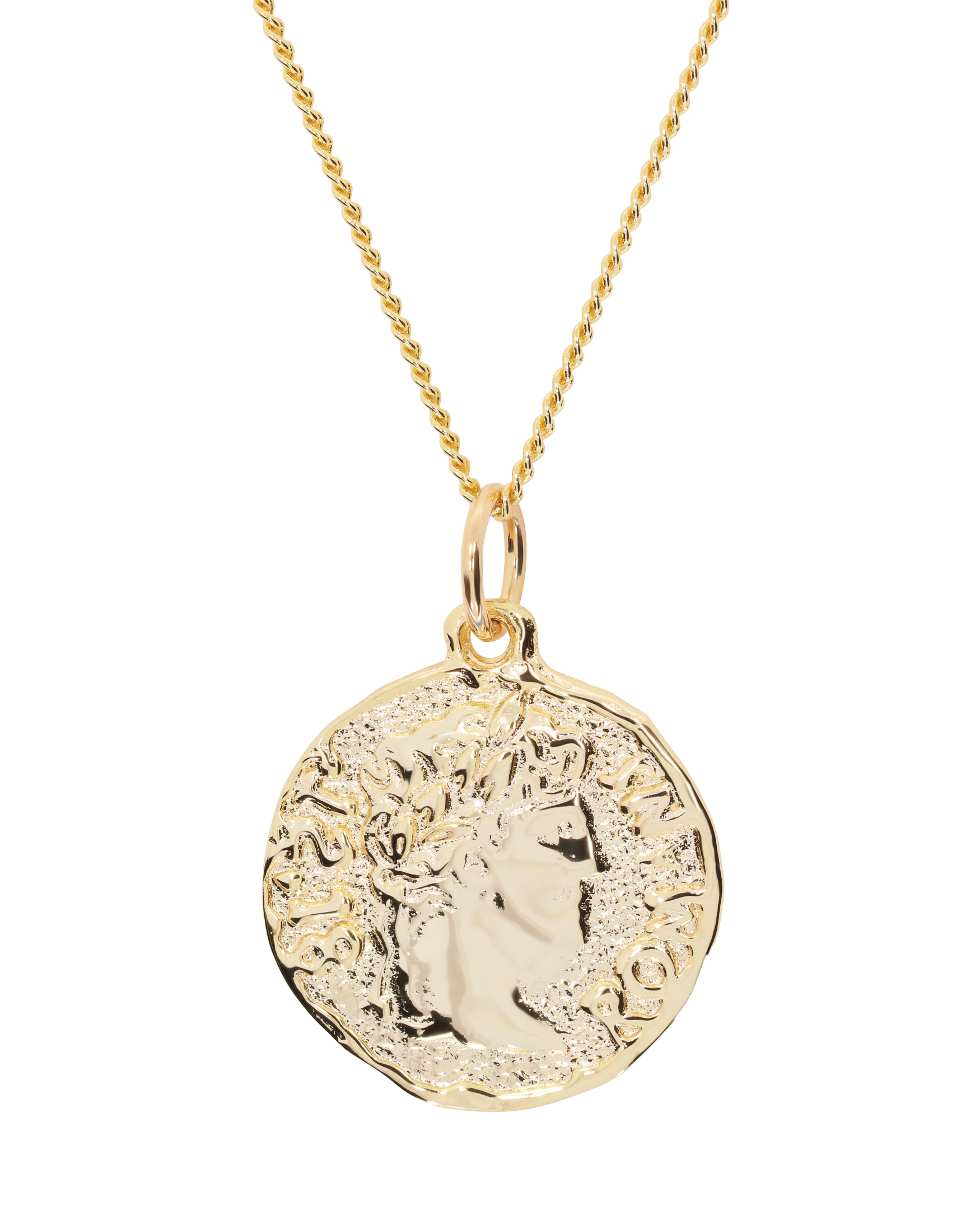 Fine chain necklace with an Aries Roman Coin pendant and double fastening for length options.