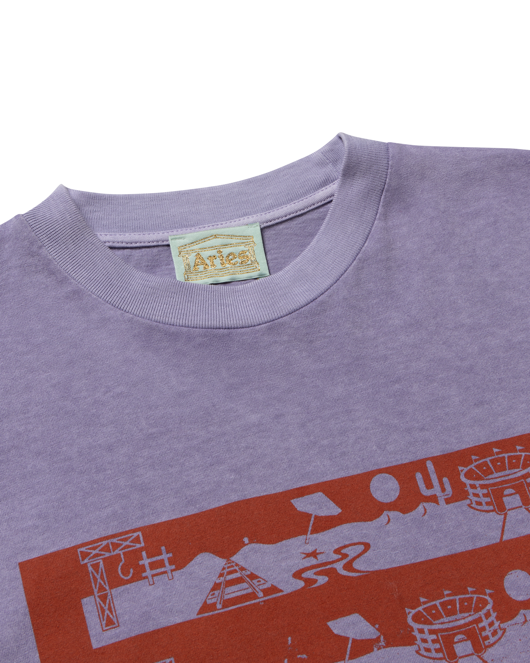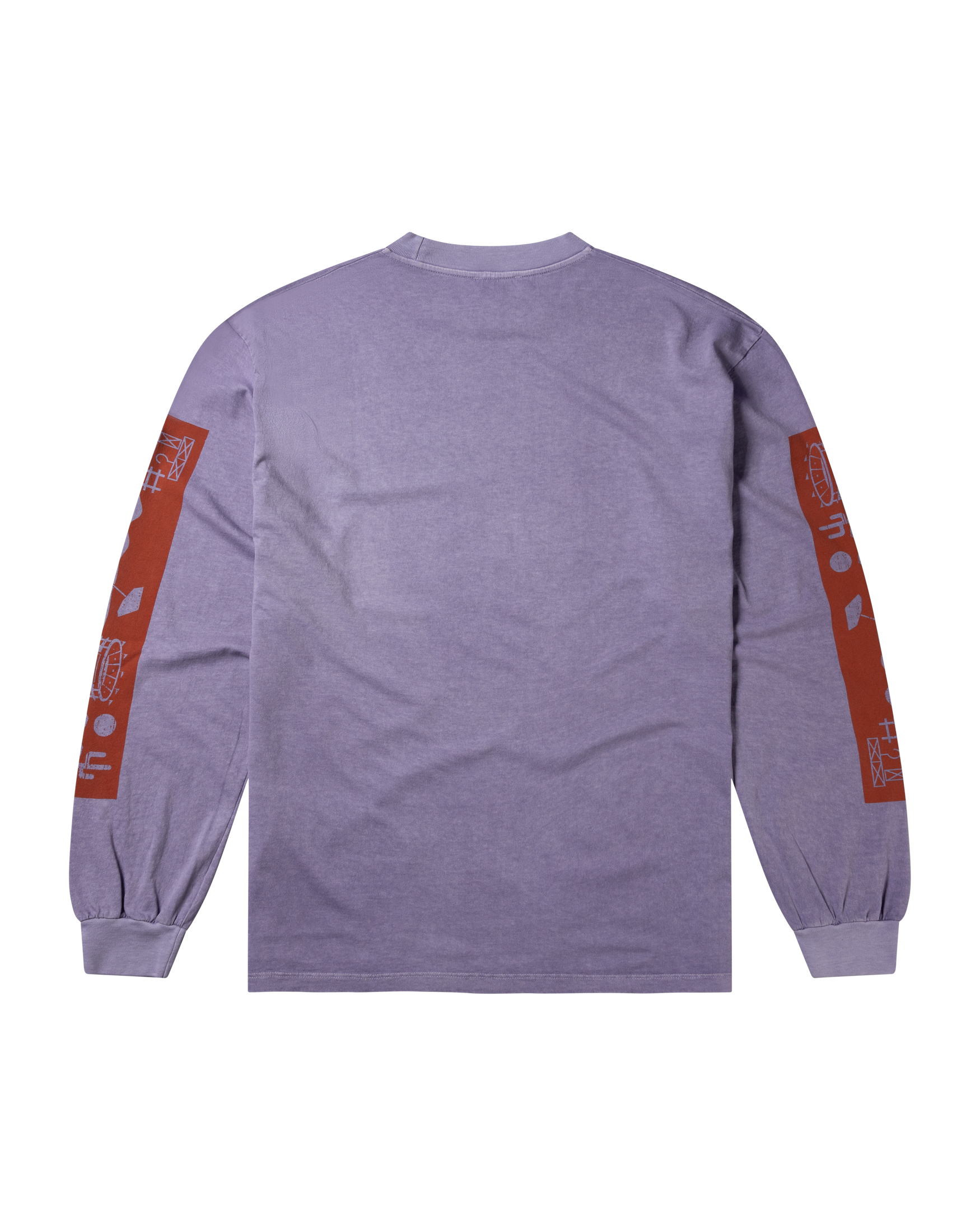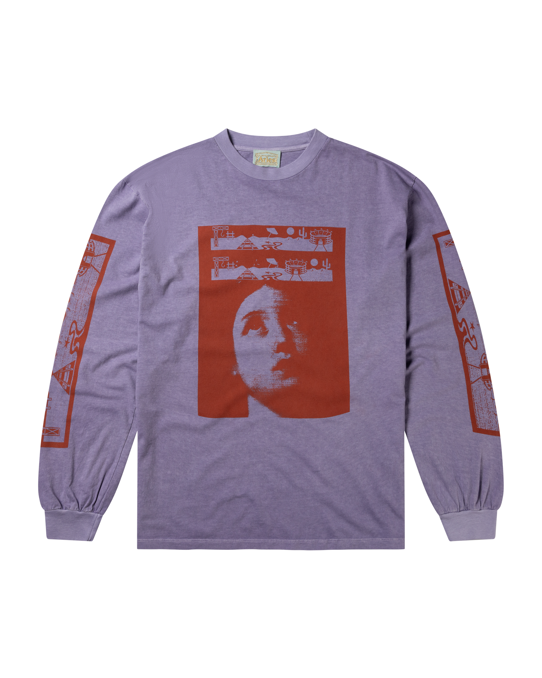 long sleeve t-shirt with seasonal graphic screen-printed on the front and 'Aries Arise Wingdings' graphics on both sleeves, with a stone wash treatment for a washed out, faded effect.