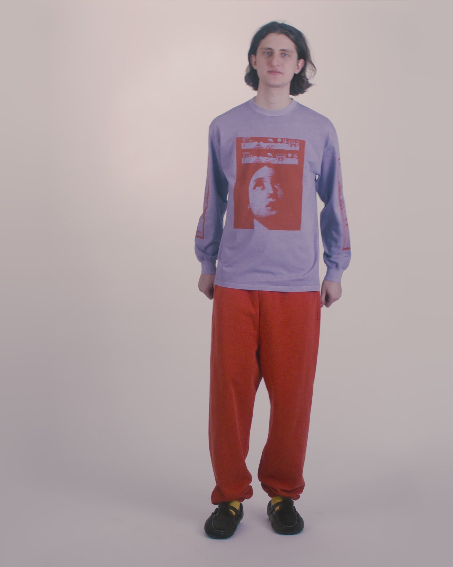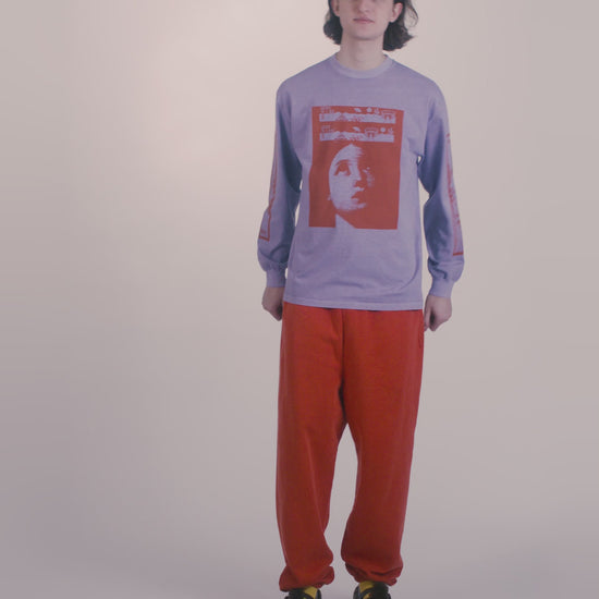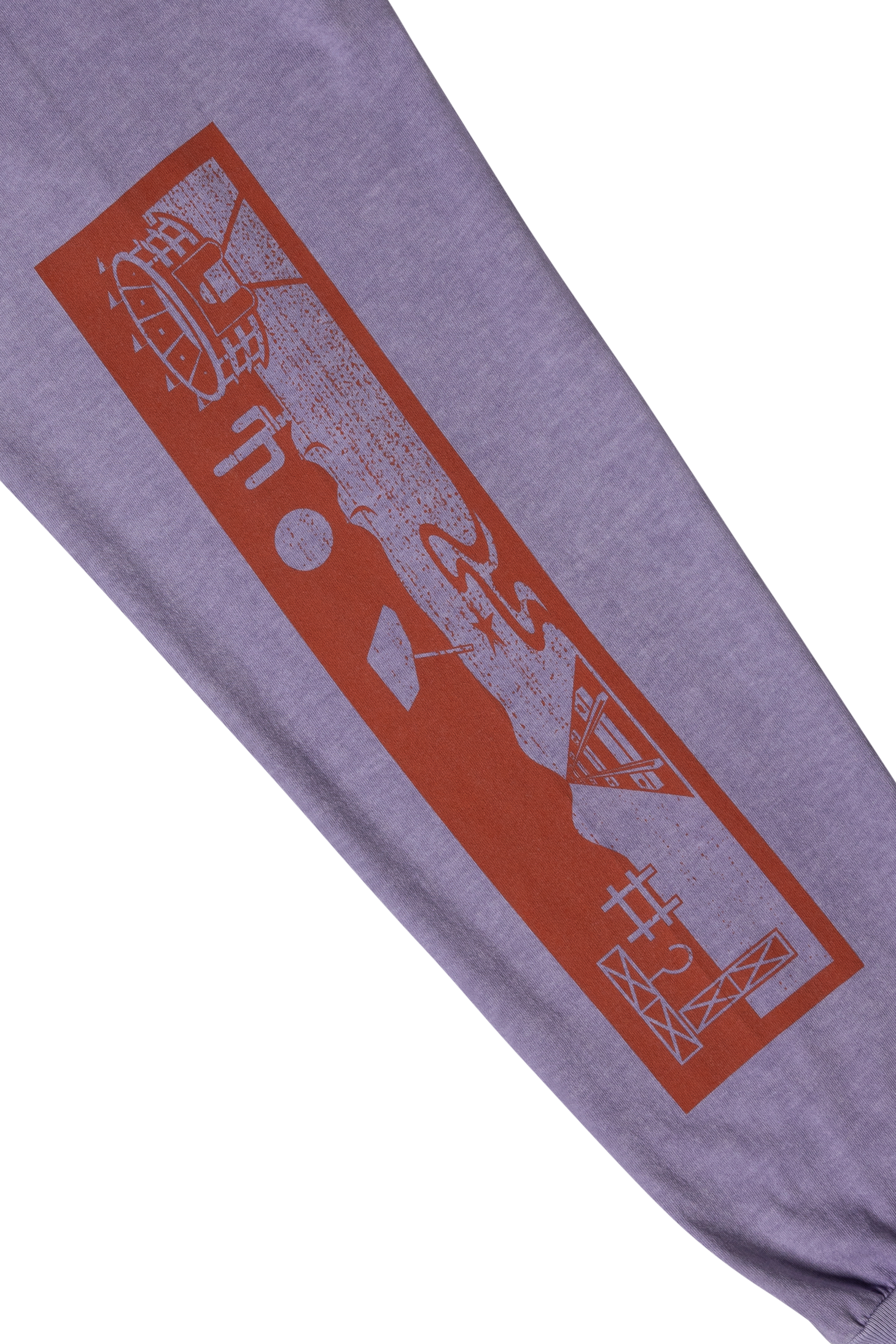 long sleeve t-shirt with seasonal graphic screen-printed on the front and 'Aries Arise Wingdings' graphics on both sleeves, with a stone wash treatment for a washed out, faded effect.