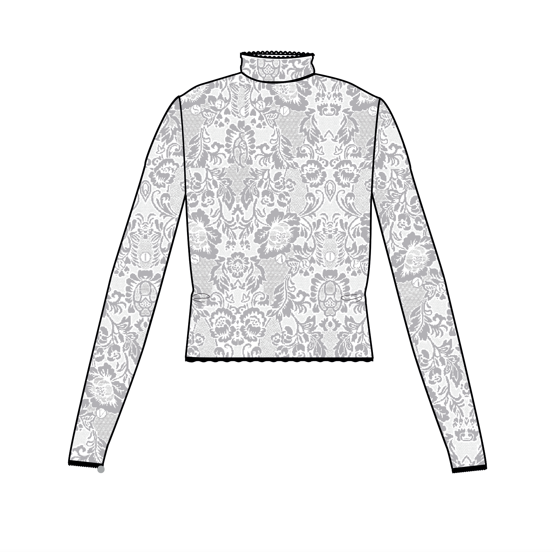 fitted long sleeve high neck top made from aries' custom fleur de lis stretch lace