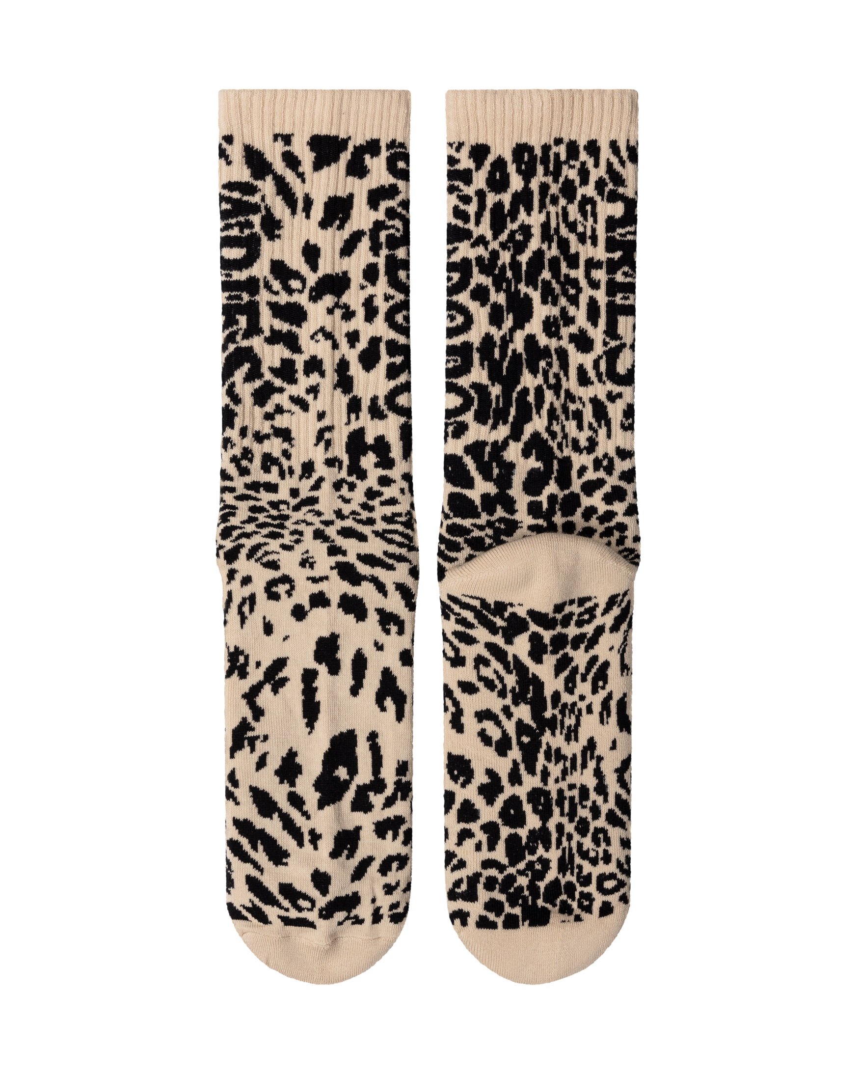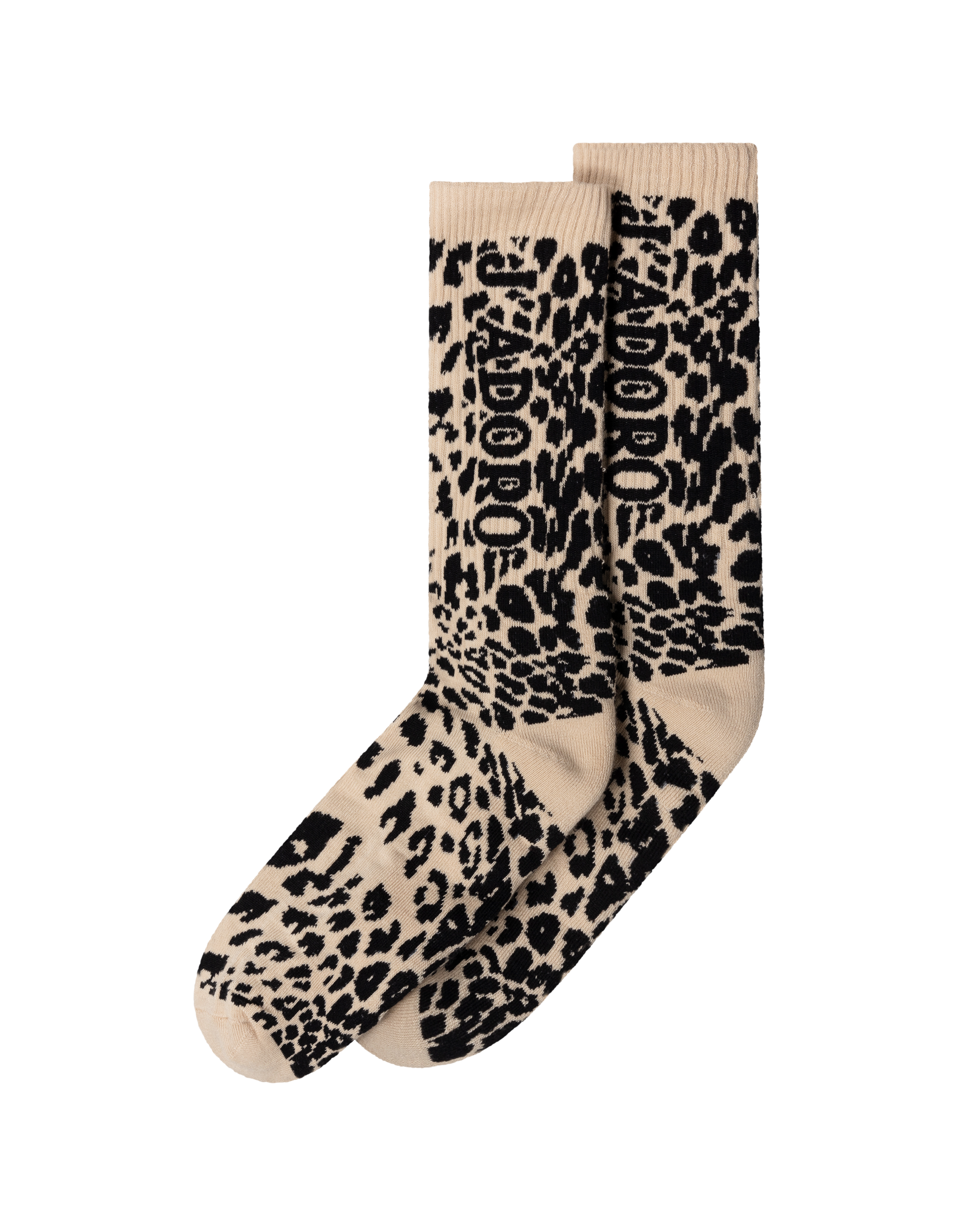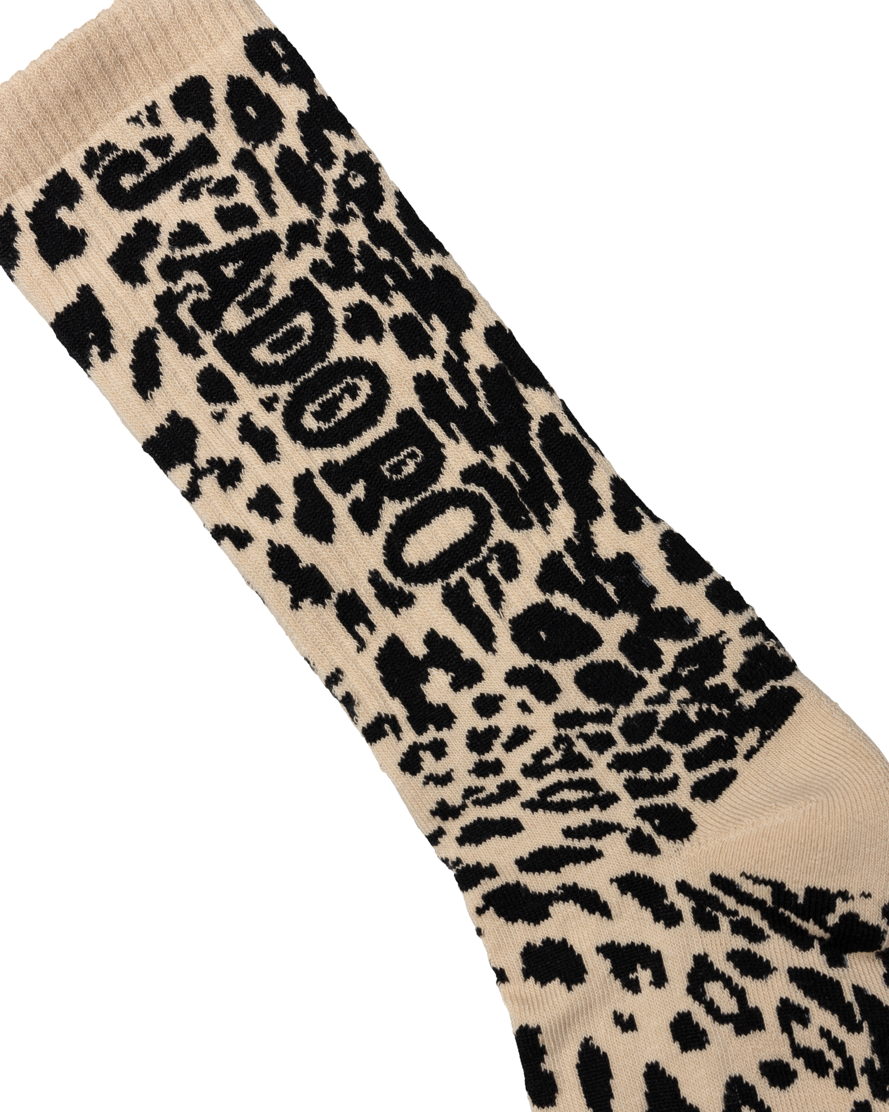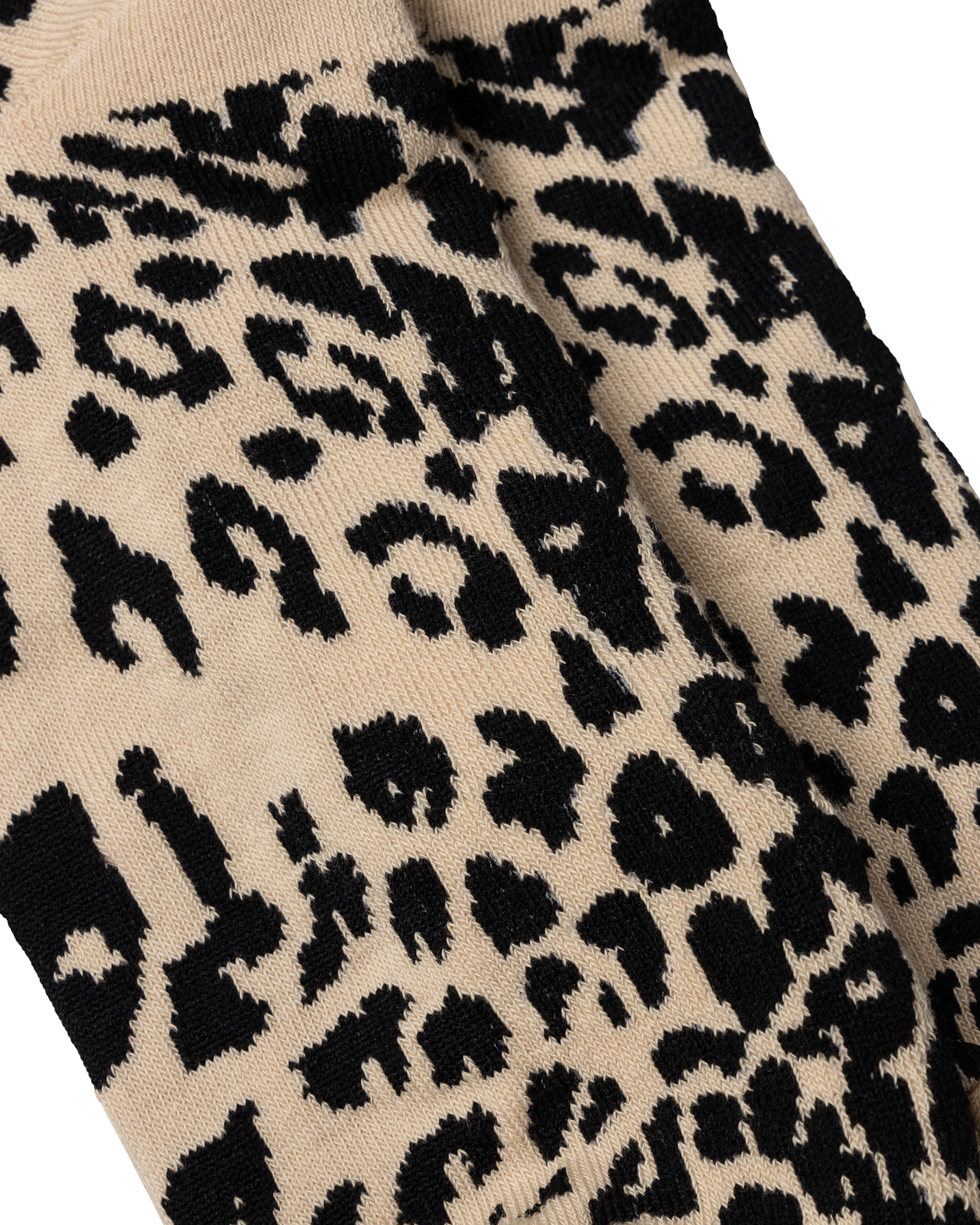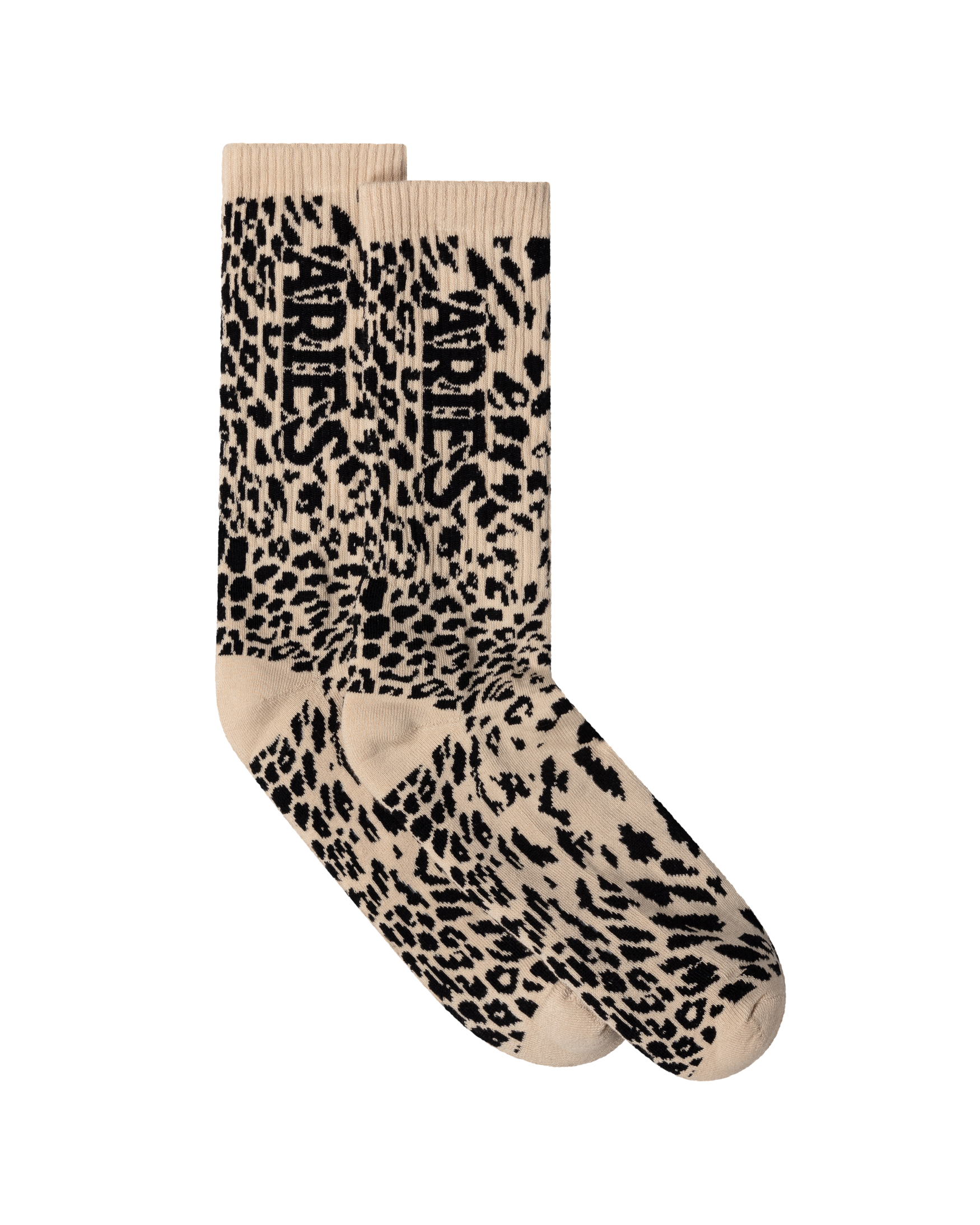 Jacquard socks in a sports-blend mix yarn, with leopard all over and J'adoro Aries graphic. Padded sole for extra comfort.