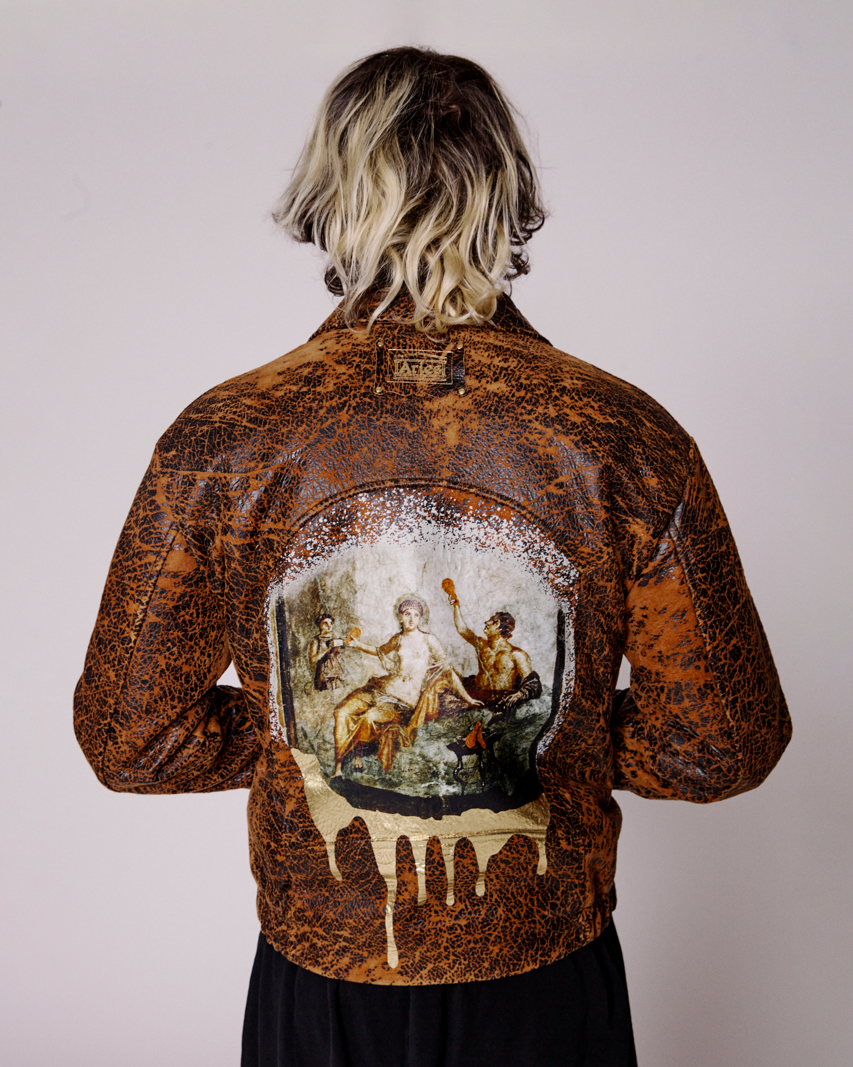 ARIES partners with KFC to present a ten-piece limited-edition collection that blends classical art references with streetwear silhouettes in a bold tribute to KFC’s iconic gravy. The capsule includes digitally printed denim, gold-detailed tees and sweats, and a standout distressed leather jacket featuring Renaissance-inspired artwork. Designed with irony and craftsmanship in equal measure, each piece reflects a shared celebration of indulgence, ritual, and irreverence.