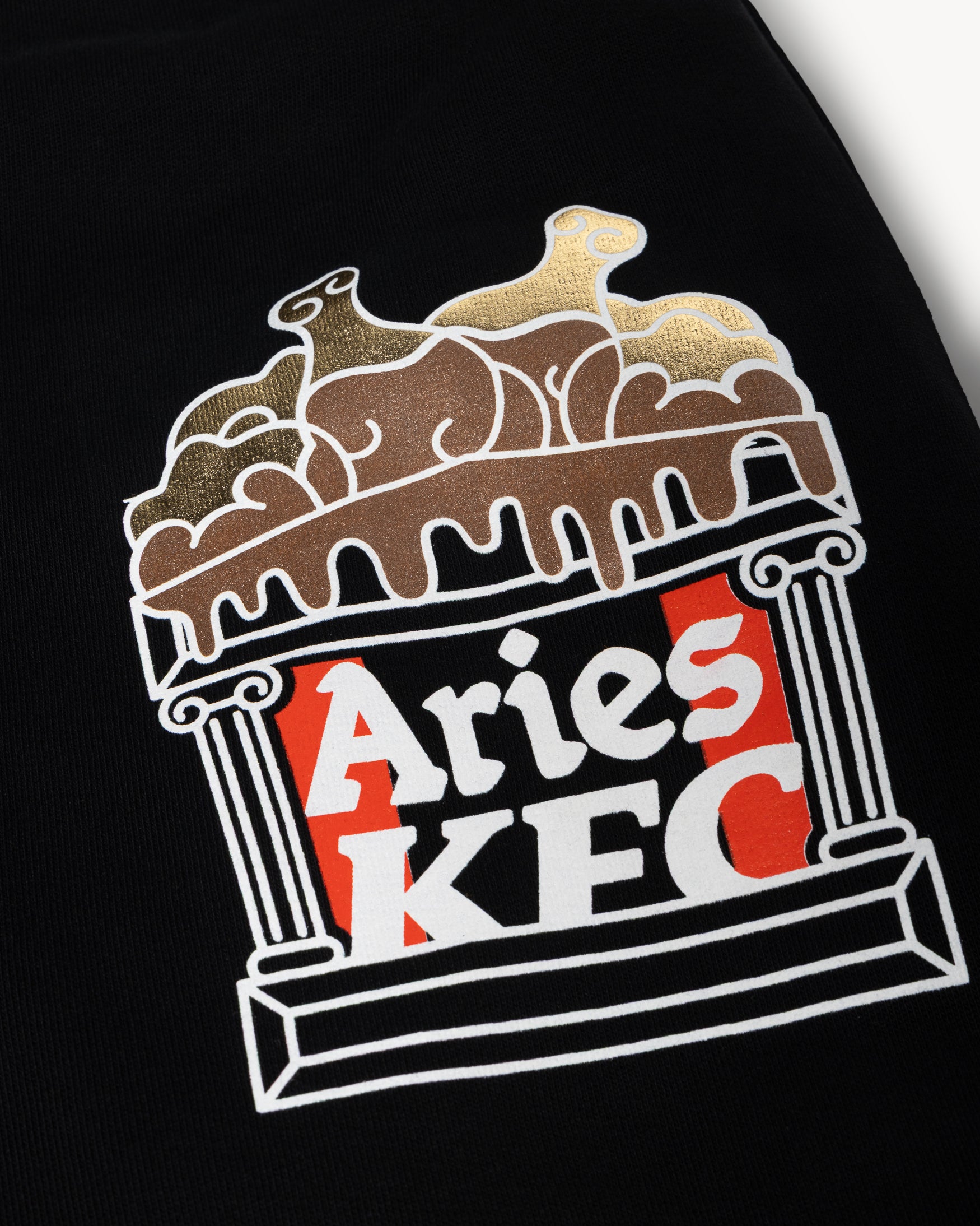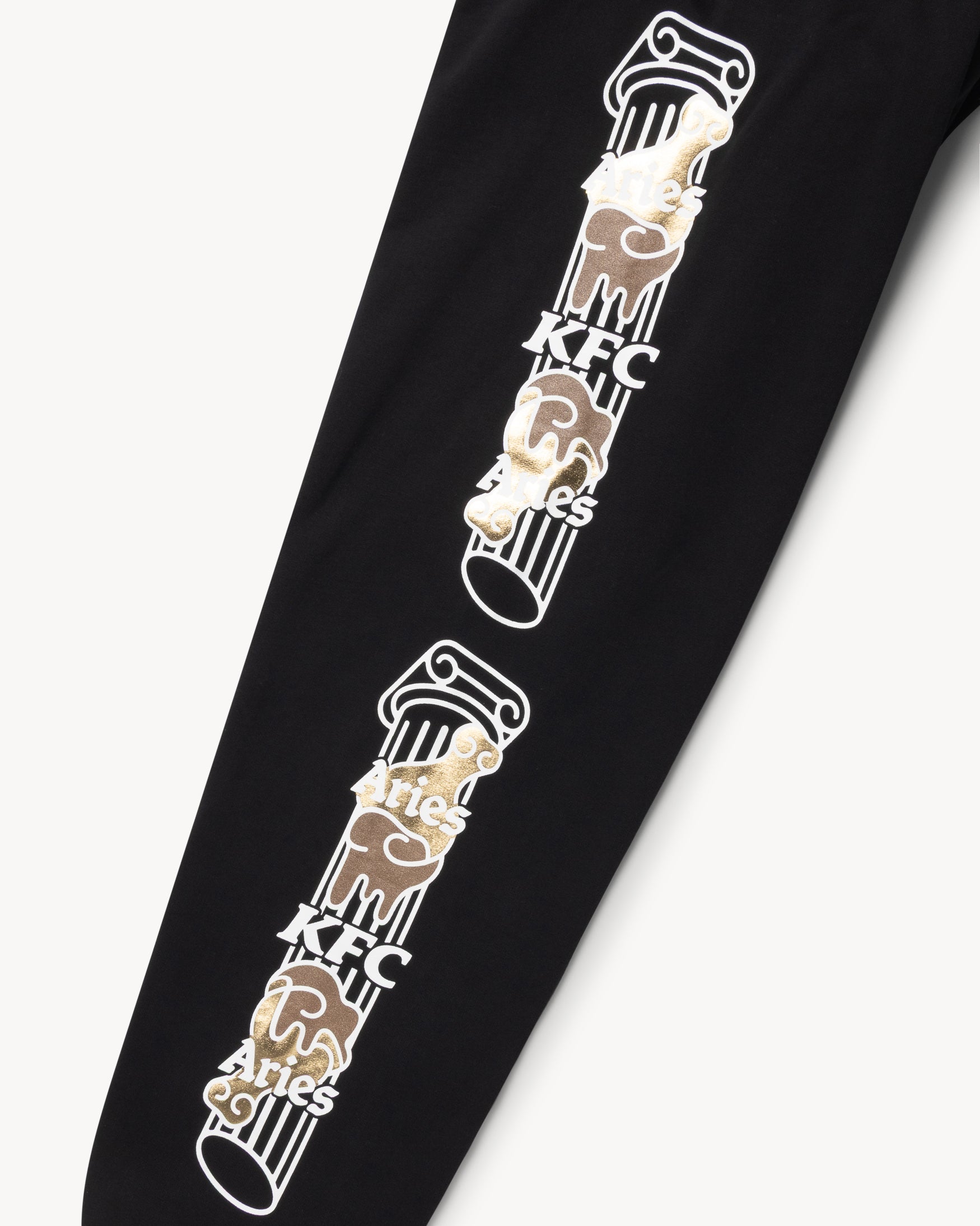 Unisex sweatpants in brushed-back 100% cotton jersey fleece. Detailed with metallic foil Aries x KFC graphics, including temple and column motifs that reference the collection’s blend of classical iconography and contemporary streetwear.