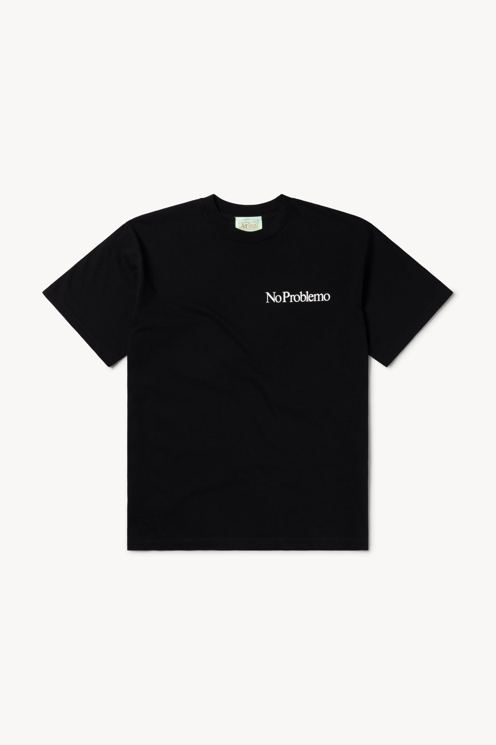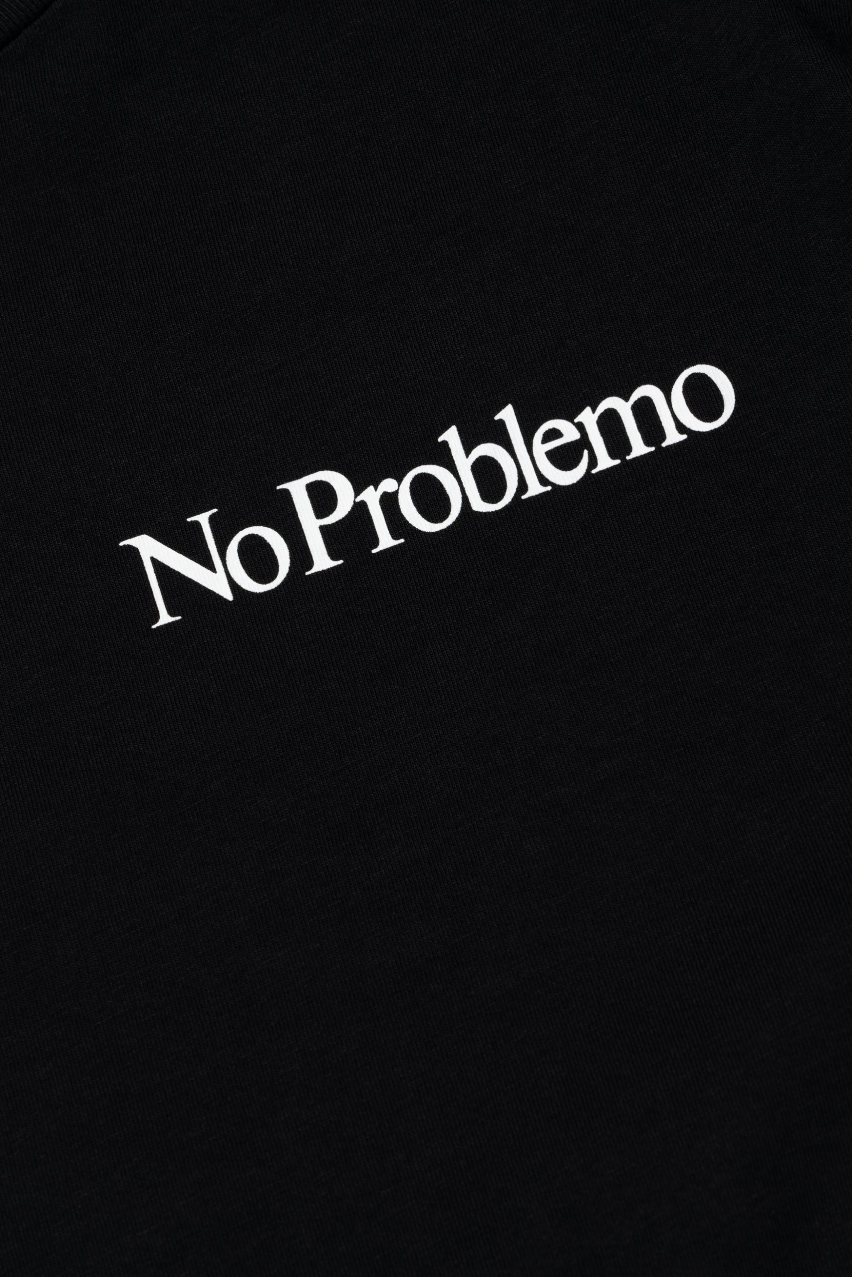 Unisex short sleeve t-shirt made from 100% cotton jersey. With a Mini No Problemo screen-printed chest graphic.