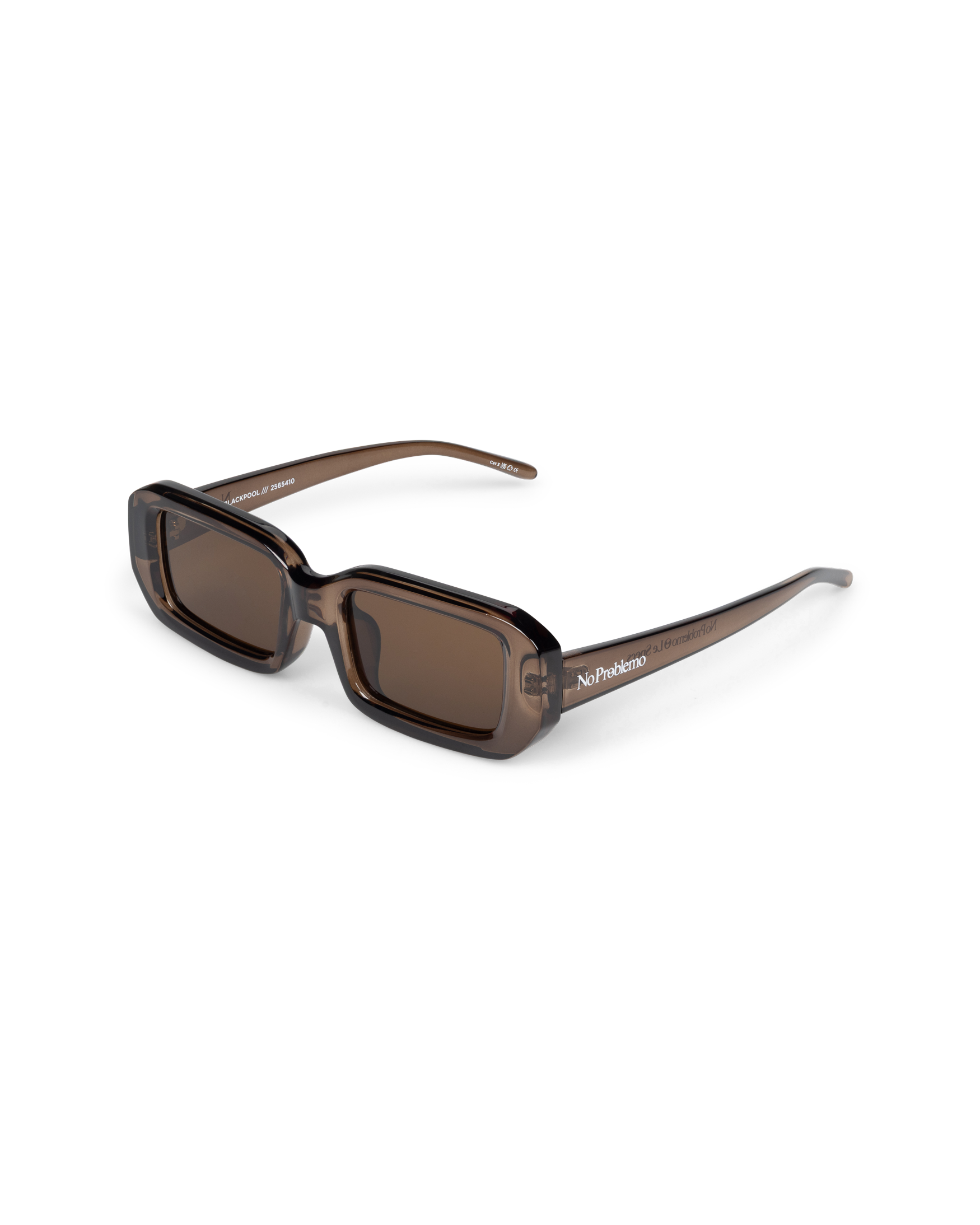 designed with a contemporary rectangular shape, the blackpool sunglasses are designed with narrow proportions and wide fit for all face sizes. this unisex frame features soft bevelled details and sleek tapered temples and is finished with no problemo logo print to temple.