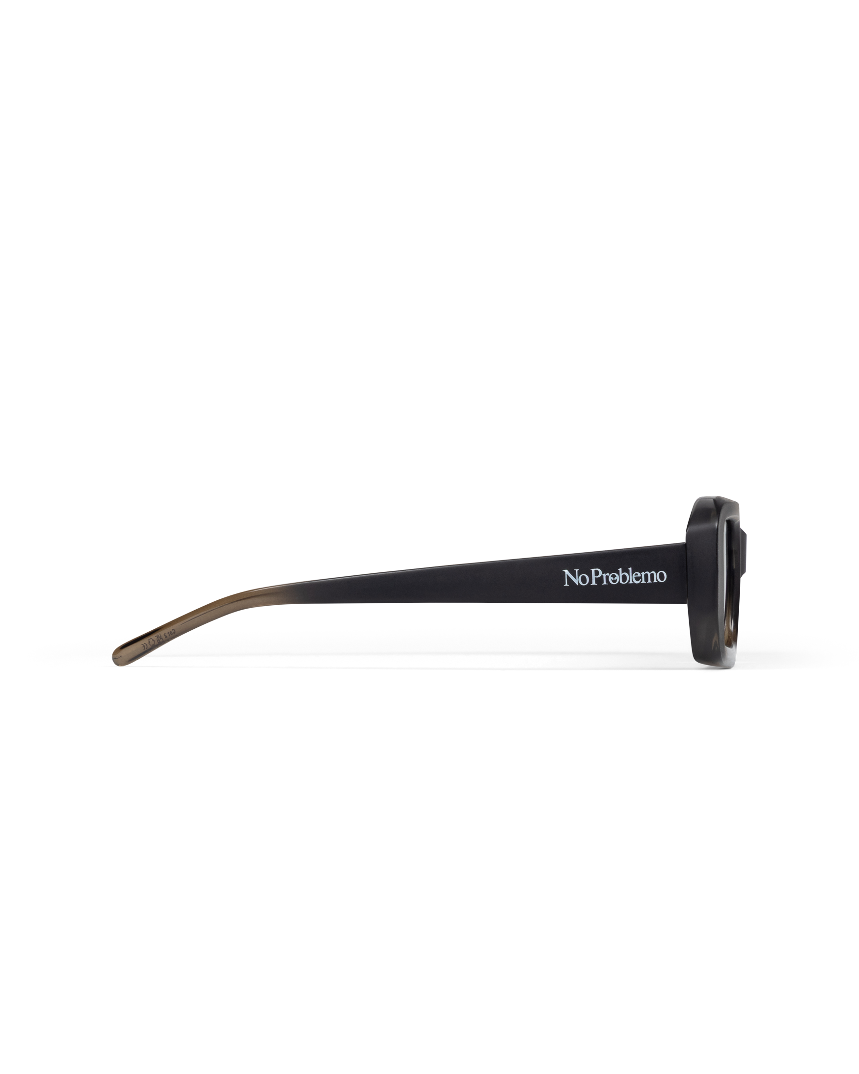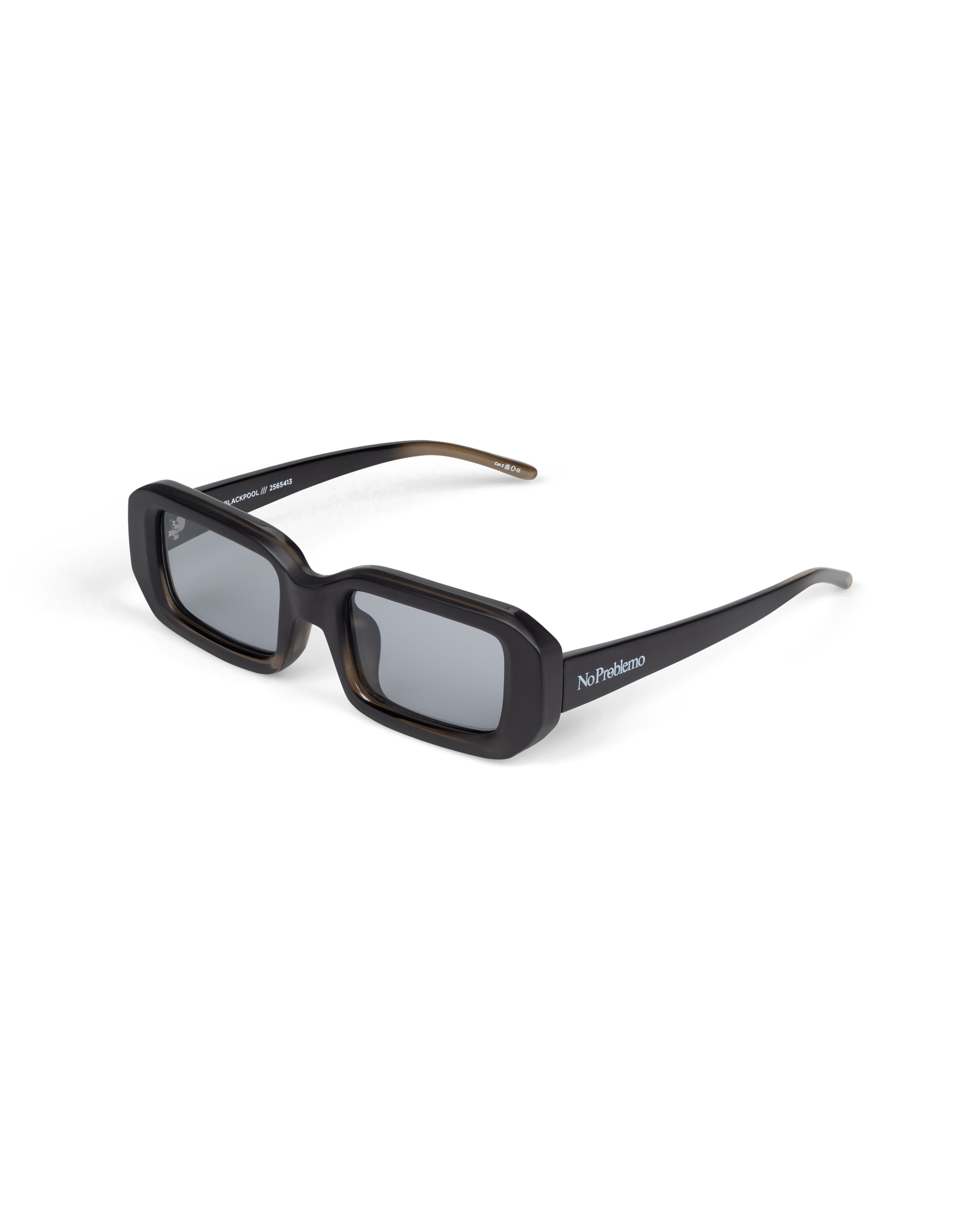 designed with a contemporary rectangular shape, the blackpool sunglasses are designed with narrow proportions and wide fit for all face sizes. this unisex frame features soft bevelled details and sleek tapered temples and is finished with no problemo logo print to temple.