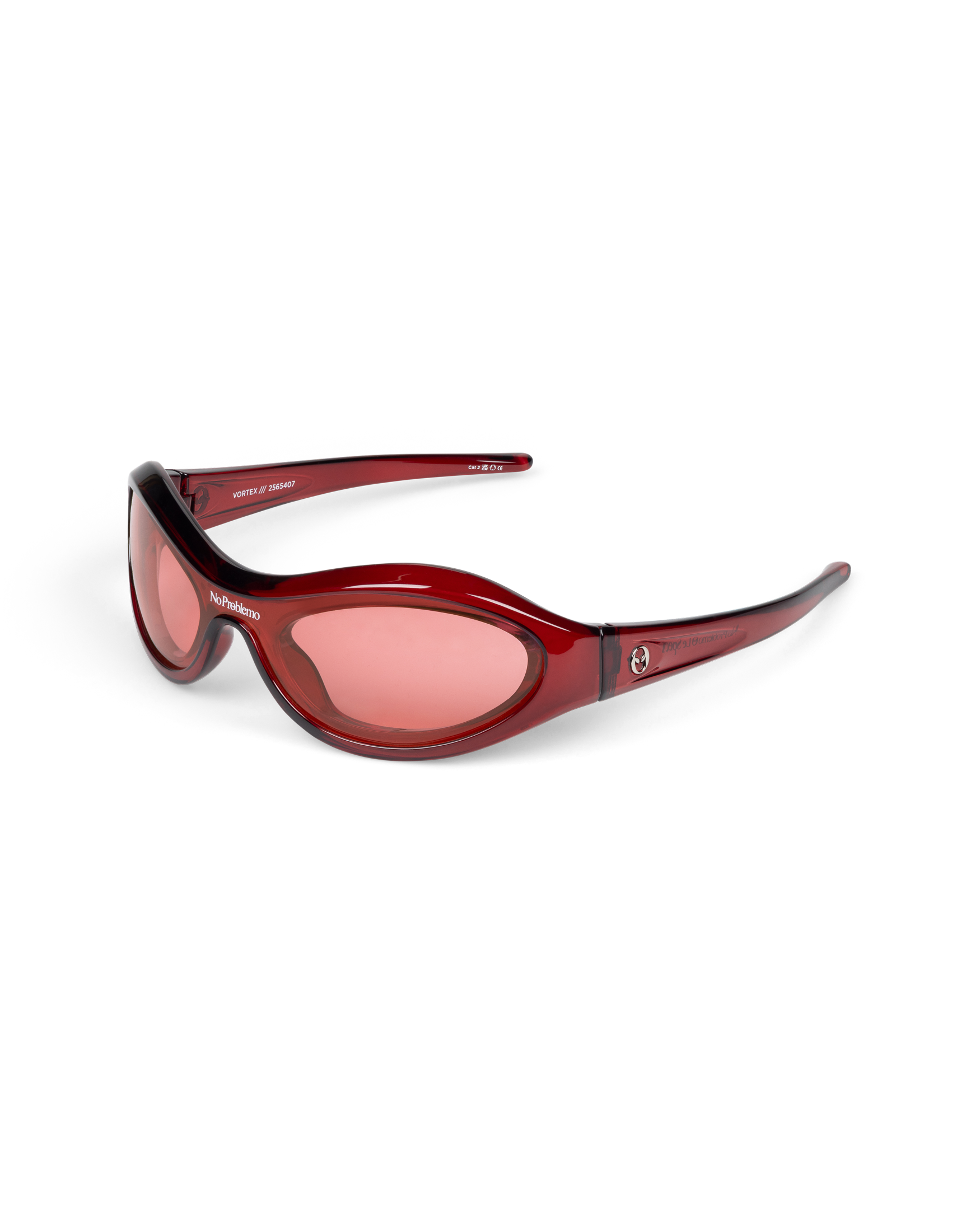 designed with a striking and streamlined aesthetic, the vortex midsize full-rim shield sunglasses offer a modern edge. featuring a three-dimensionally moulded frame profile, this style is accentuated by the signature no problemo alien face metal decal on the temple. the frame is completed with the iconic no problemo logo.