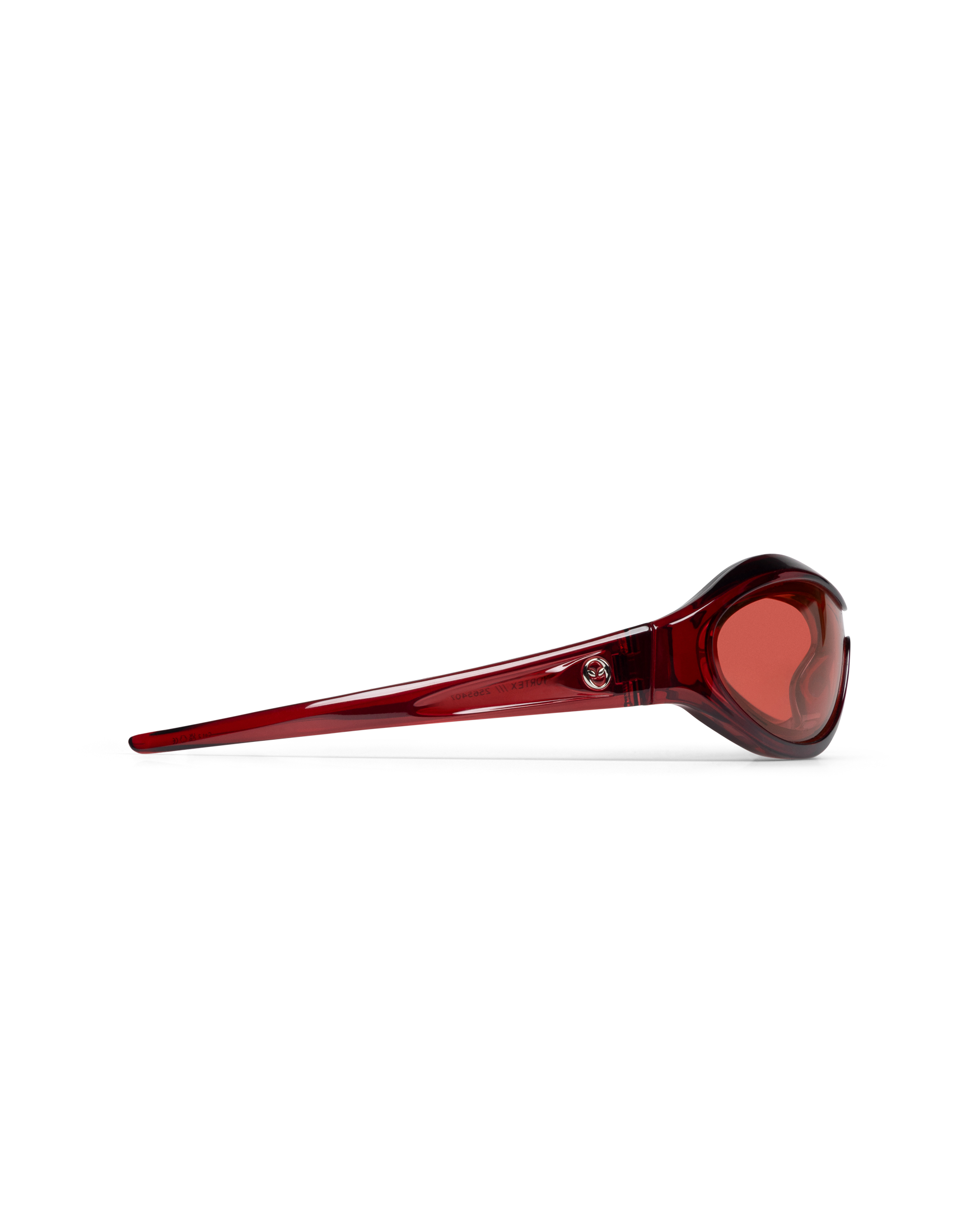 available in vermillion/crimson tint, charcoal/smoke tint and slate blue/smoke tint colourways.