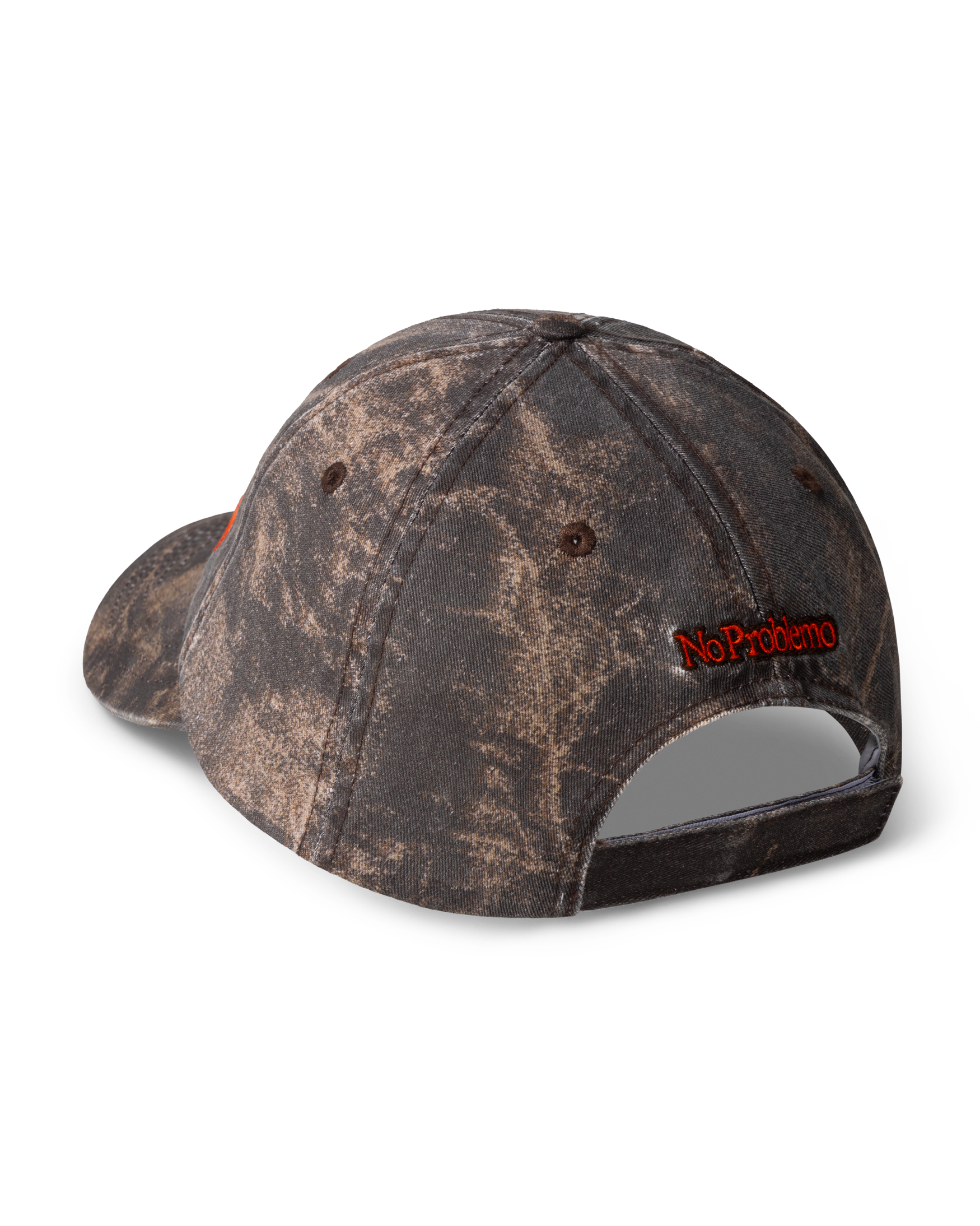 6 panel camo cap made from 100% cotton drill with a plastic back strap.