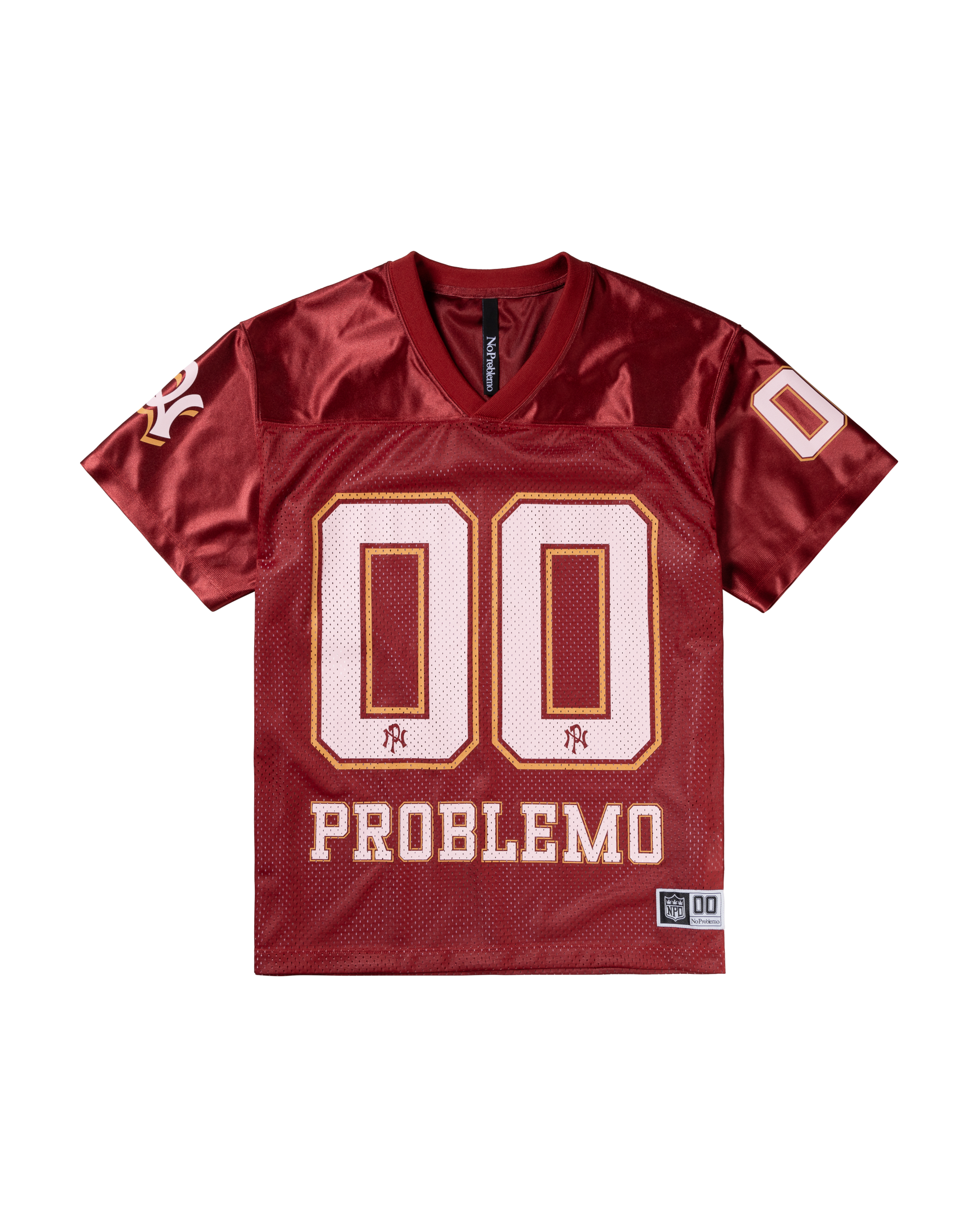 airtex sport jersey in polyester and mesh mix with 'zero problemo' graphic prints on the front and sleeve.