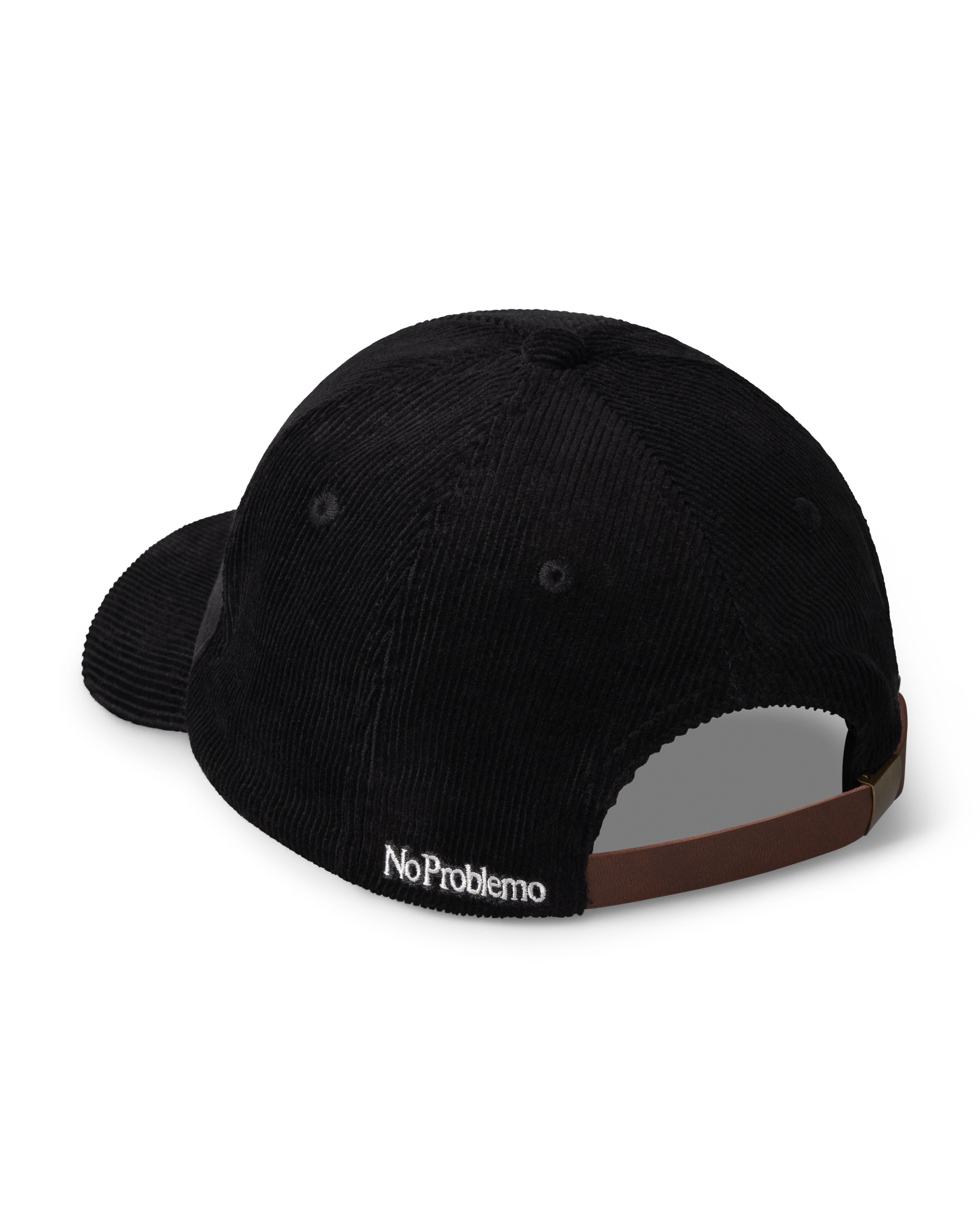6 panel cap made from 100% cotton corduroy with leather back strap.