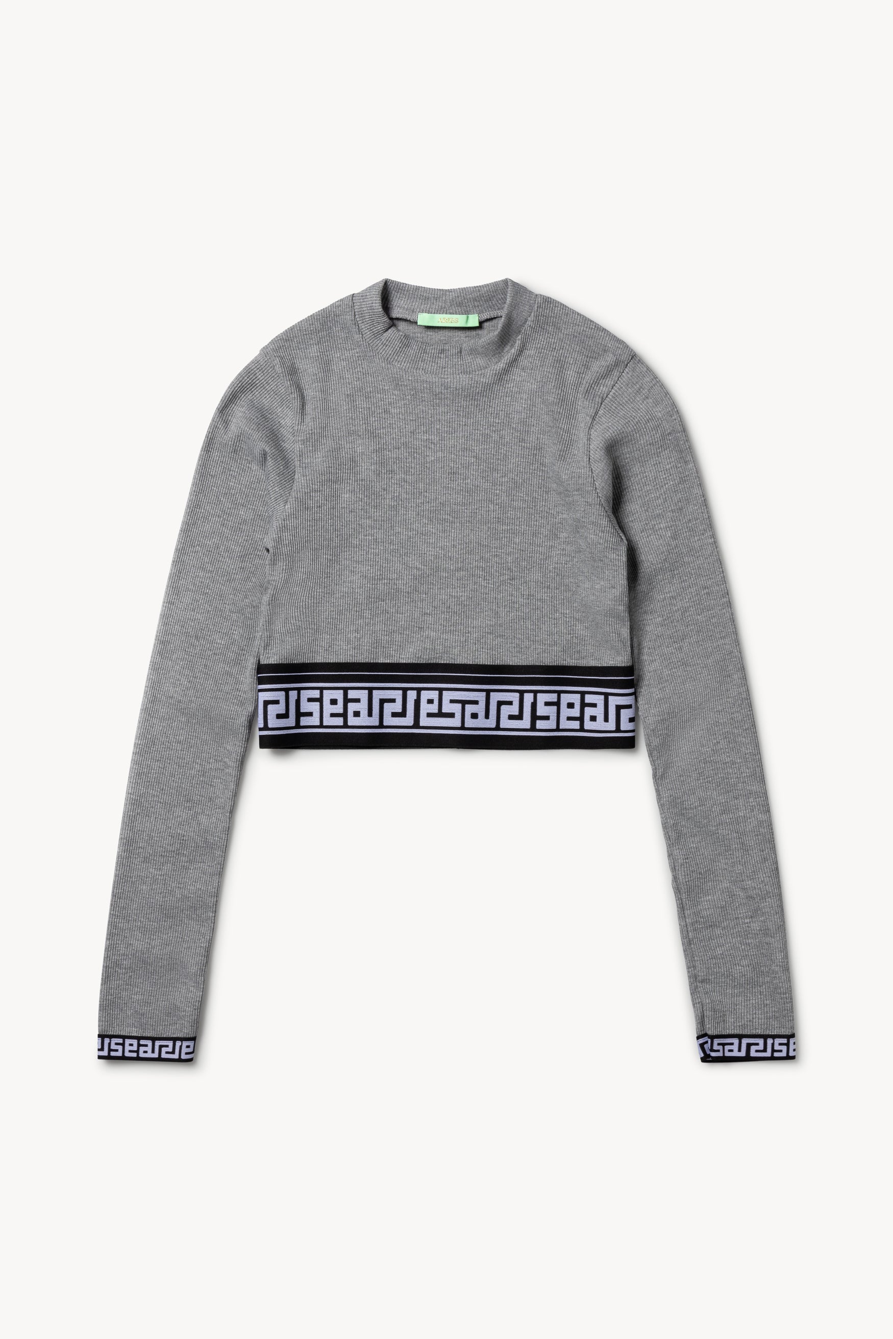 Italian rib cotton crop top with Aries meandros elastic cuffs and waistband.
