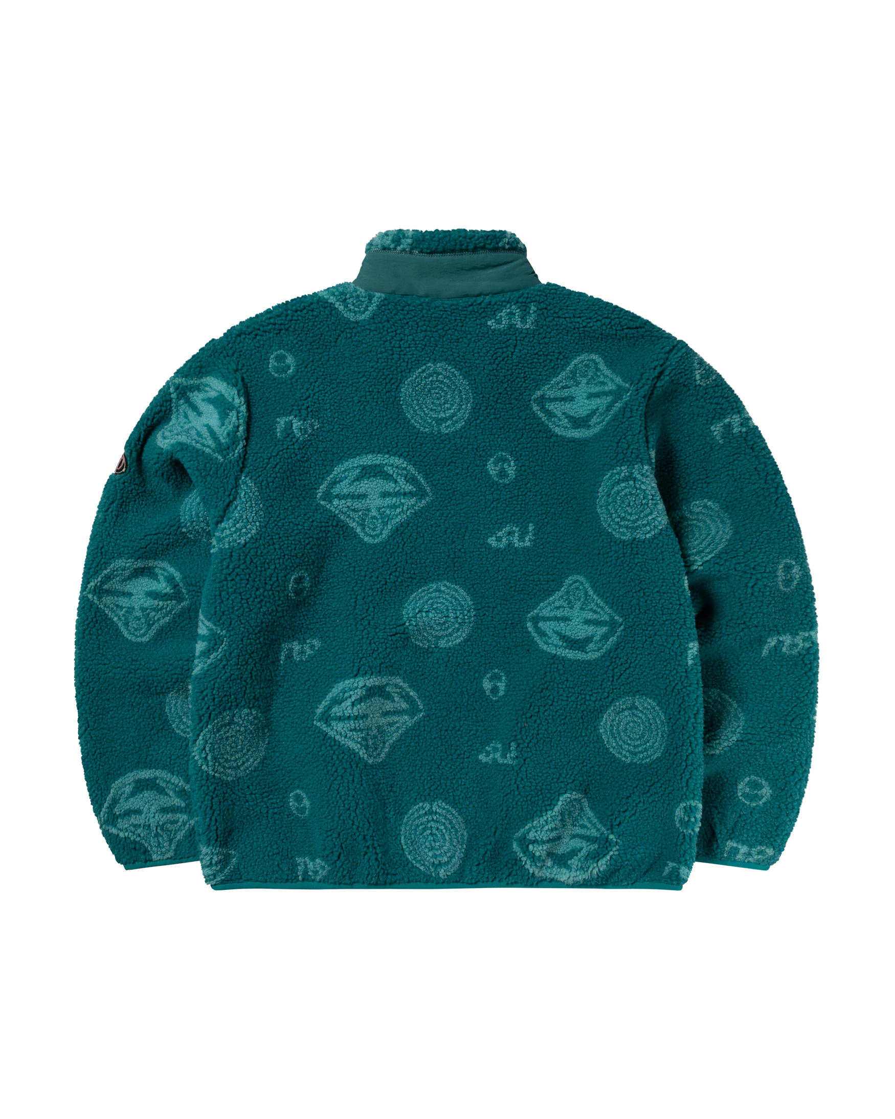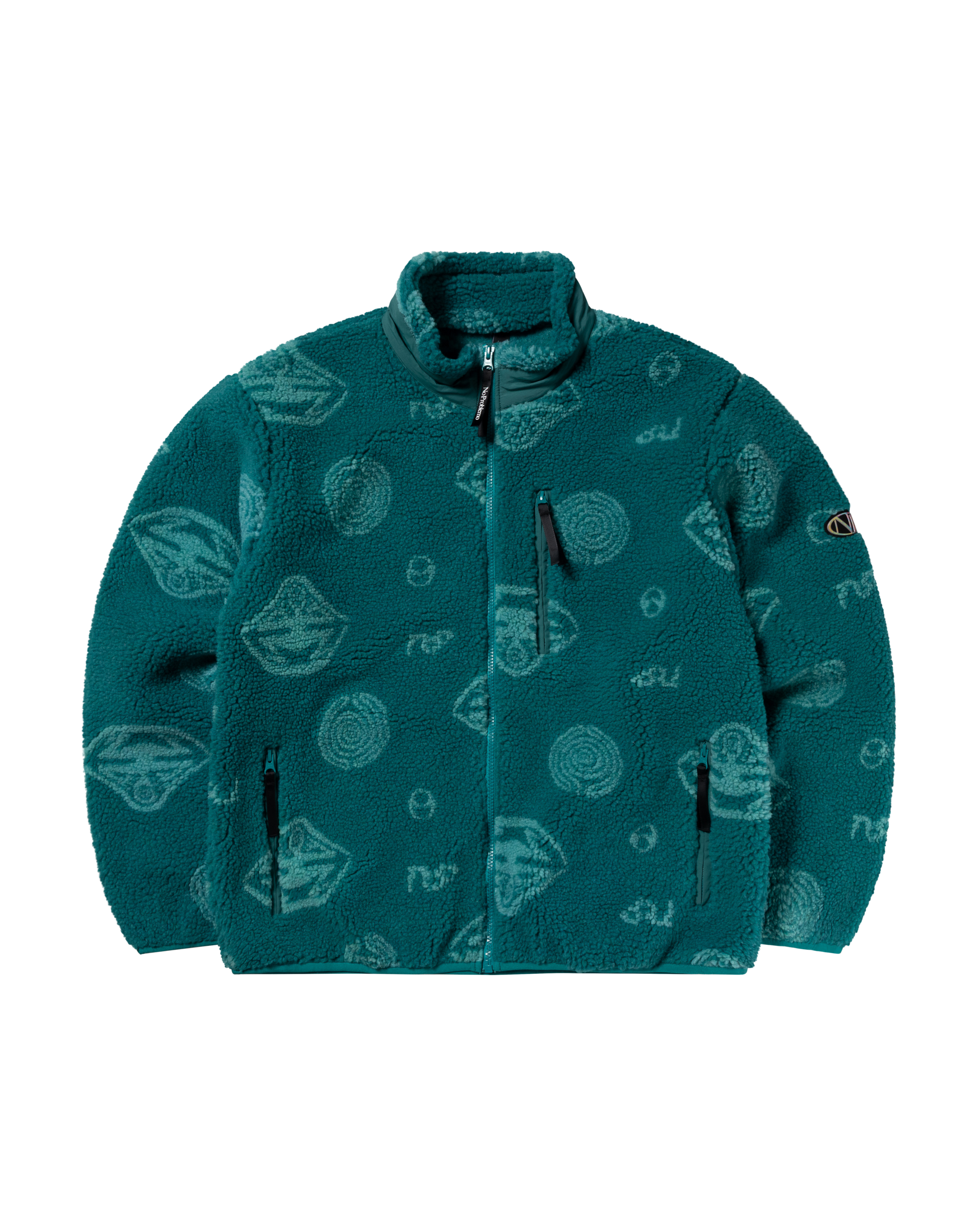 Zip-through unisex fleece jacket, with contrast nylon details and bonded mesh lining, featuring No Problemo Aztec jacquard, a holographic NP graphic silicone patch on the sleeve and branded pullers.