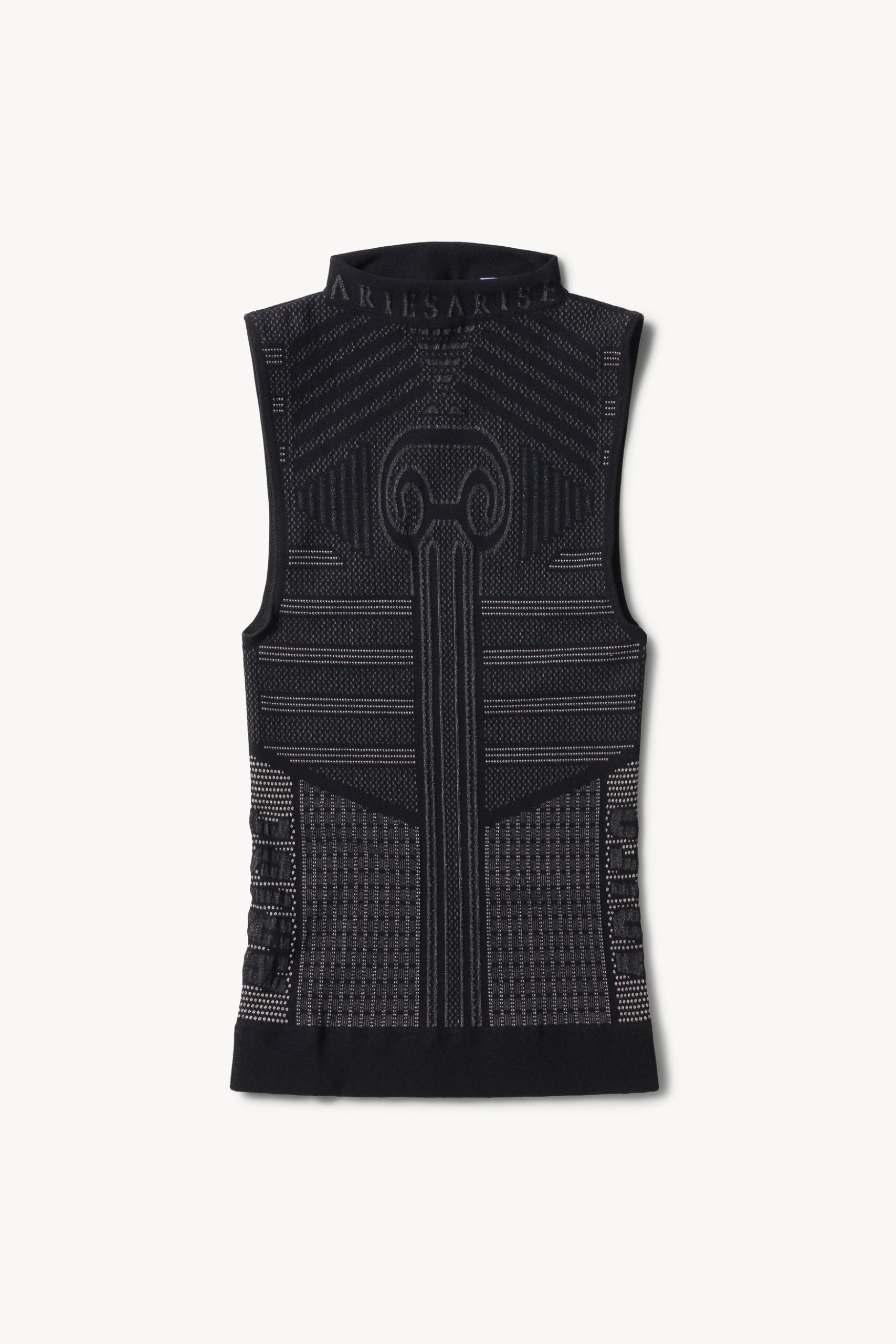 Seamless knitted base layer vest top, loaded with Aries logos and graphics. Made in Italy.