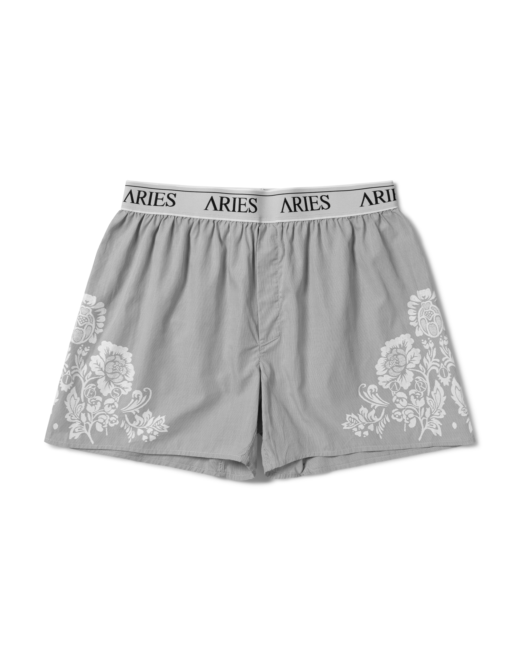 Classic striped Oxford boxer shorts with Aries logo elastic at the waist. Made in washed Oxford cotton with screen-printed Aries Lace graphic on the side of both legs. 100% cotton.