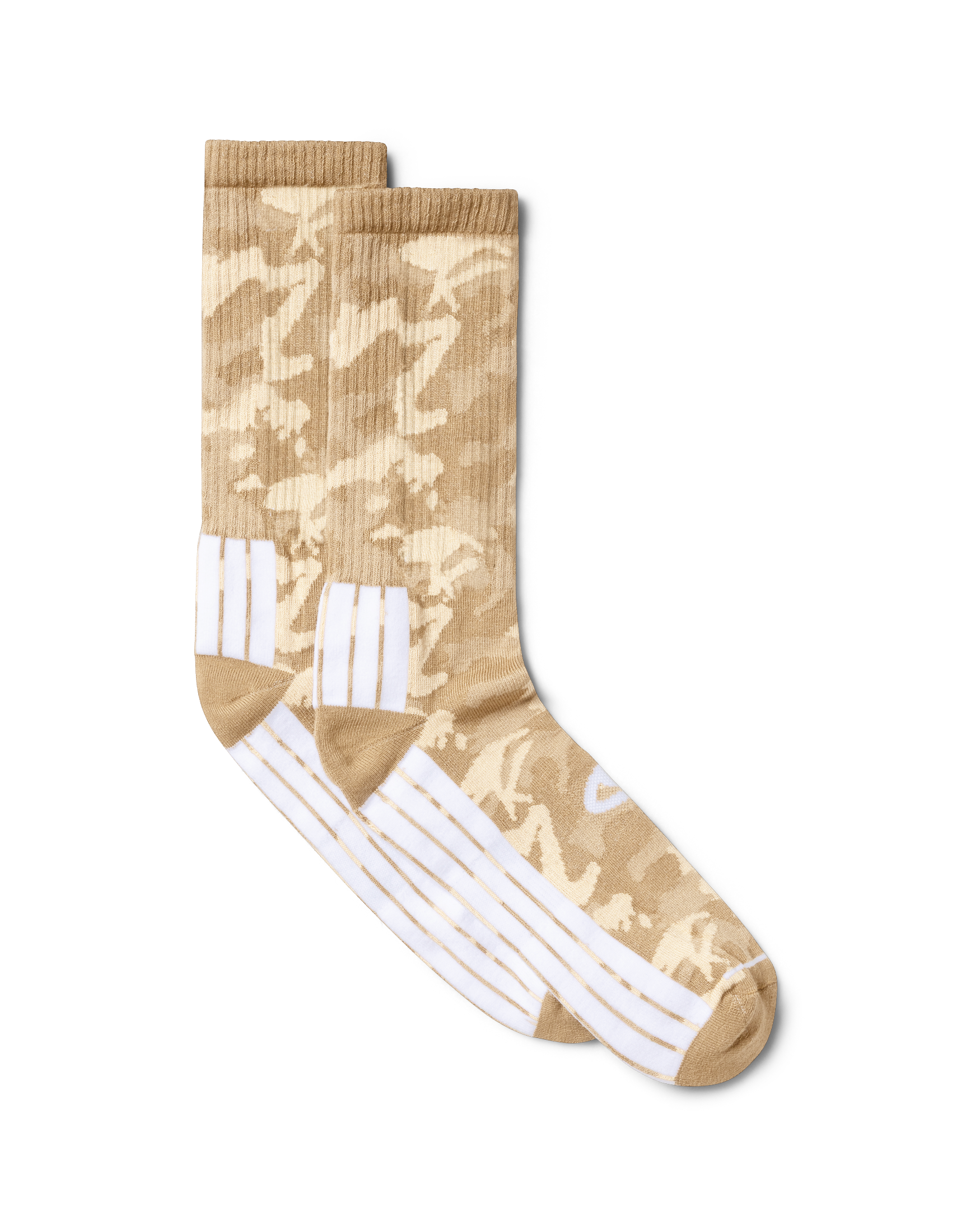 All over camouflage jacquard socks in a sports-blend mix yarn. Padded sole for extra comfort.