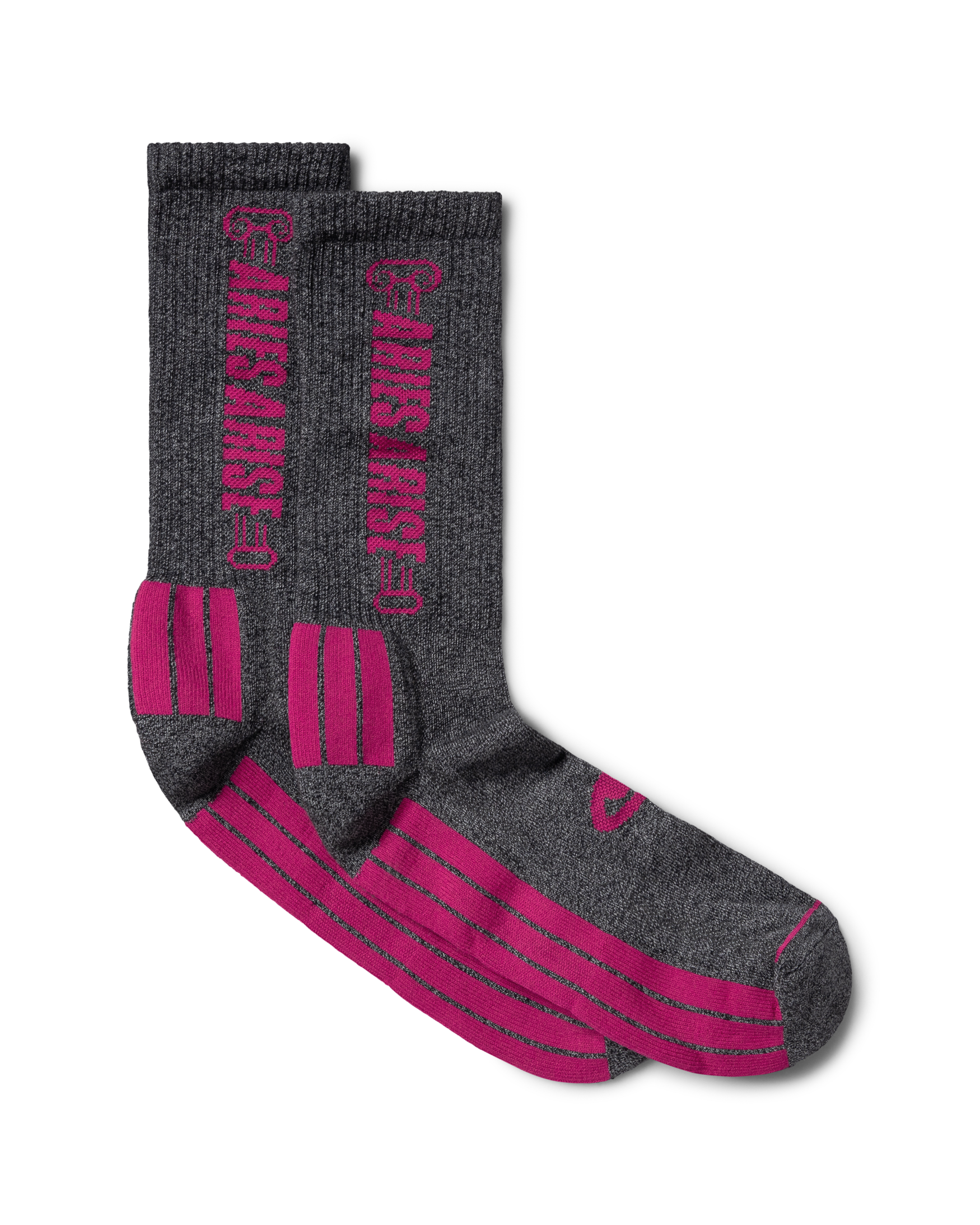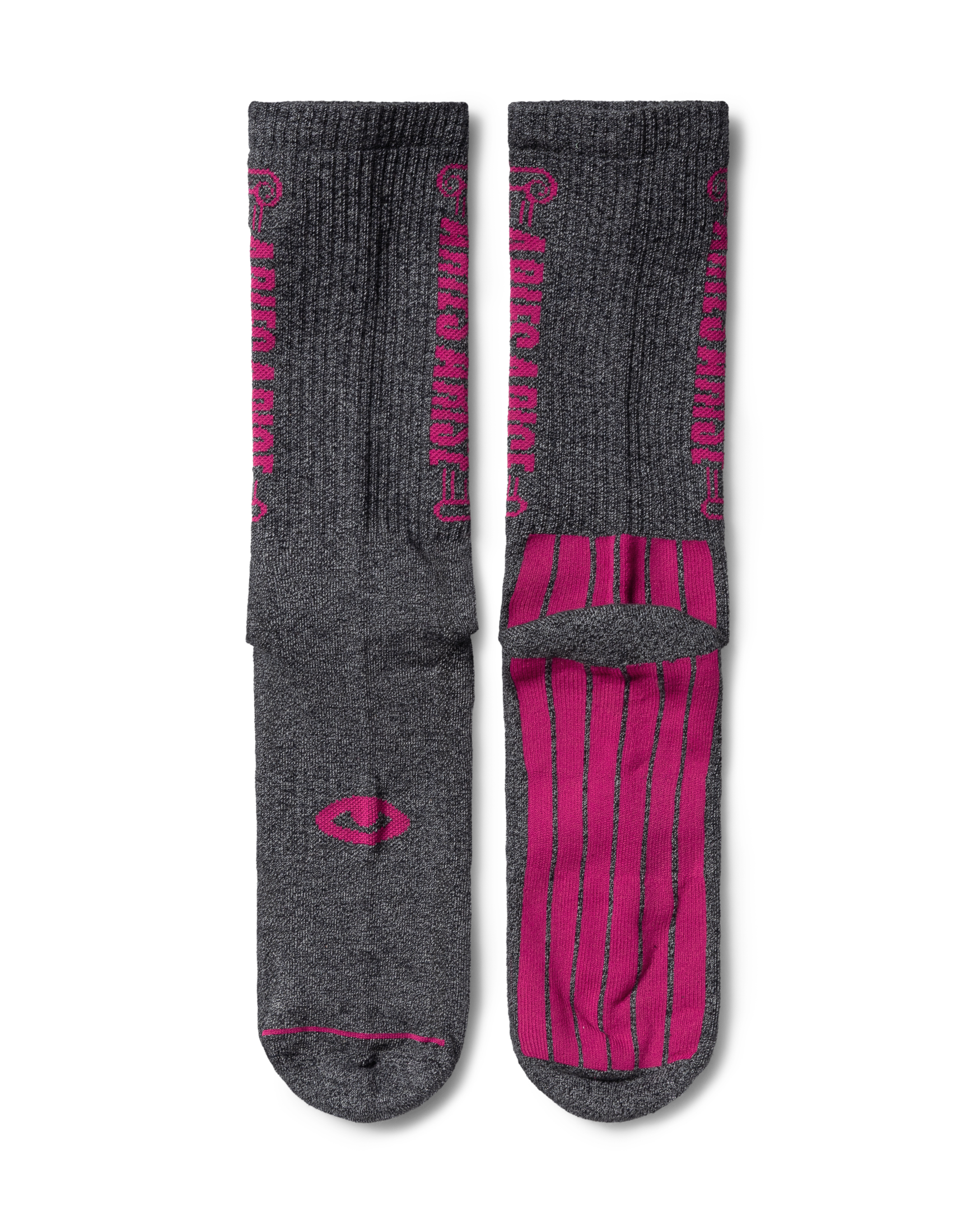 Jacquard socks in a sports-blend yarn, with new Press Gothic Aries Arise Column graphic and padded sole for extra comfort.