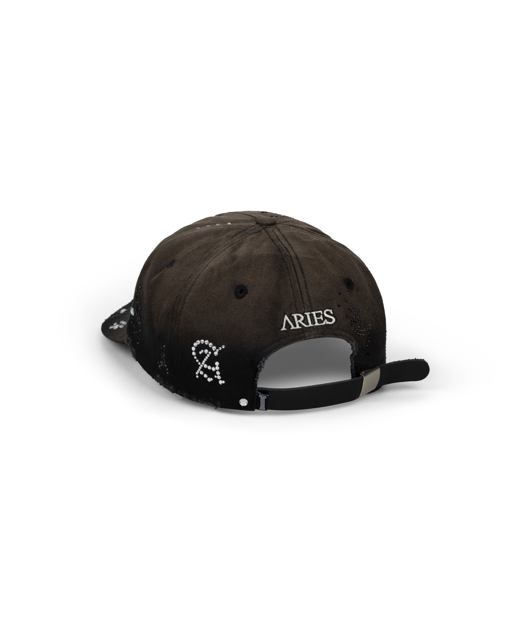 Sun-bleached cotton cap with diamanté Aries on front and various other Diamanté placements throughout.