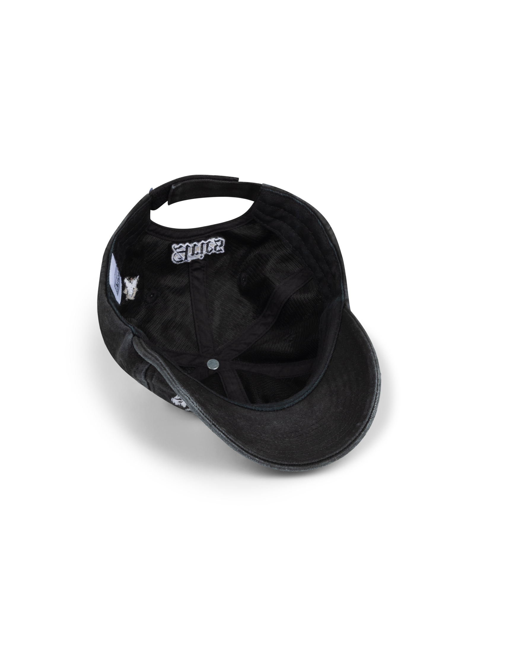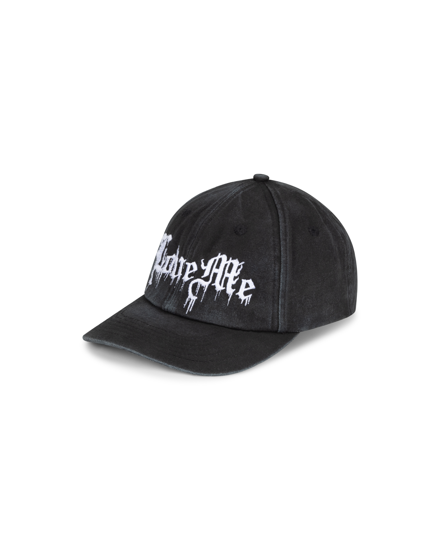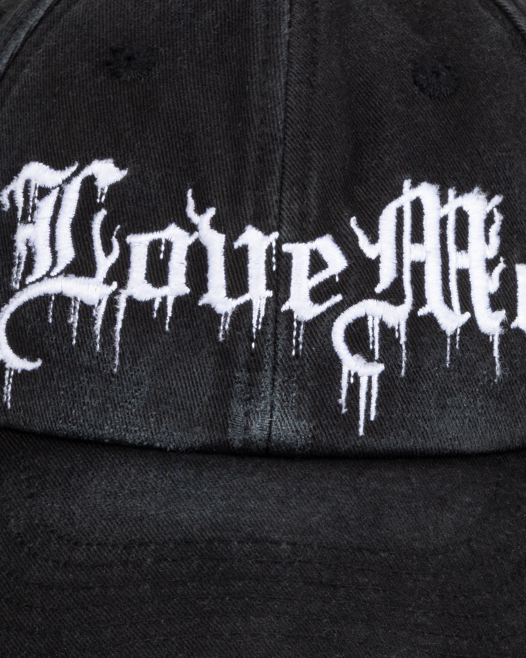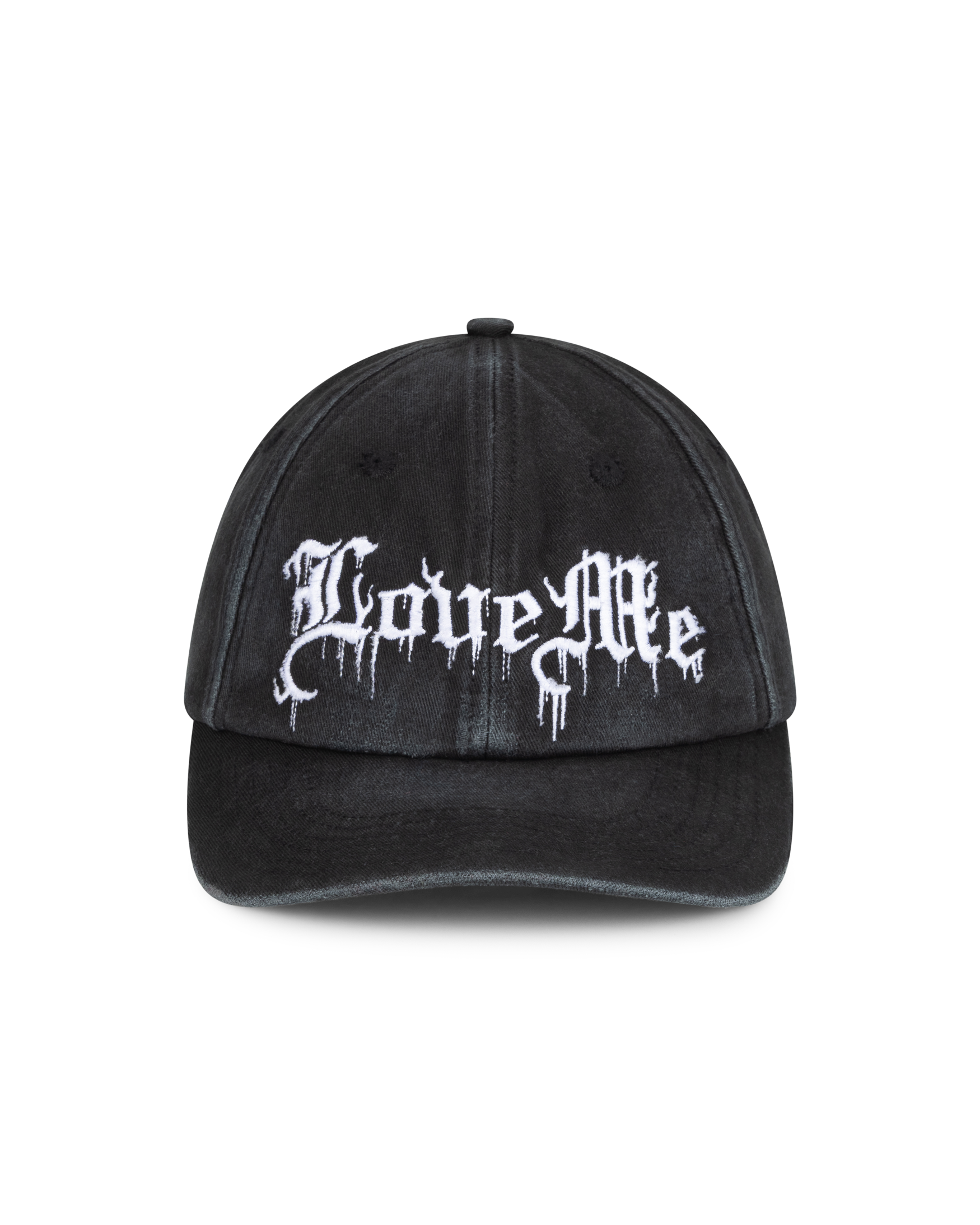 Denim cap with seasonal Love Me embroidery. Grey colourway is acid washed.