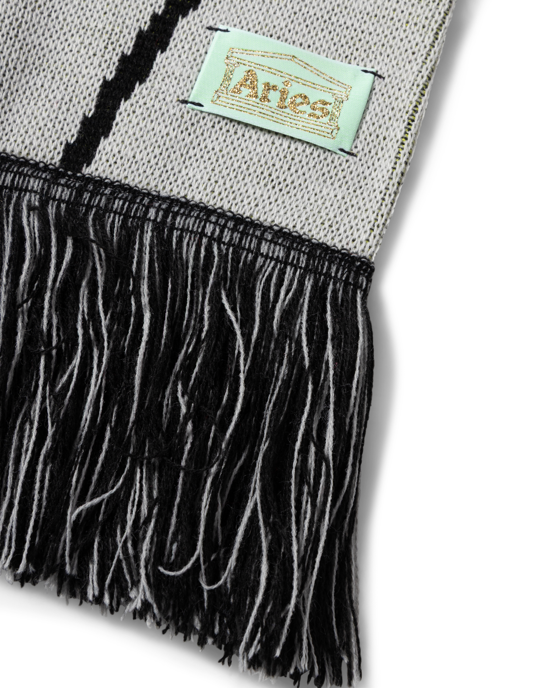 Sports style scarf with metal ariez arize graphic. 100% acrylic.