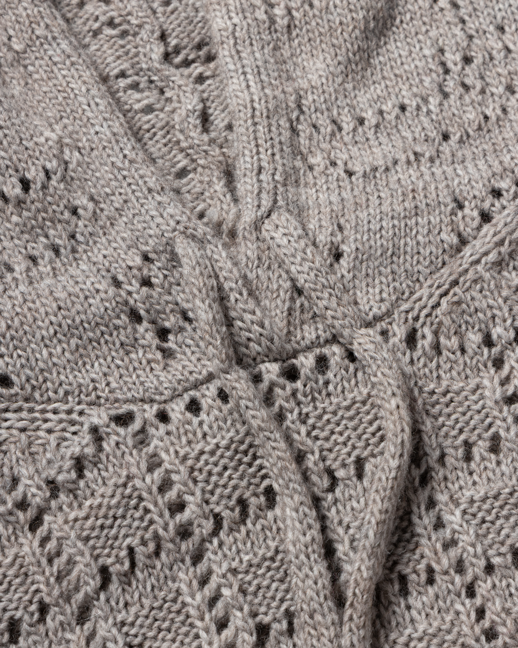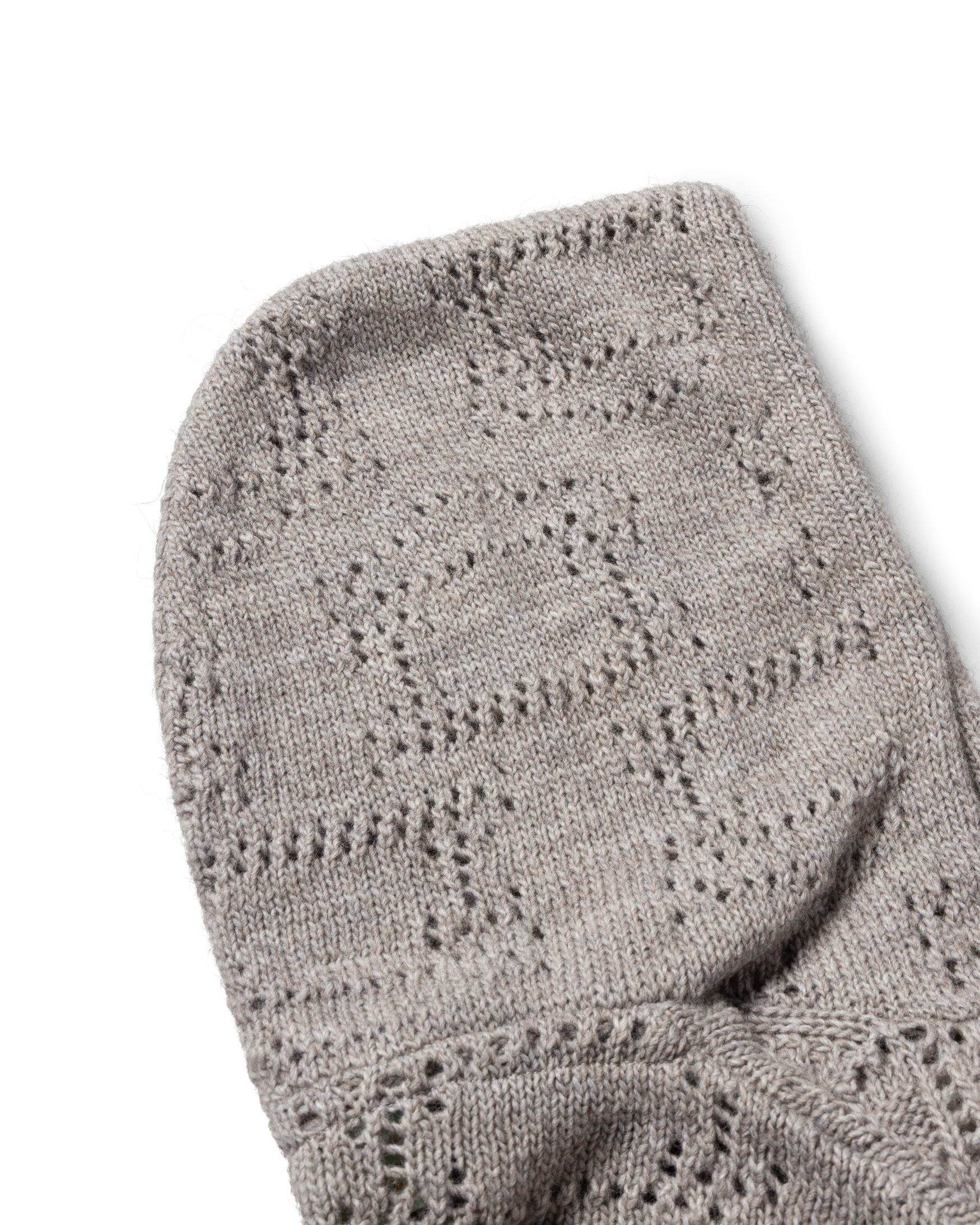 Unisex knitted hoodie in a mixture of pointelle stitches with Aries Temple design in the hood.